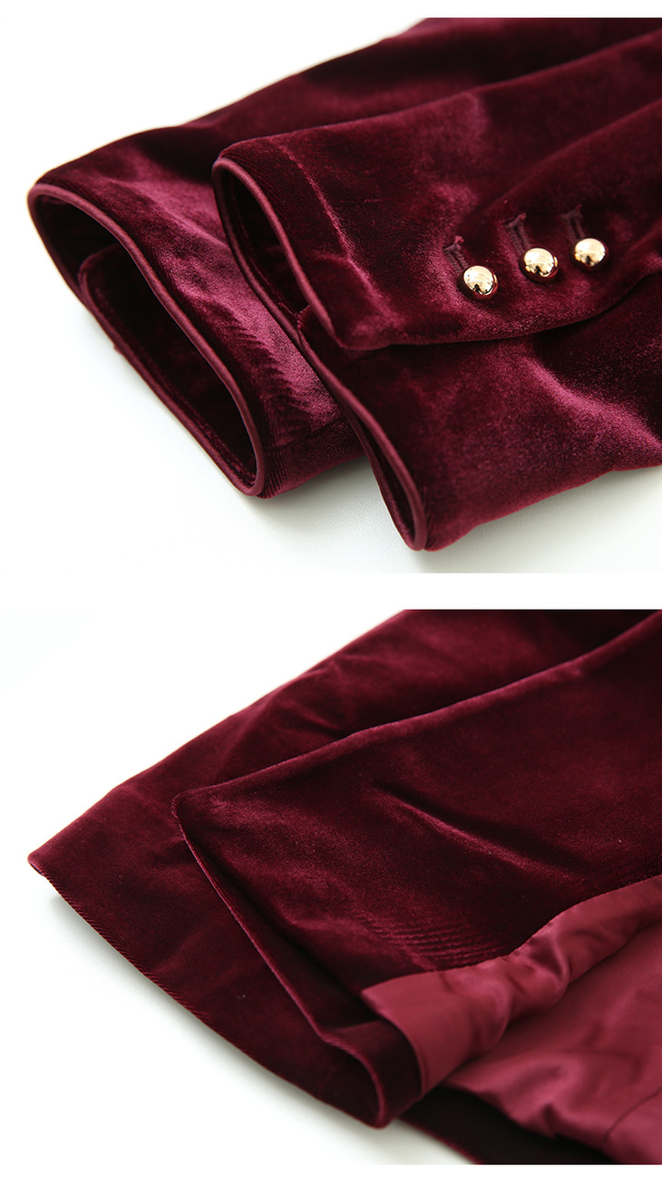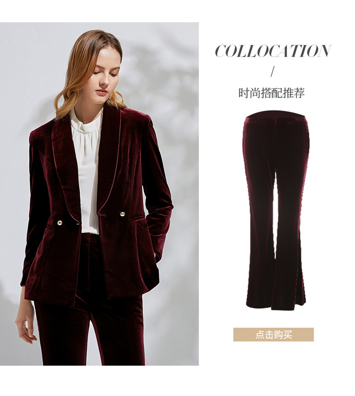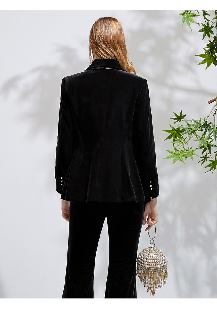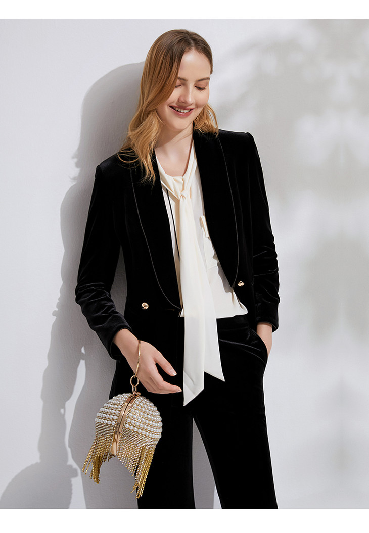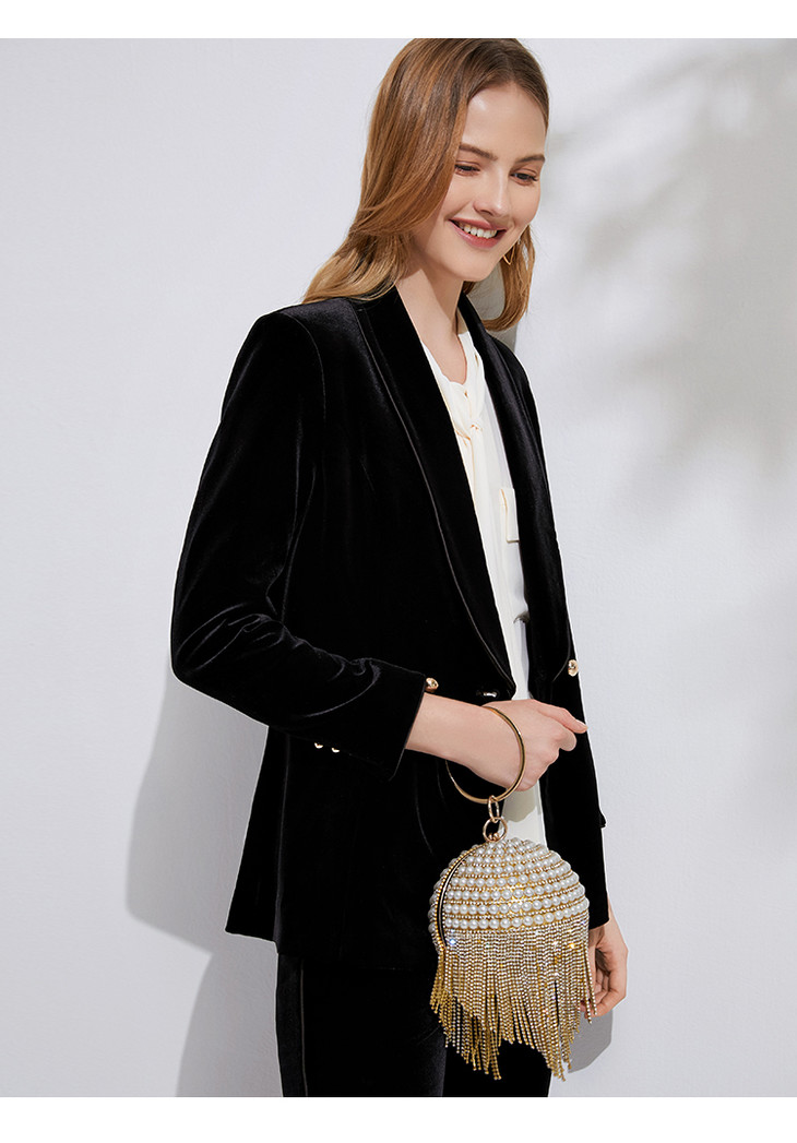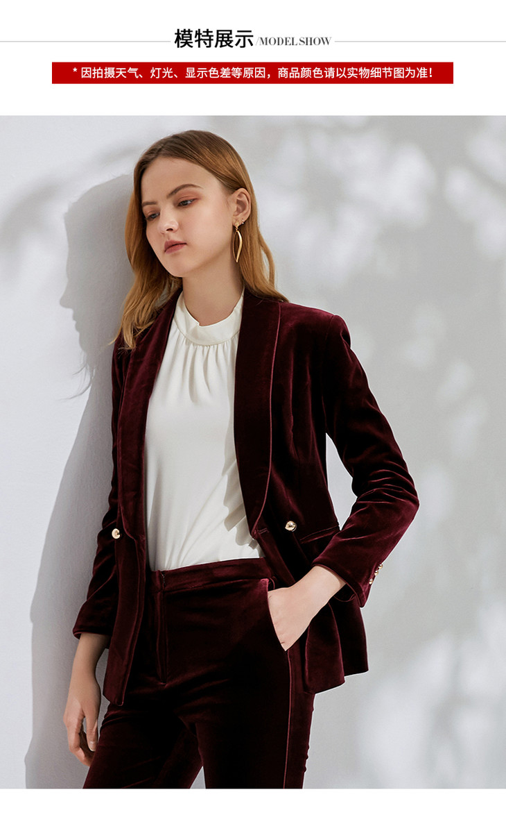 EITIE爱特爱春季新款洋气复古翻领收腰显瘦丝绒西装外套女6303007
