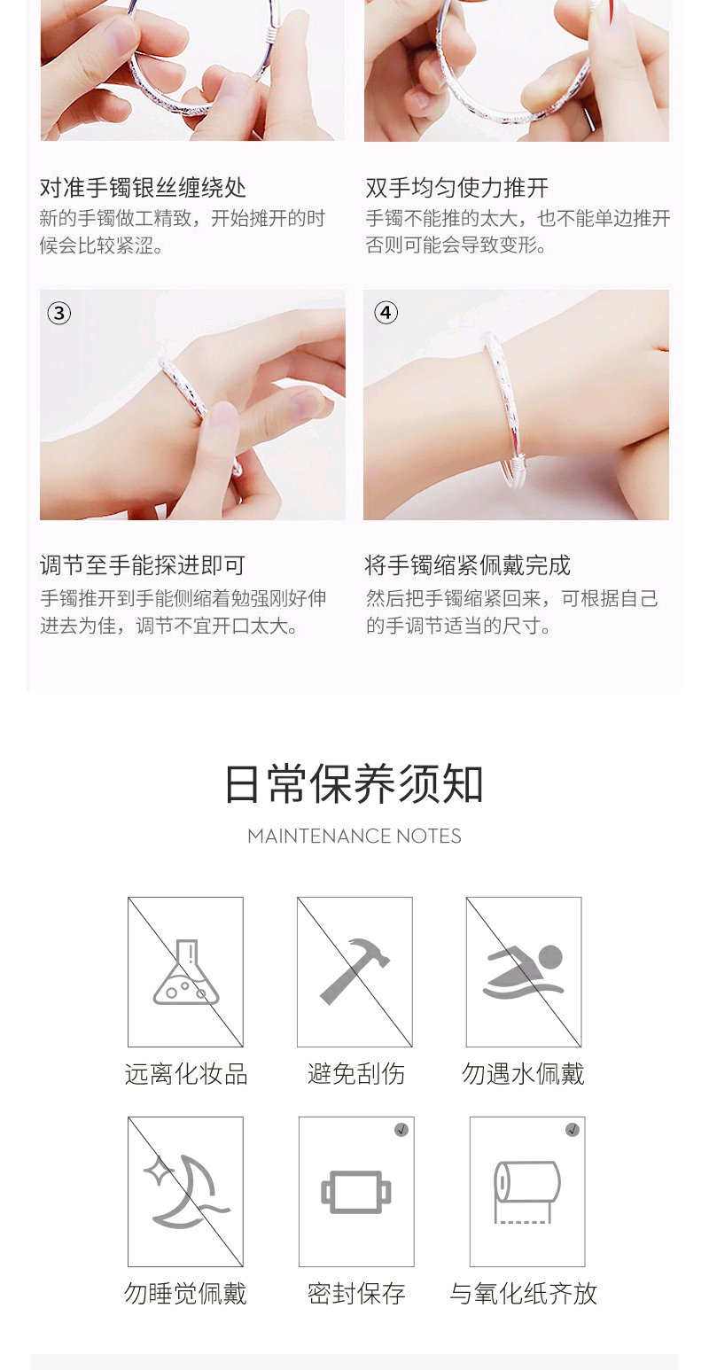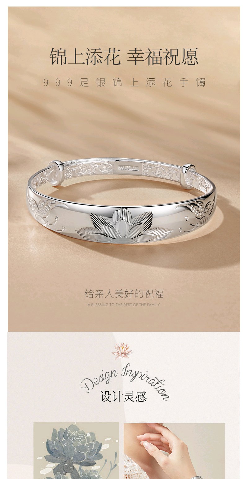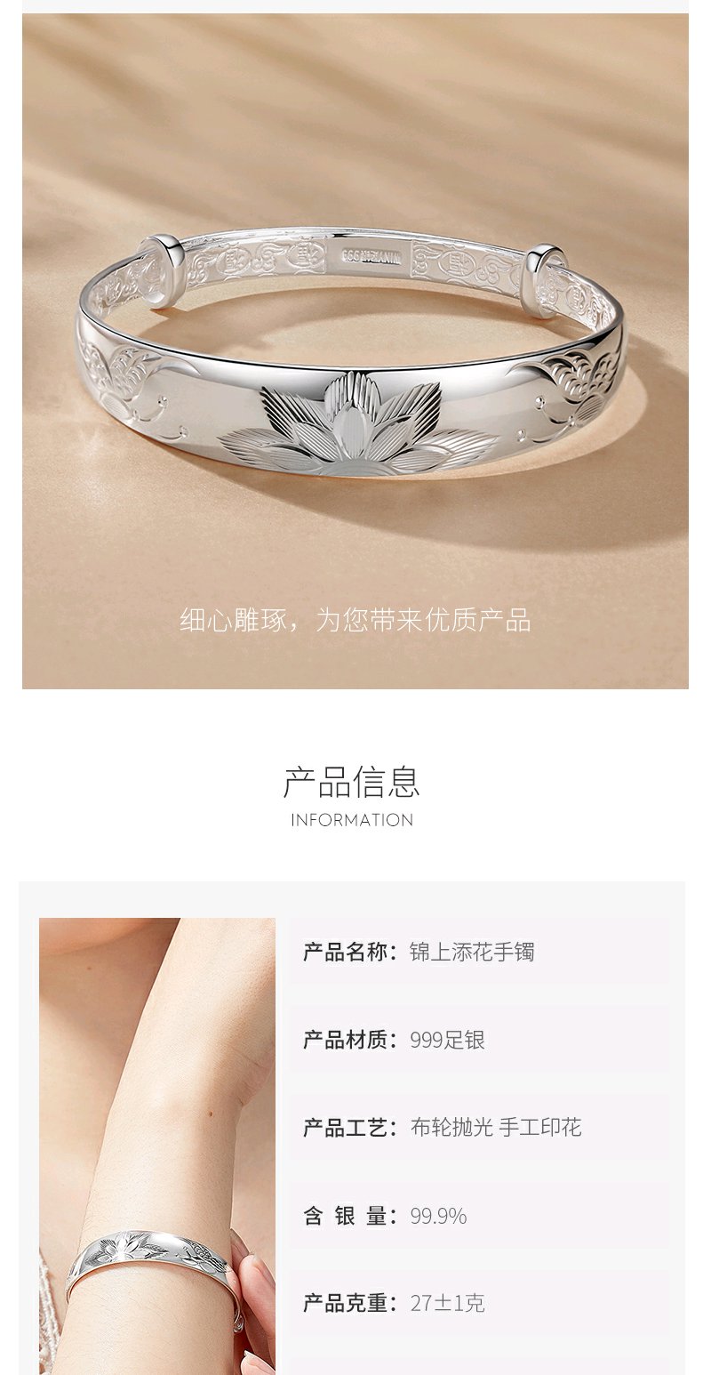 Winy999足银锦上添花手镯送女友闺蜜节日生日礼物