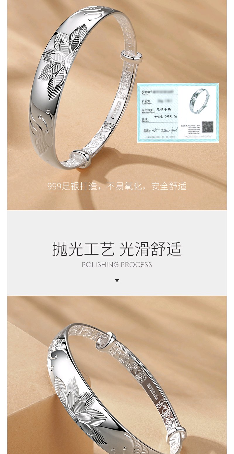 Winy999足银鱼送福花手镯送女友闺蜜节日生日礼物