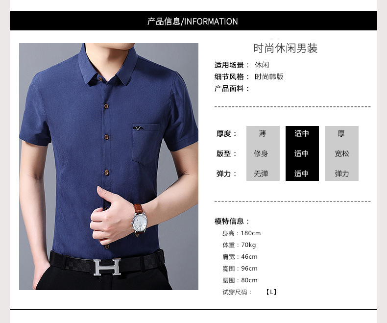 HY-2083新品薄款纯色男士T恤高档纯棉短袖衬衫