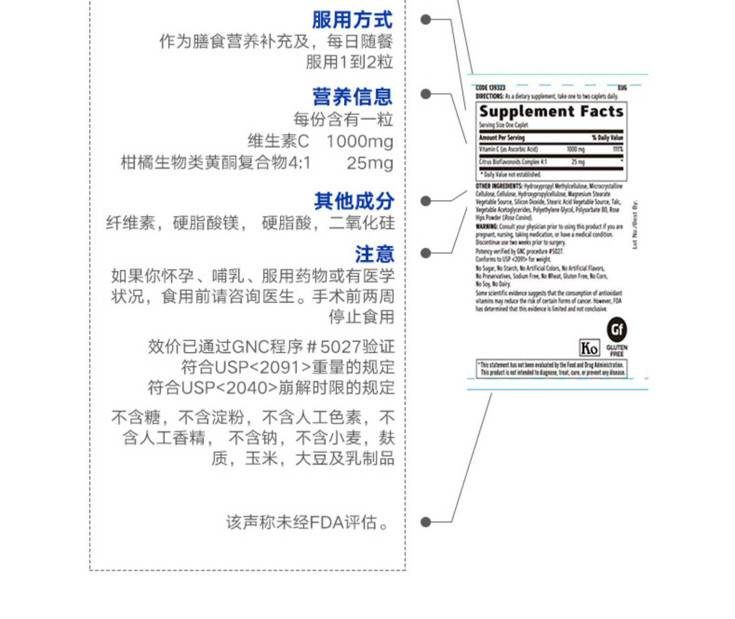 【保税直邮 宁波北仑】GNC维生素C片VC vc