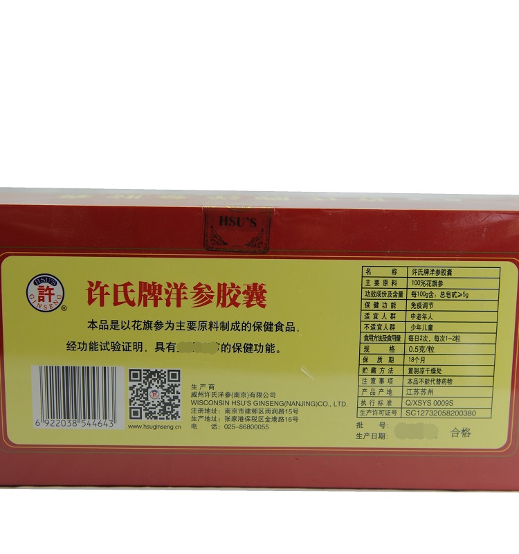 许氏西洋参胶囊美国花旗参条装0.5gx12粒x12盒内赠一盒