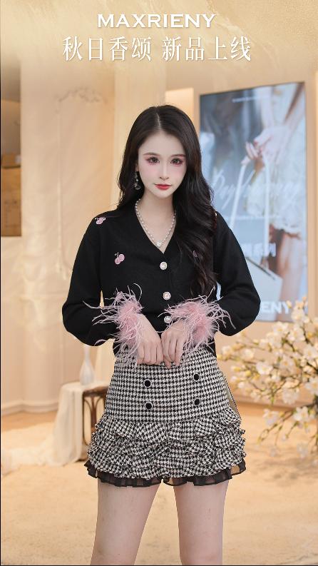 MAXRIENY2024年新款千鸟格纹百搭裙裤(货号:MS85SK063)