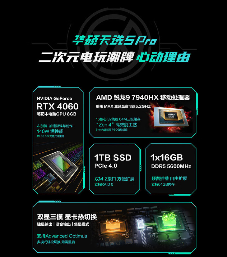 华硕 天选5Pro 锐龙版 16英寸游戏本