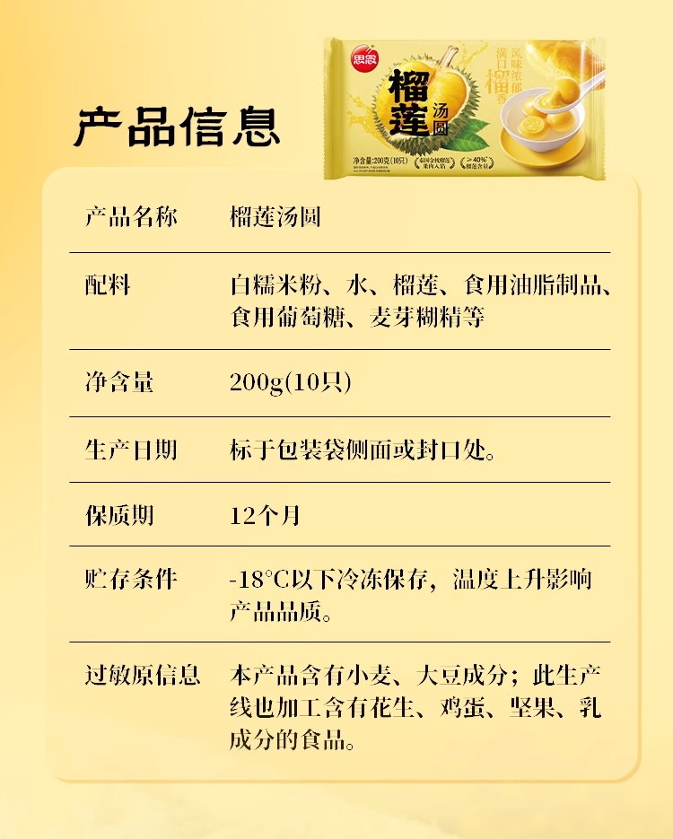 思念榴莲汤圆/1包(10只,共200g)生产日期:25年10月补单专用