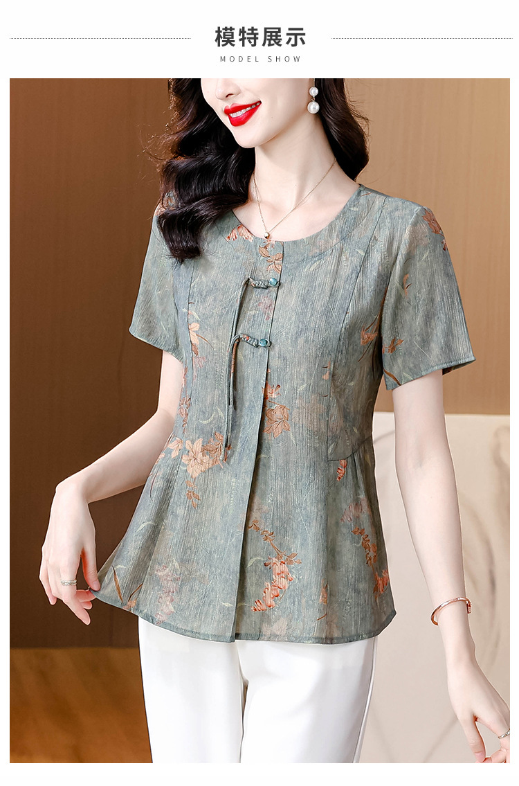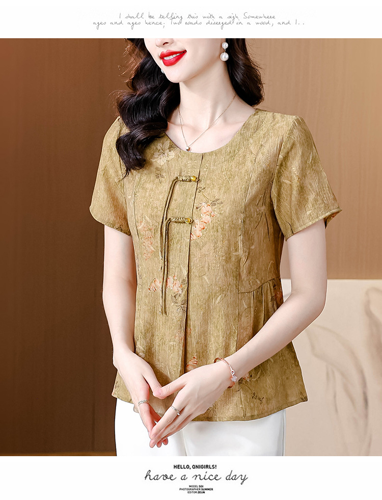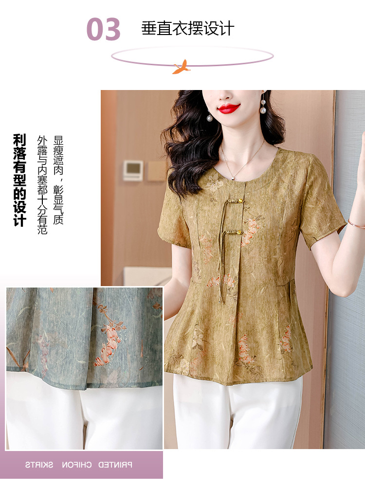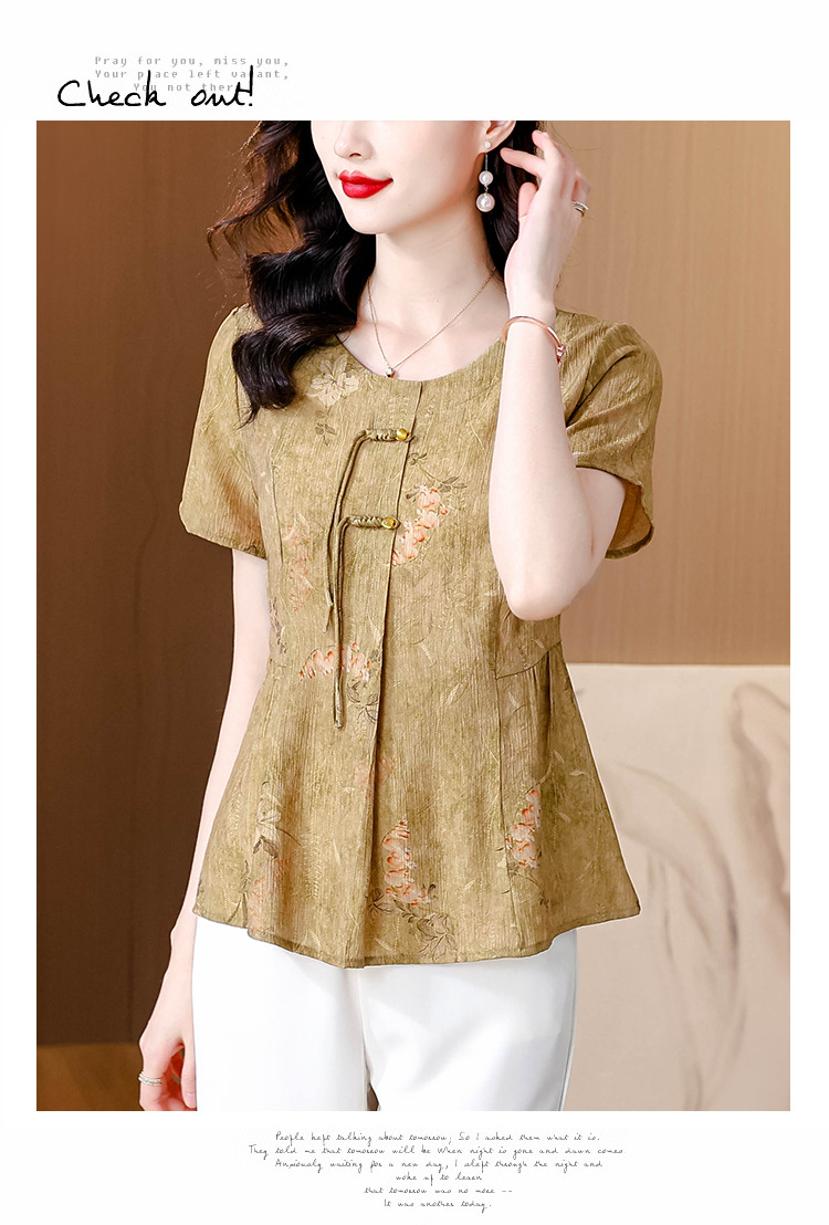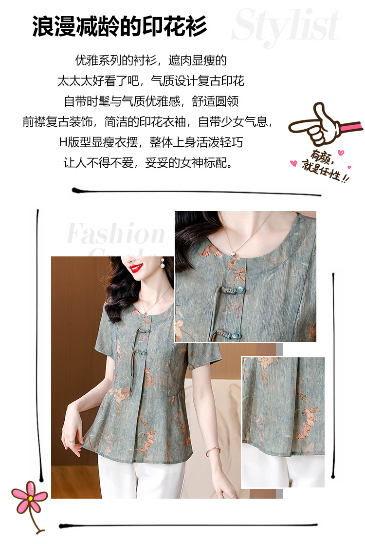 SMZ17386新中式国风棉麻短袖衬衫女士夏季妈妈收腰遮肚子显瘦上衣洋气小衫