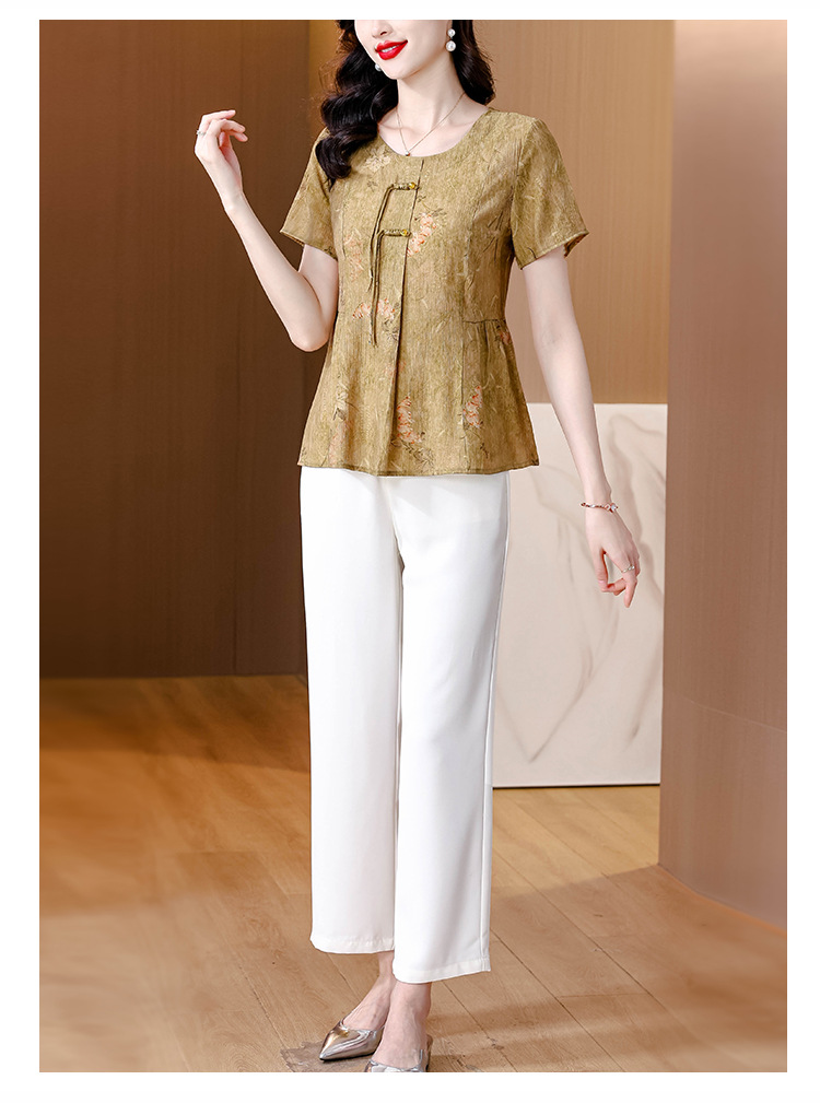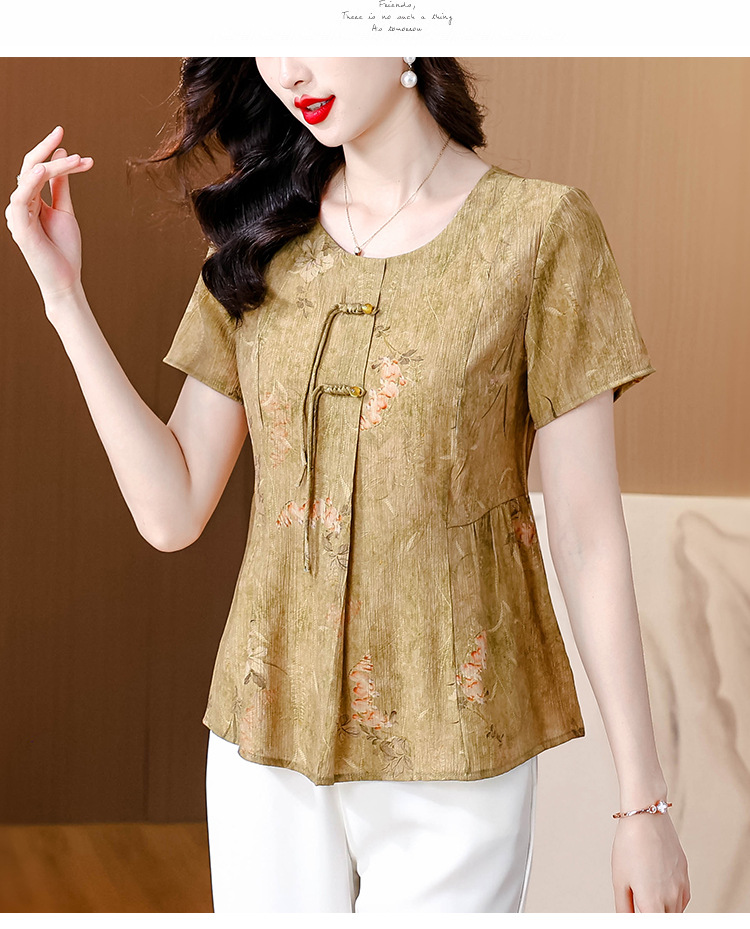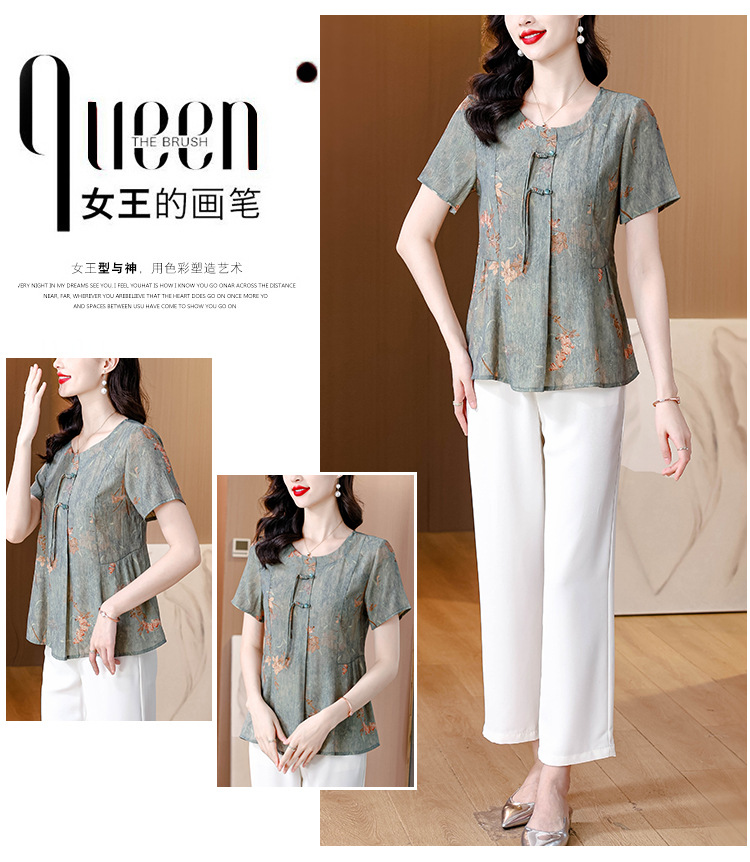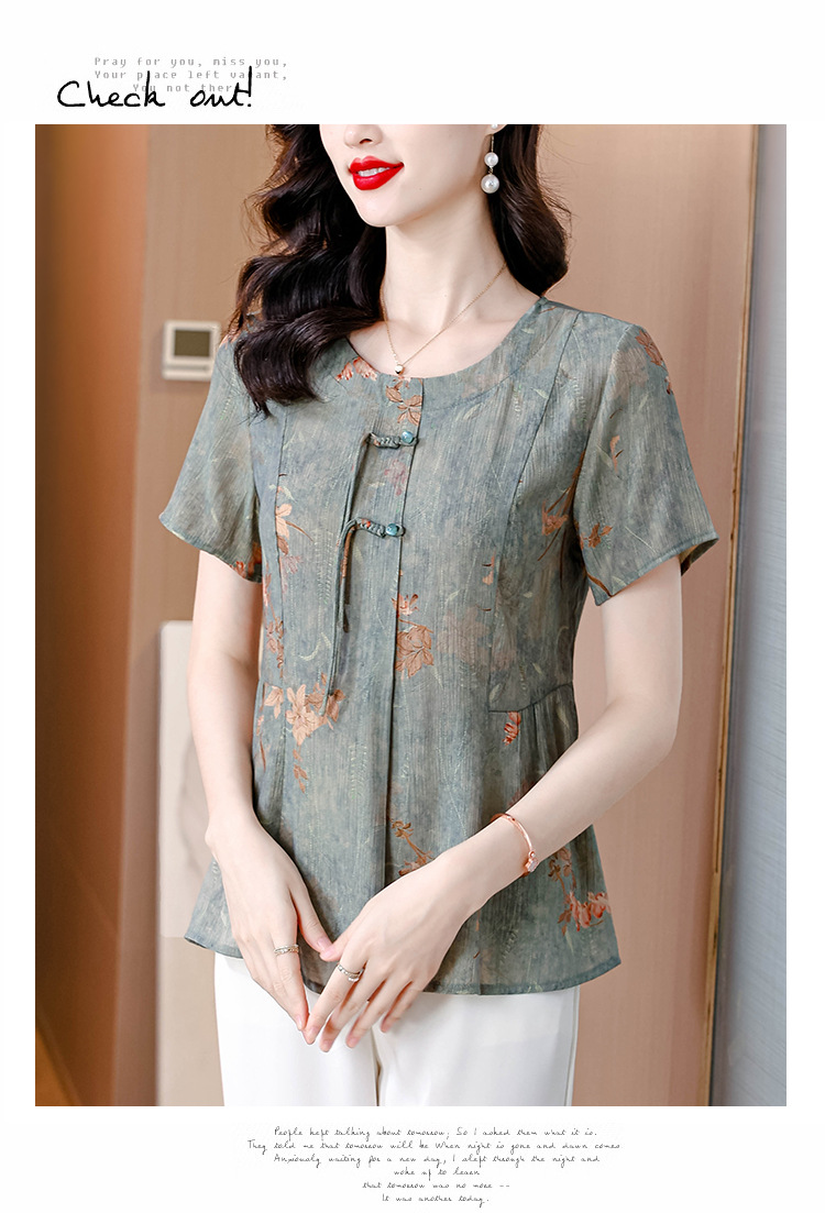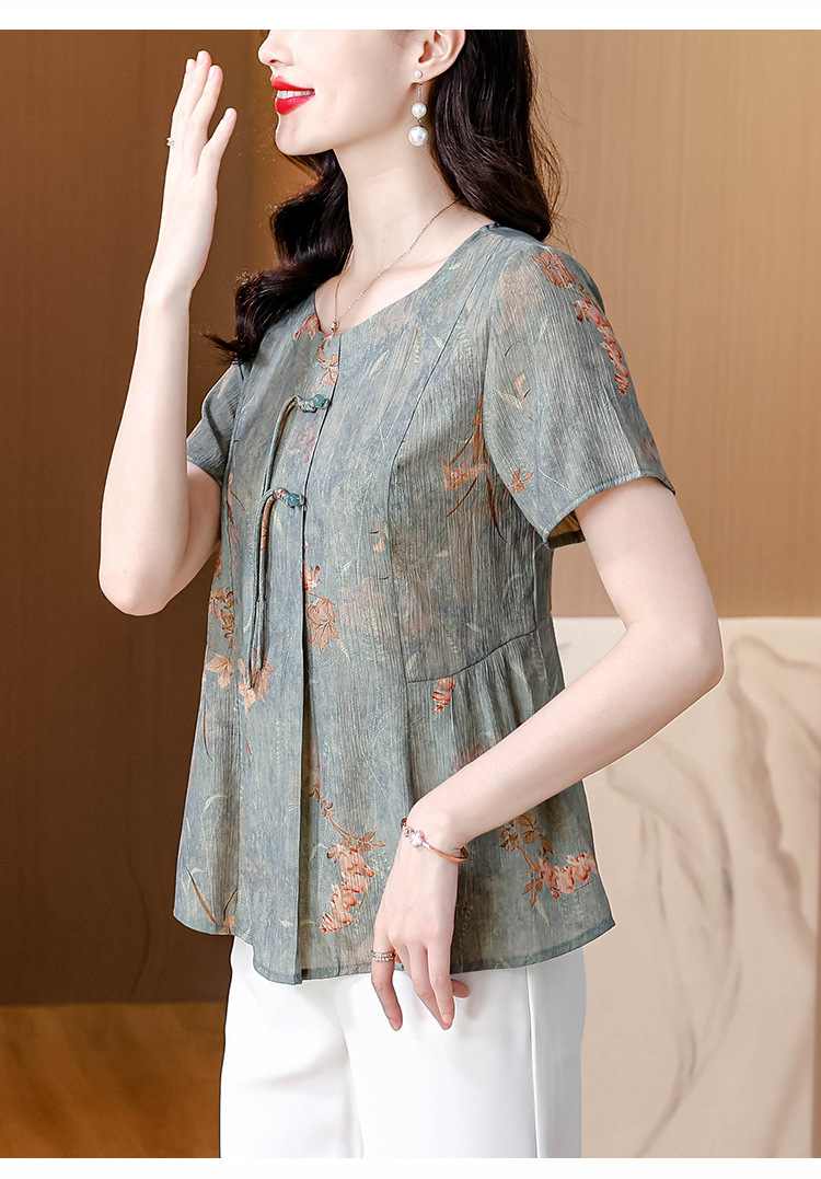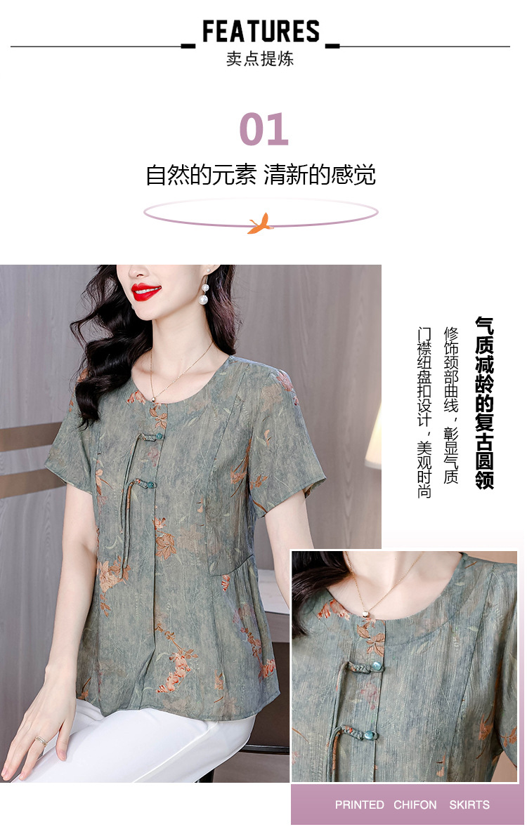 SMZ17386新中式国风棉麻短袖衬衫女士夏季妈妈收腰遮肚子显瘦上衣洋气小衫