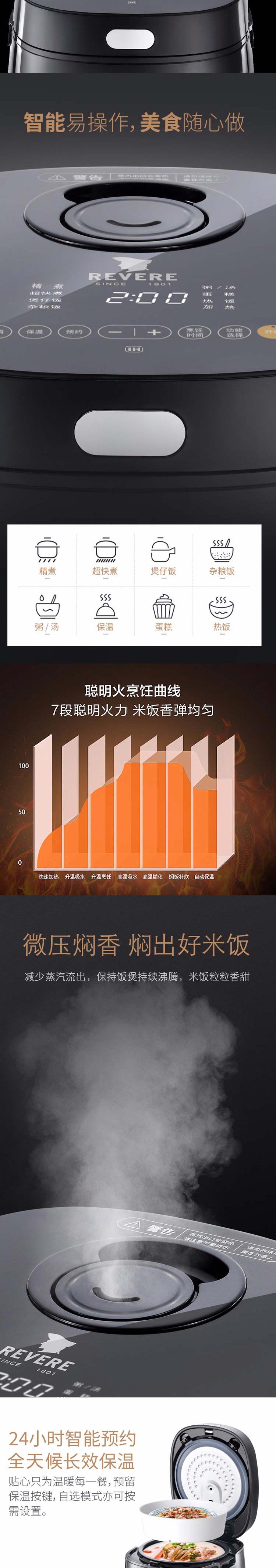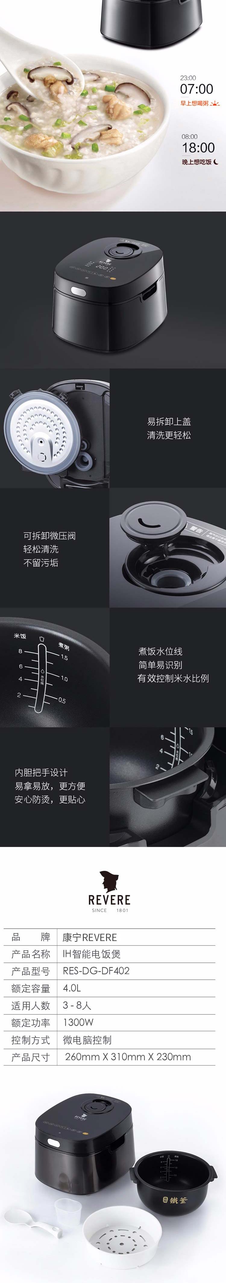 康宁Revere智能电饭煲RES-DG-DF402 4L大容量环绕加热精准控温