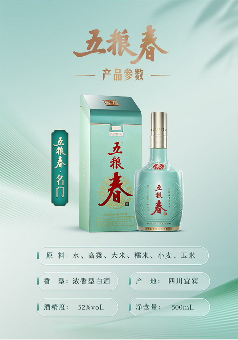 五粮液 五粮春 名门春 浓香型白酒 52度 500ml