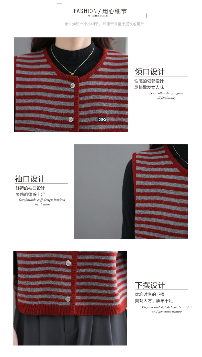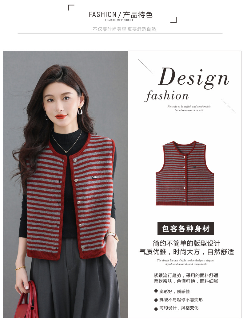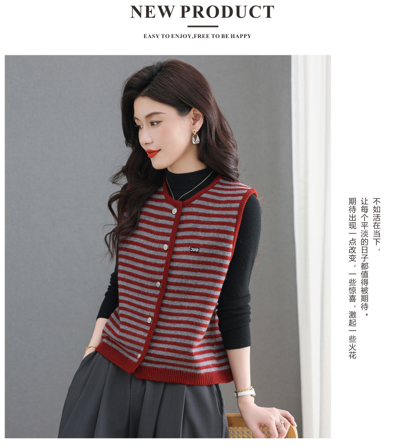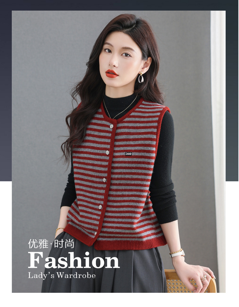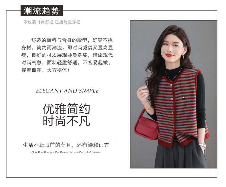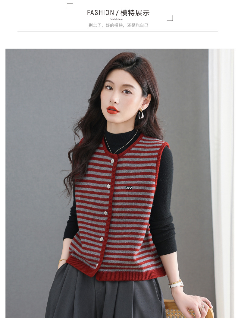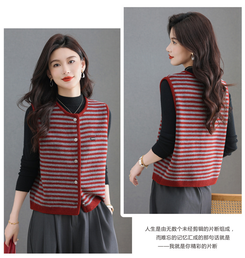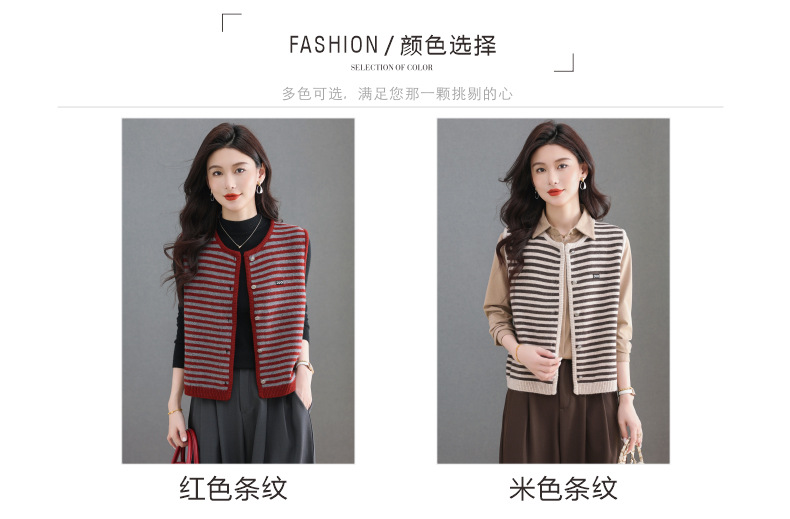 雀说条纹针织马甲外套短款洋气马夹外搭显瘦时髦毛衣开衫背心AL526