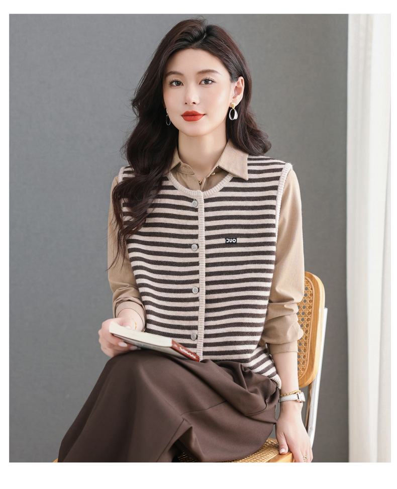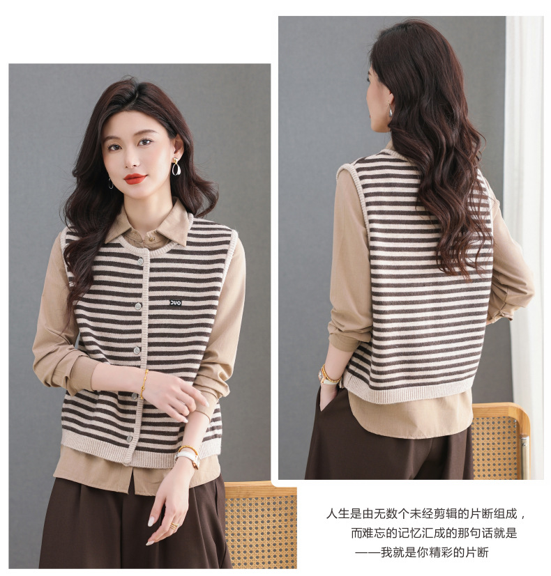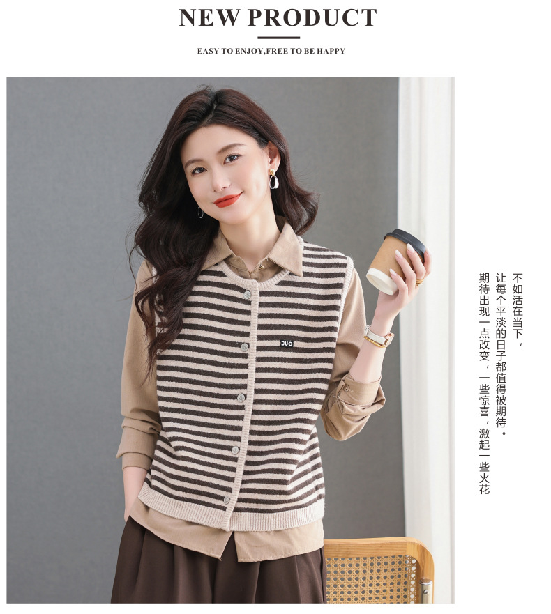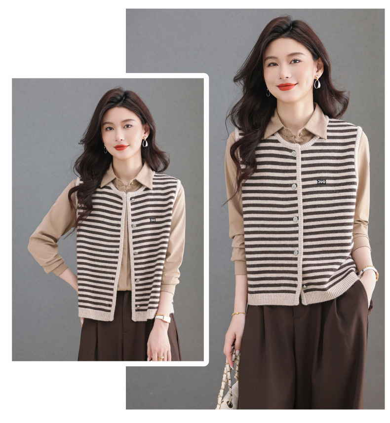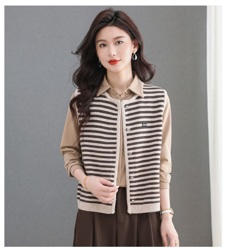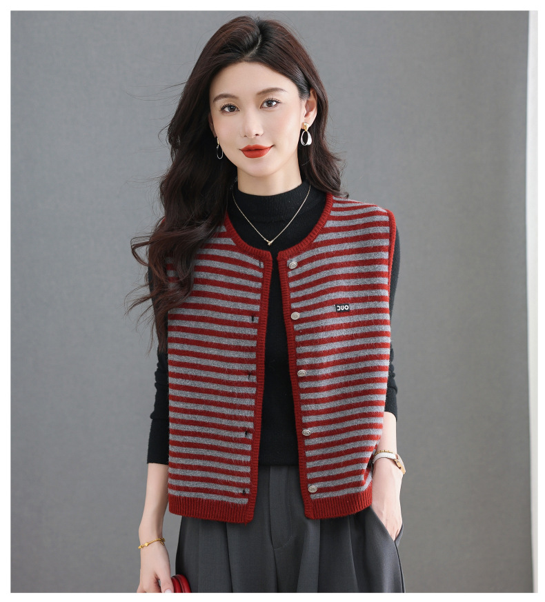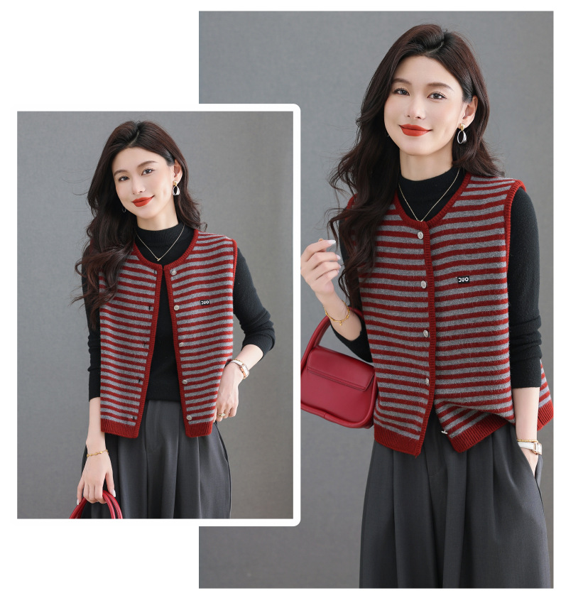雀说条纹针织马甲外套短款洋气马夹外搭显瘦时髦毛衣开衫背心AL526