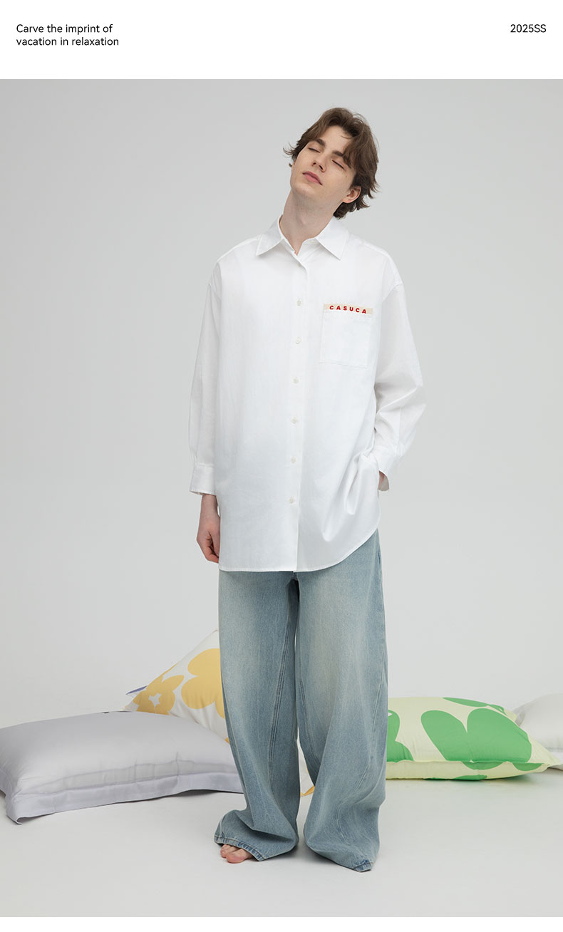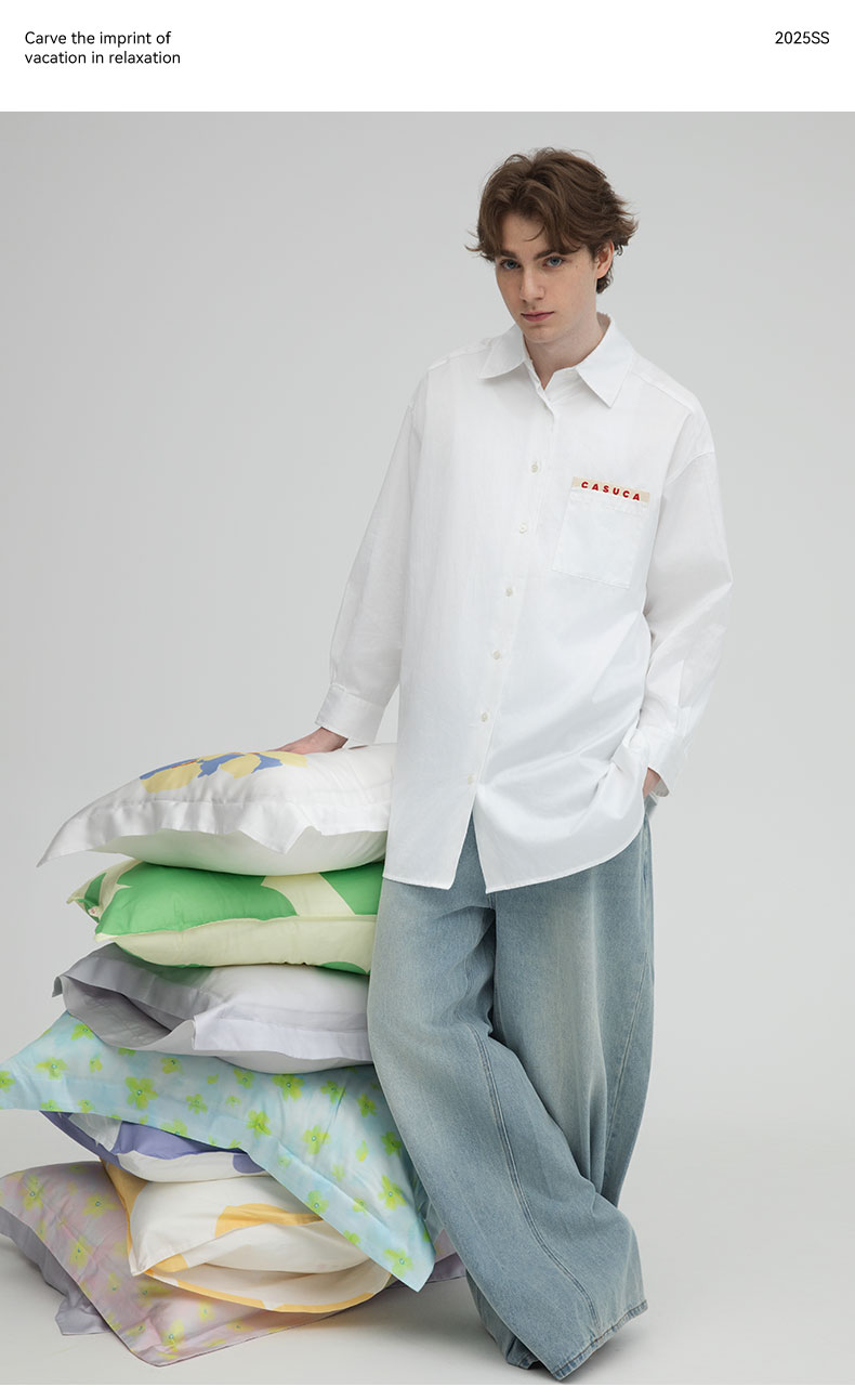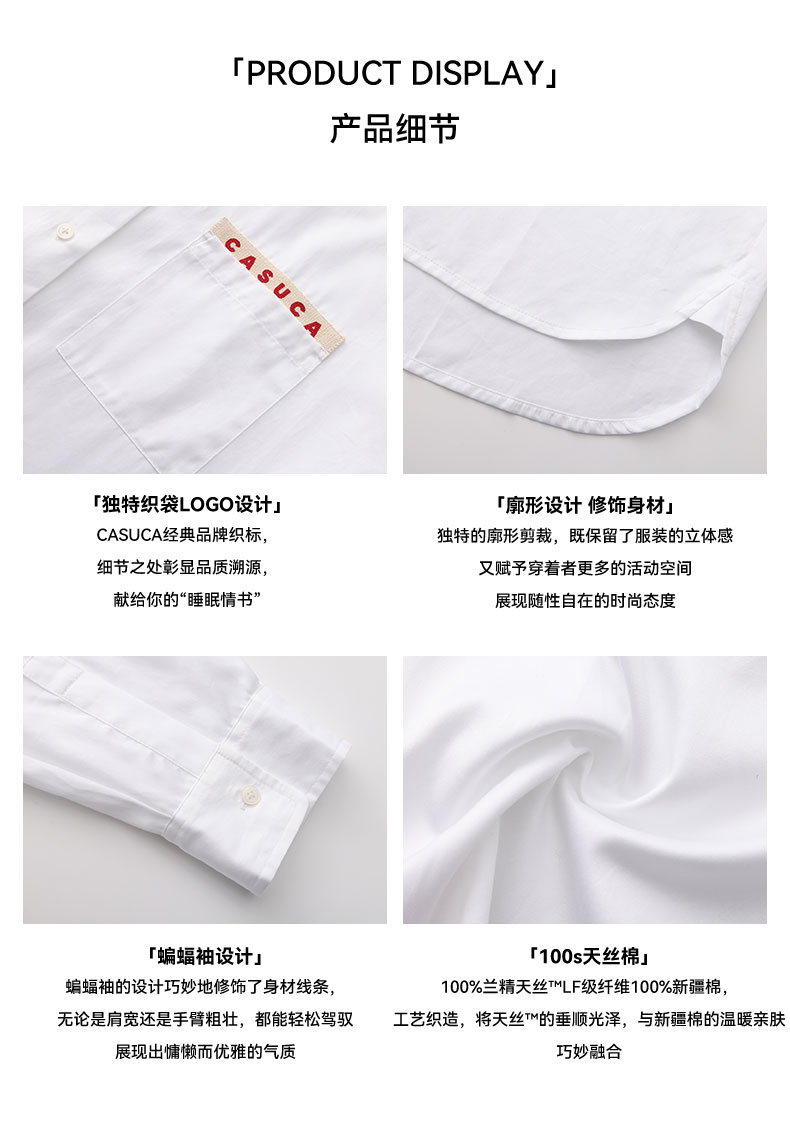 CASUCA 史密斯家居服衬衫裙天丝棉春夏可外穿简约纯白长袖情侣睡衣