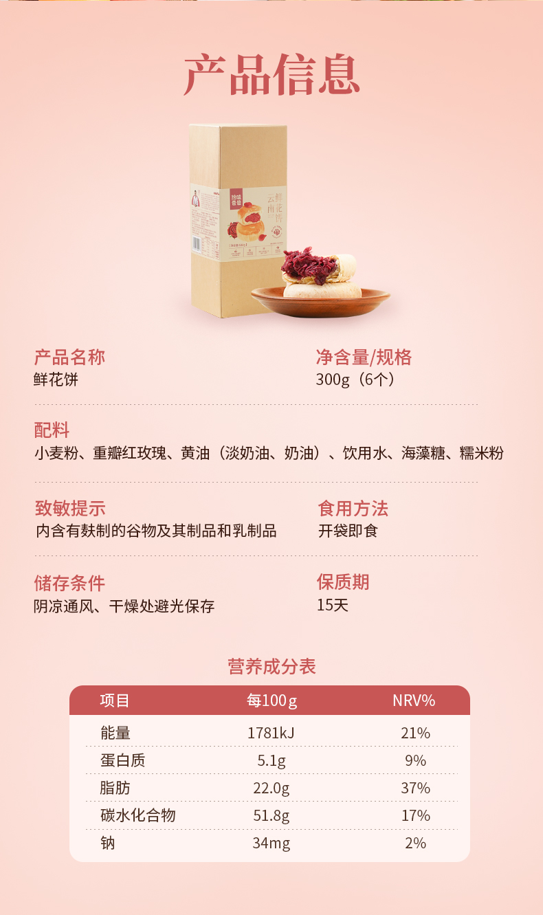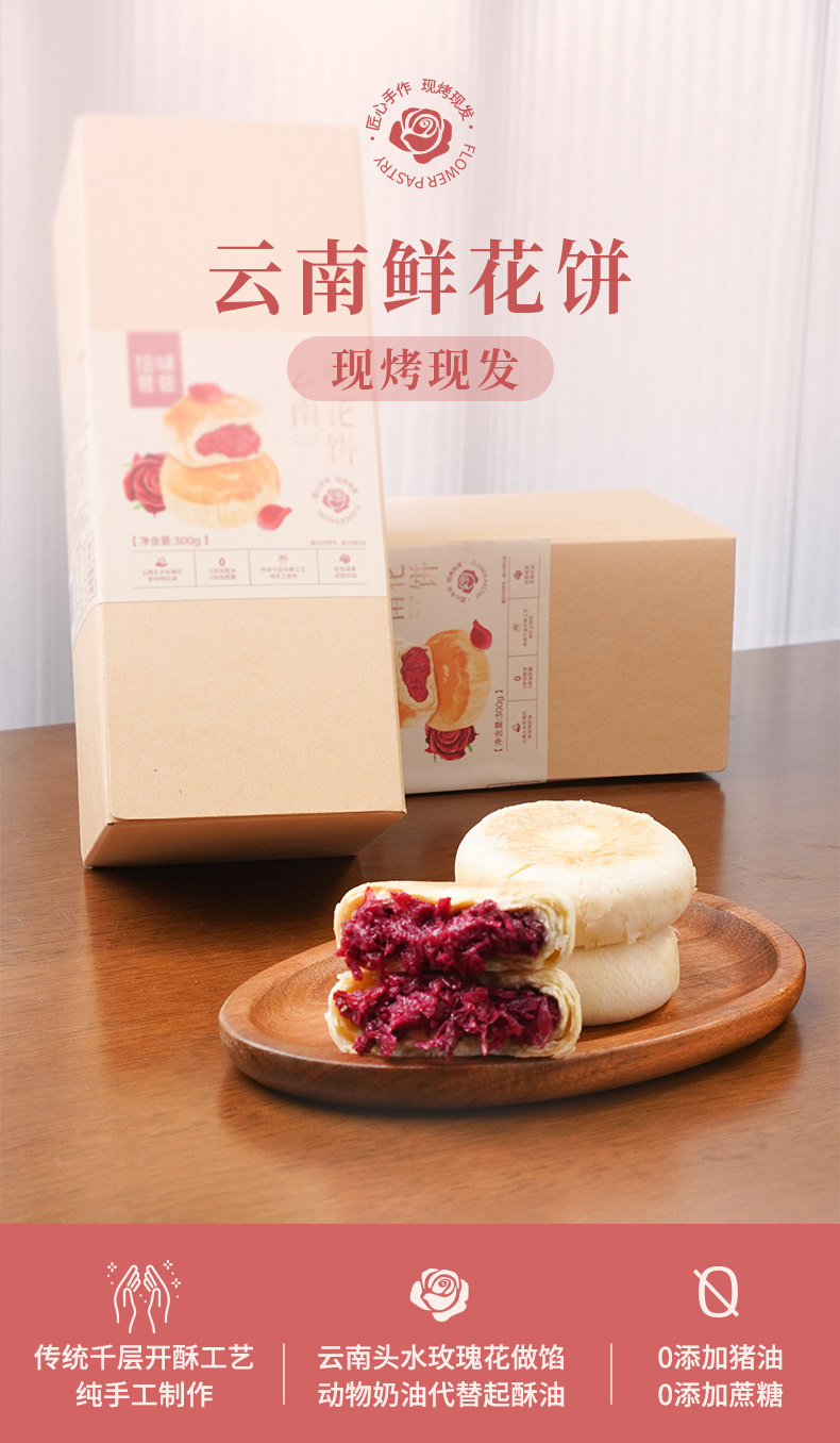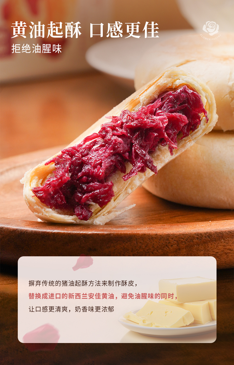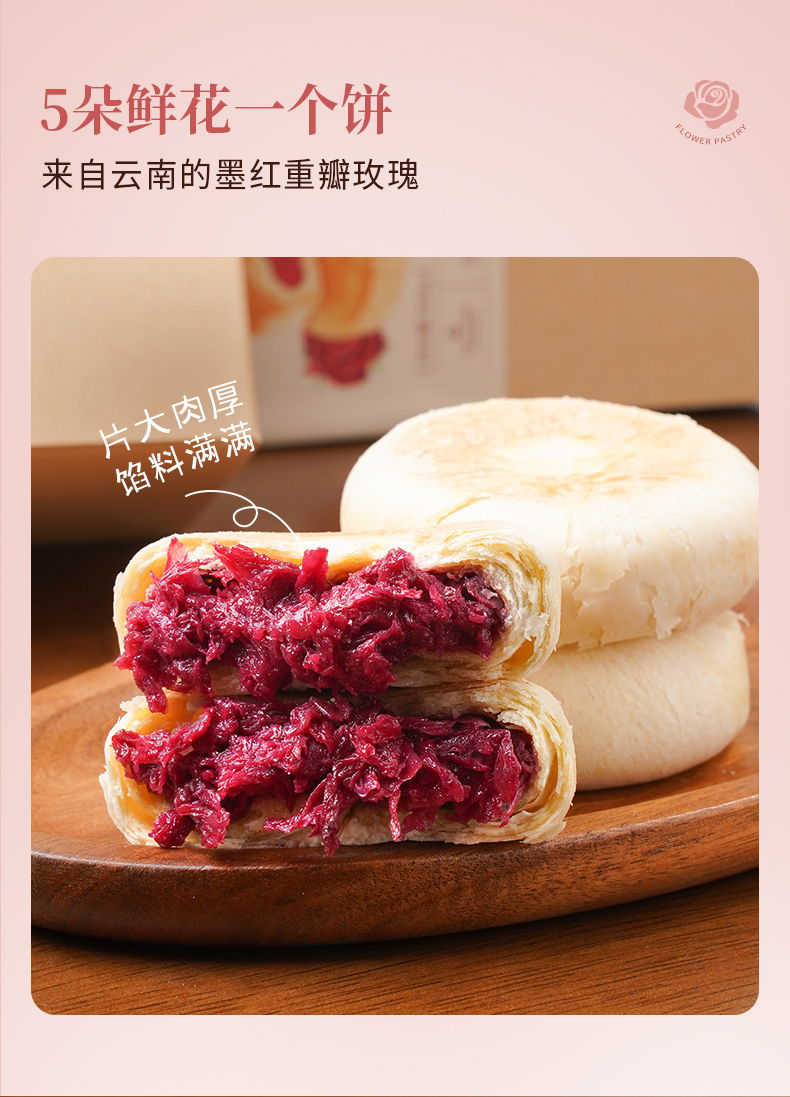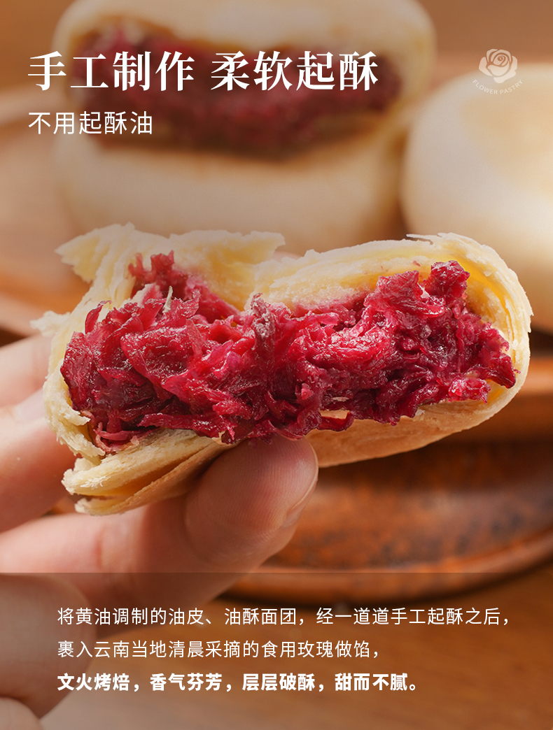 拾爸家⠀云南鲜花饼 纯手工制作 云南头水玫瑰花做馅 动物奶油制作 300g/盒