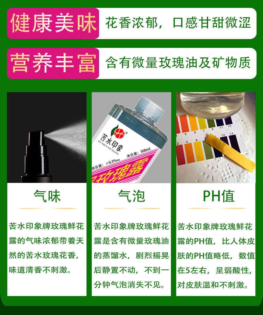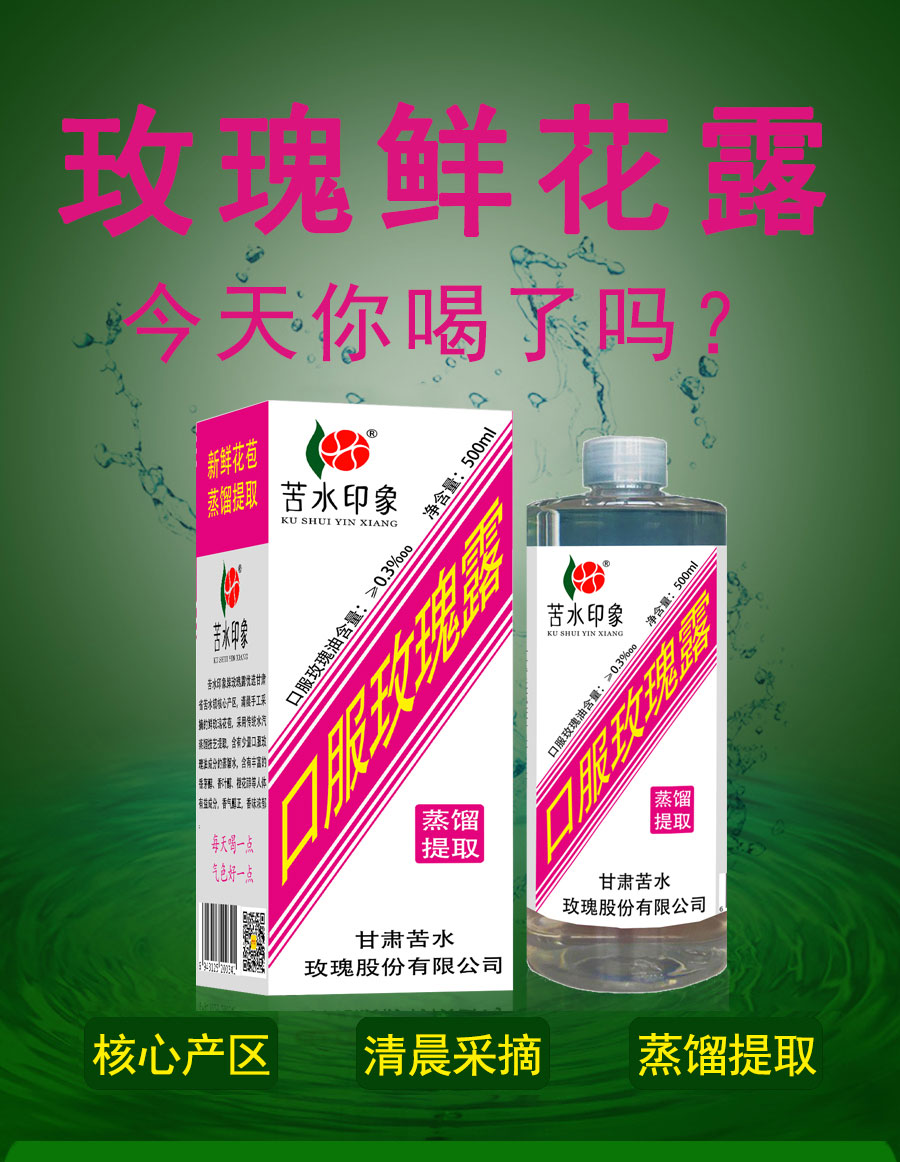 苦水印象牌口服玫瑰露500ml甘肃核心产区玫瑰蒸馏提取补水滋养