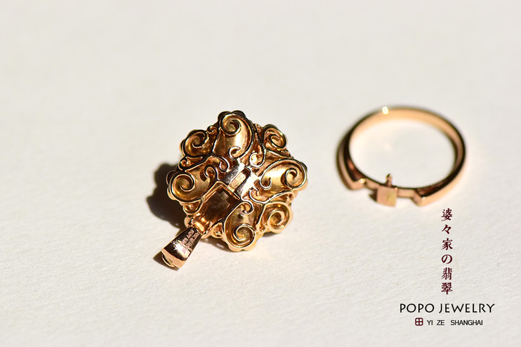 18K玫瑰金翡翠白蛋戒指吊坠两用款