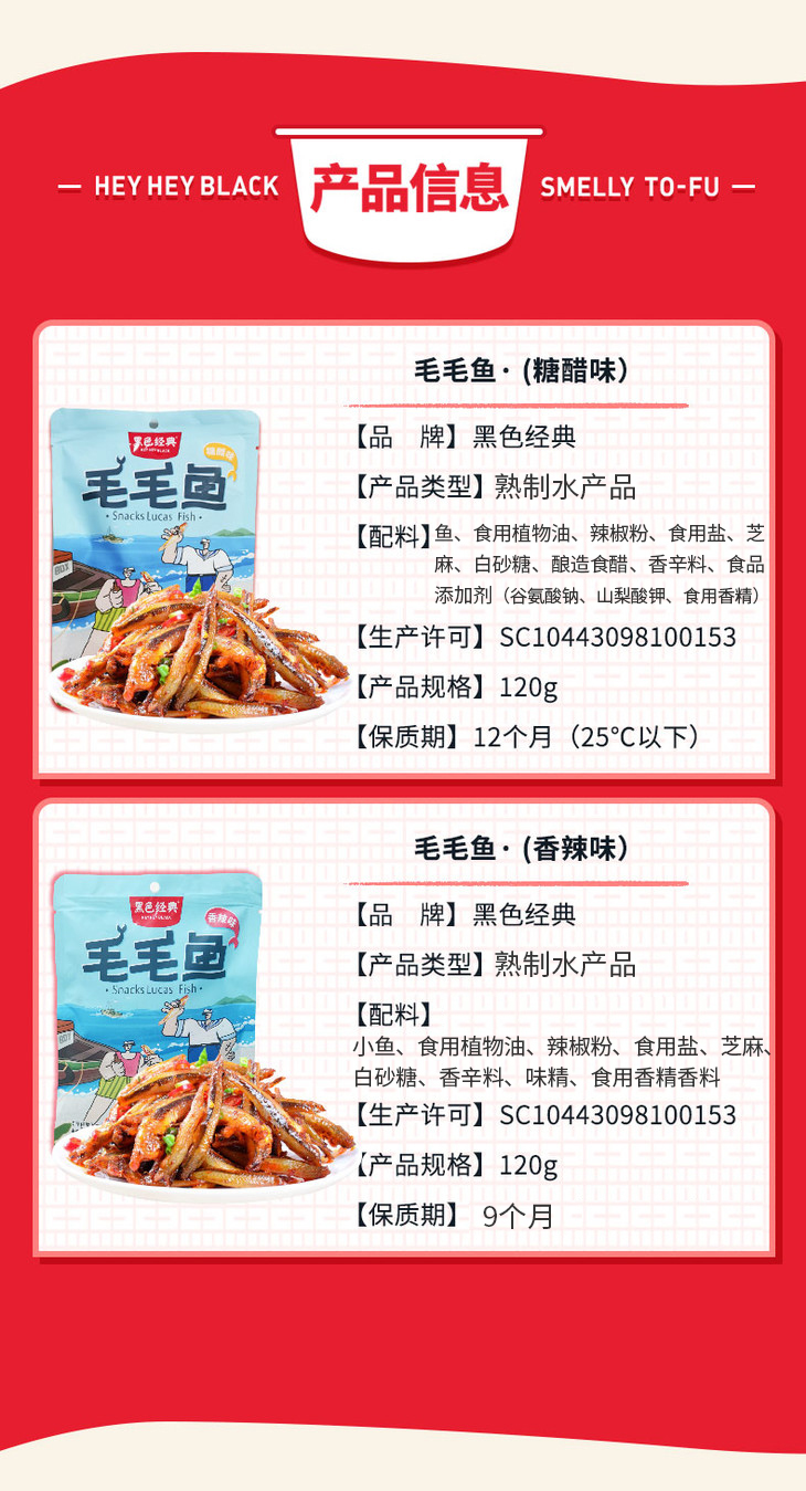 【湖南特产】黑色经典毛毛鱼120g/袋 香辣味 糖醋味可选12-15小包左右