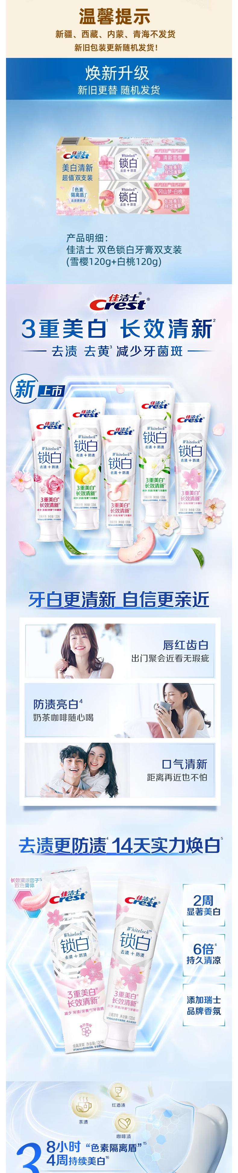 佳洁士 双色锁白牙膏双支装(雪樱120g+白桃120g) jsx2zbt