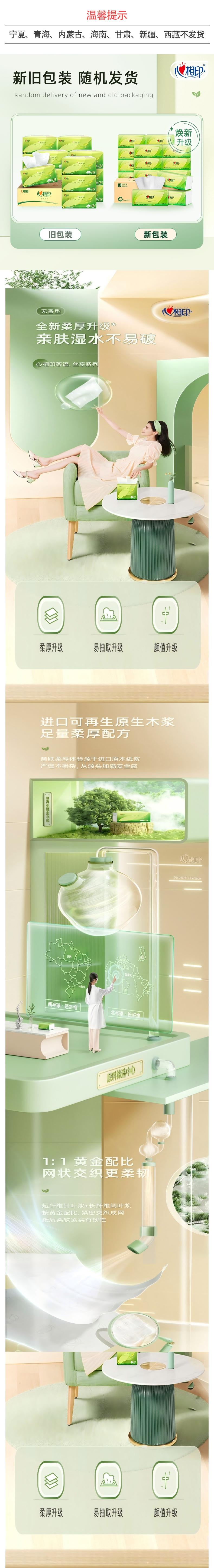 心相印 茶语丝享系列120抽18包装三层塑装纸面巾 ADA00844