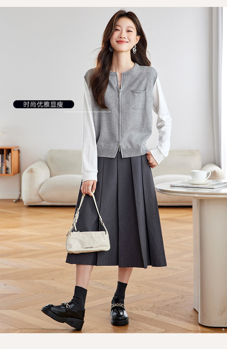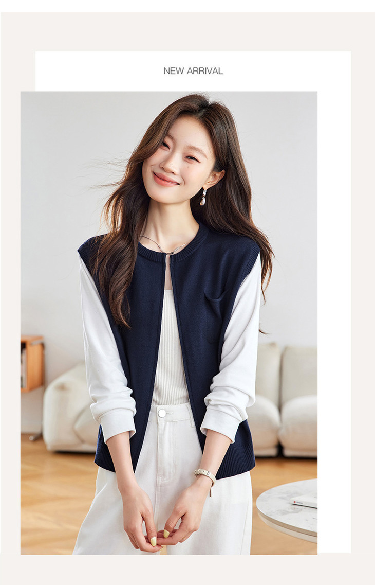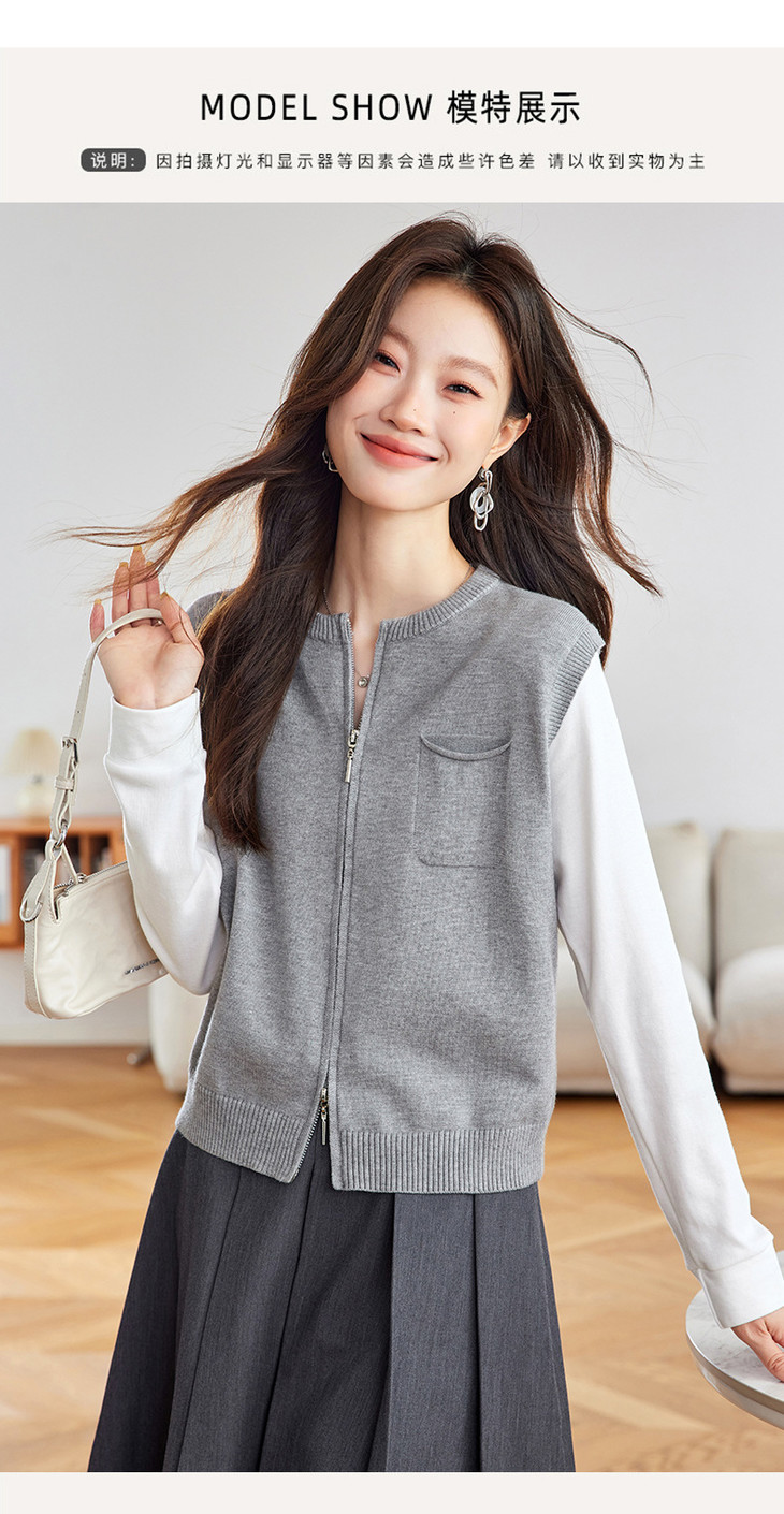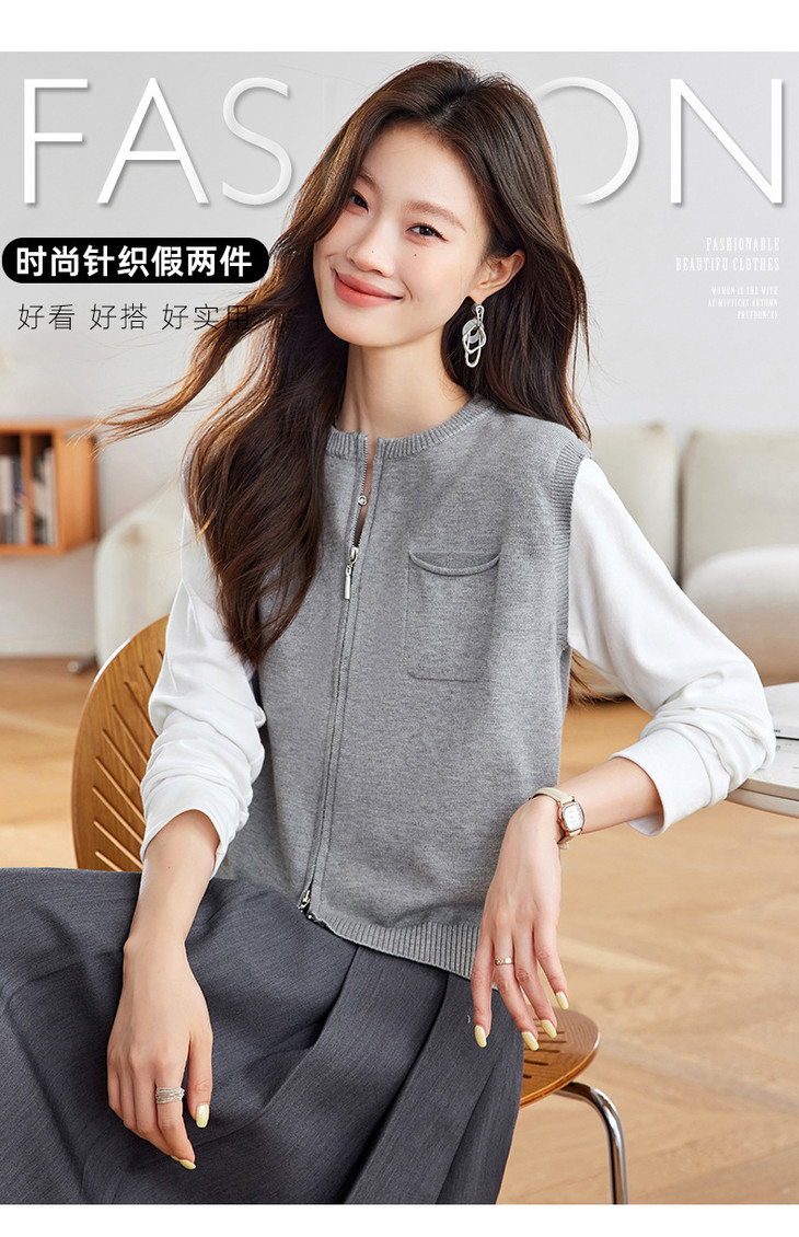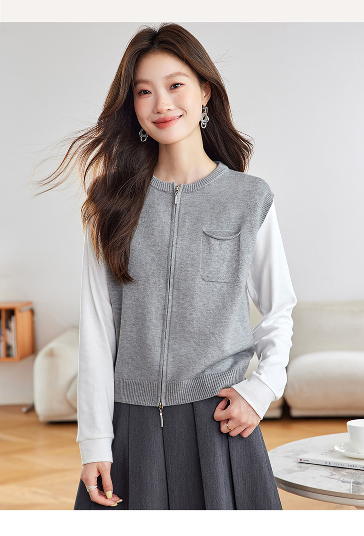 拼接洋气减龄上衣,时尚针织港风毛衣开衫CC-22-2696