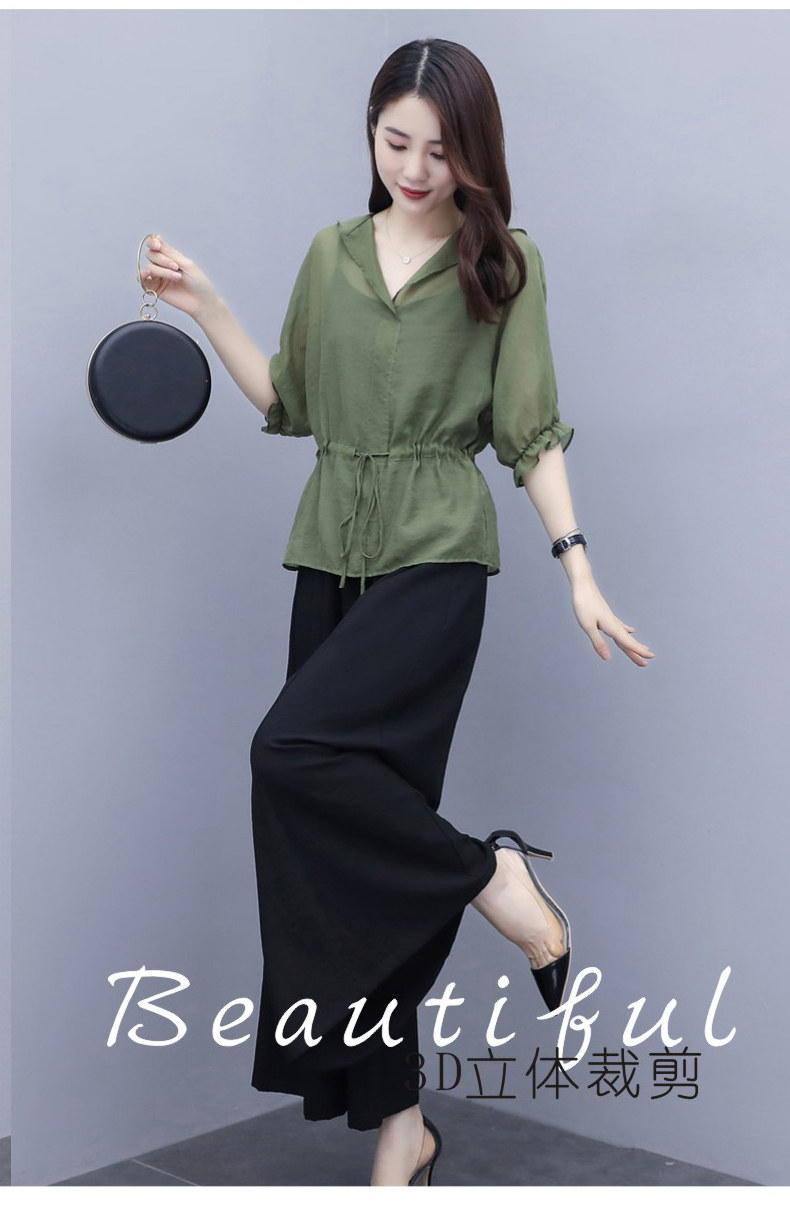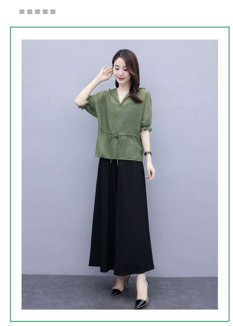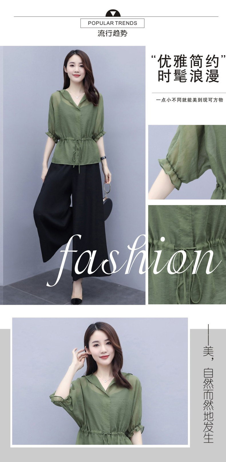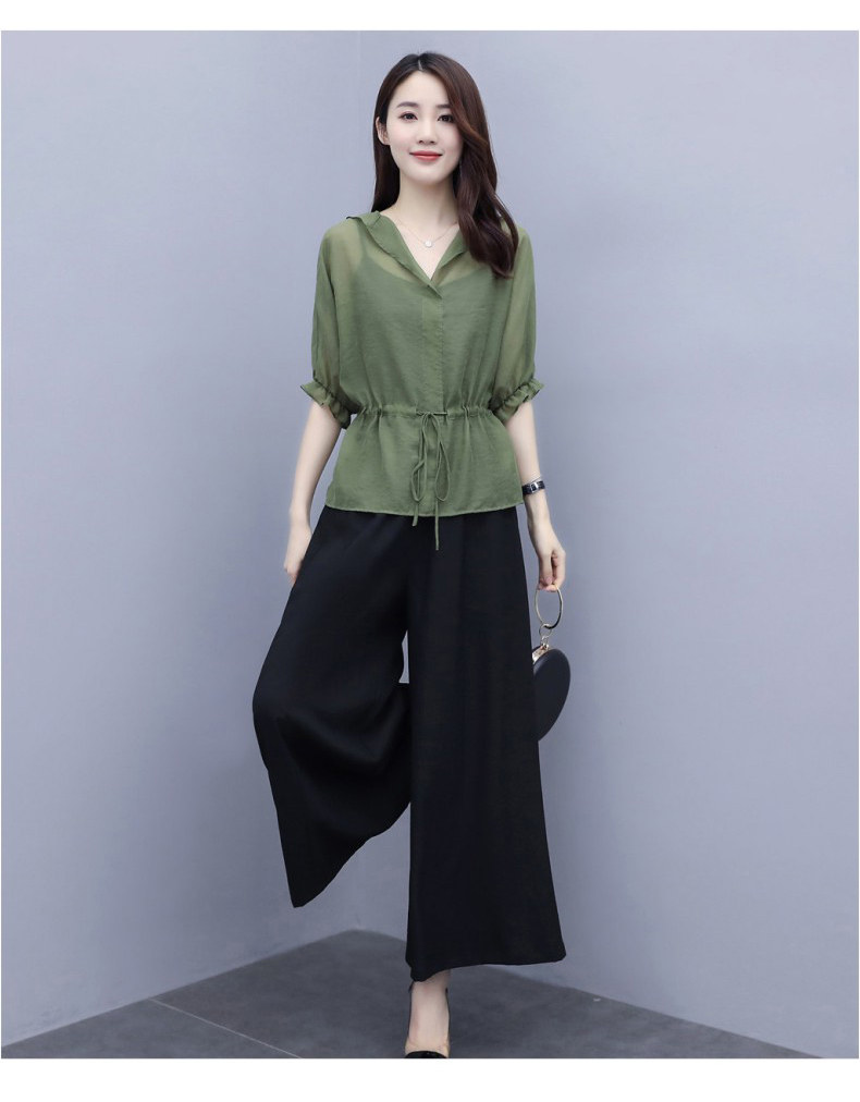 WZNH-ZMFS20607夏装新款时尚简约复古小吊带上衣阔腿裤三件套装