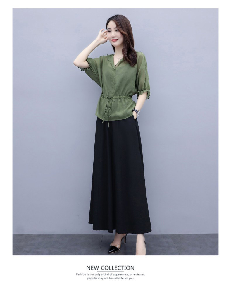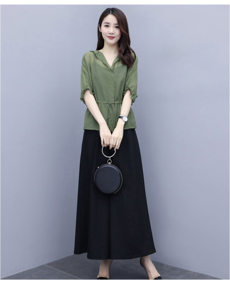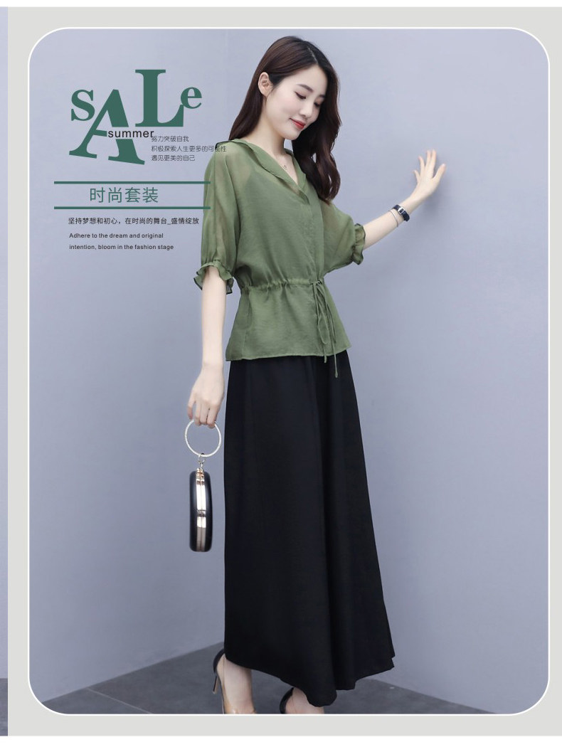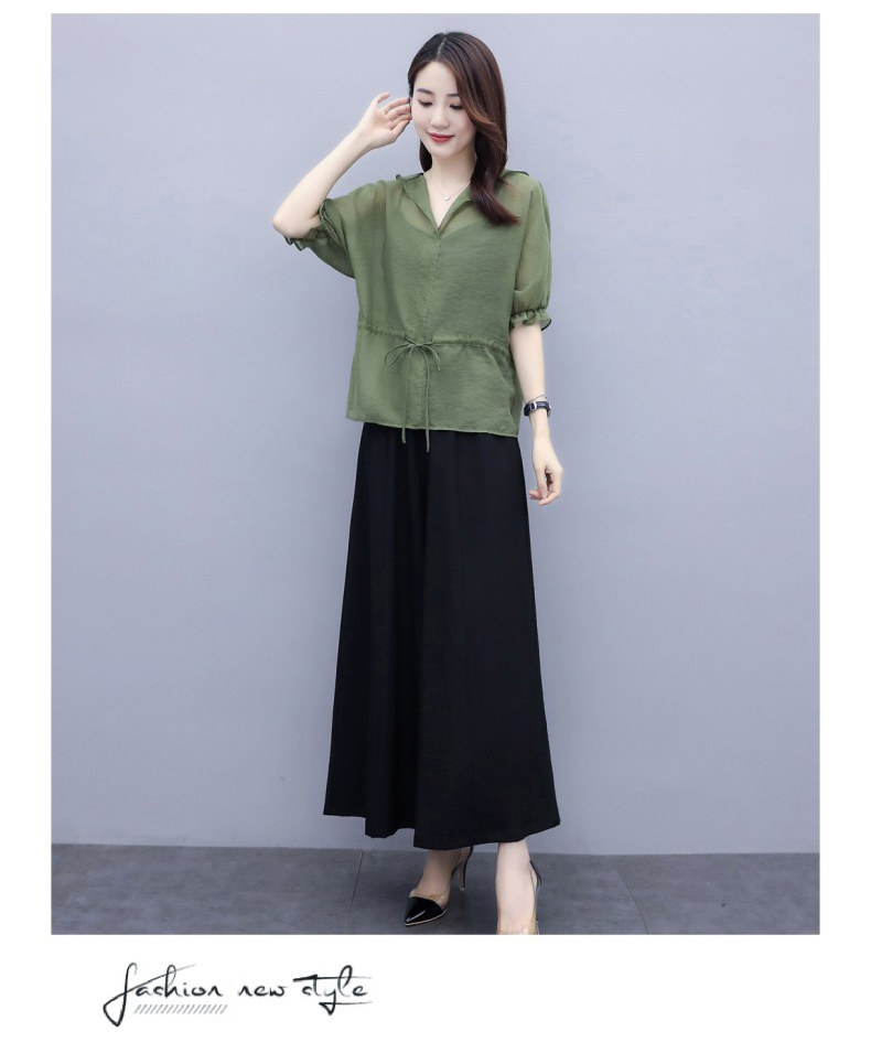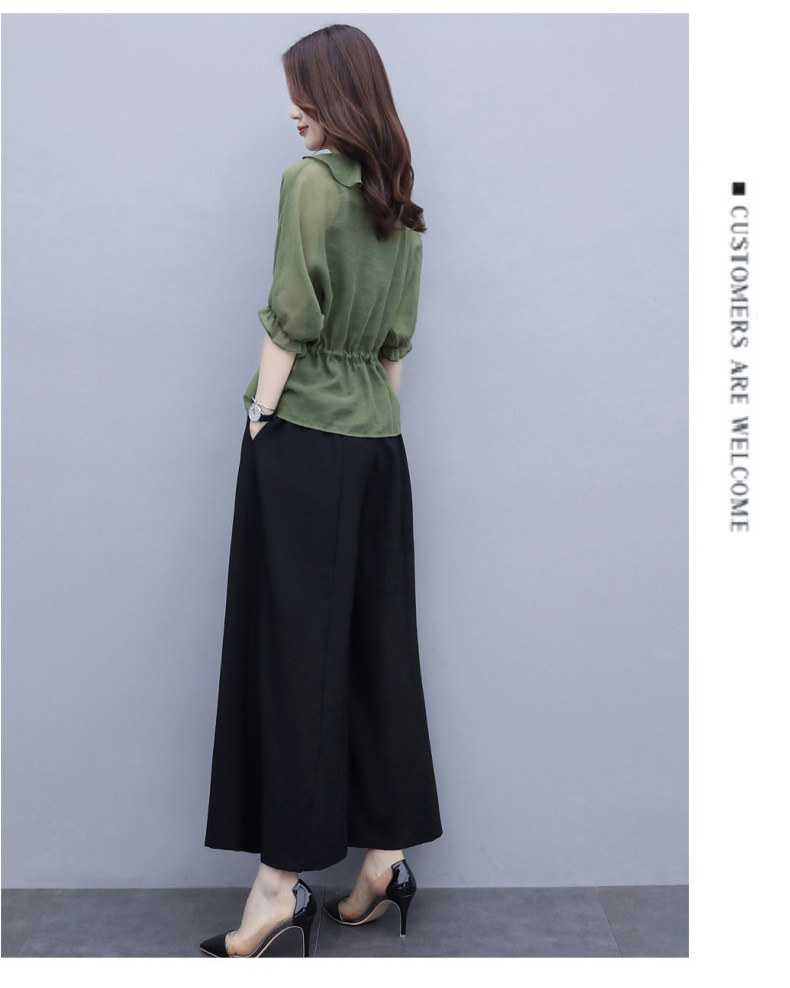 WZNH-ZMFS20607夏装新款时尚简约复古小吊带上衣阔腿裤三件套装
