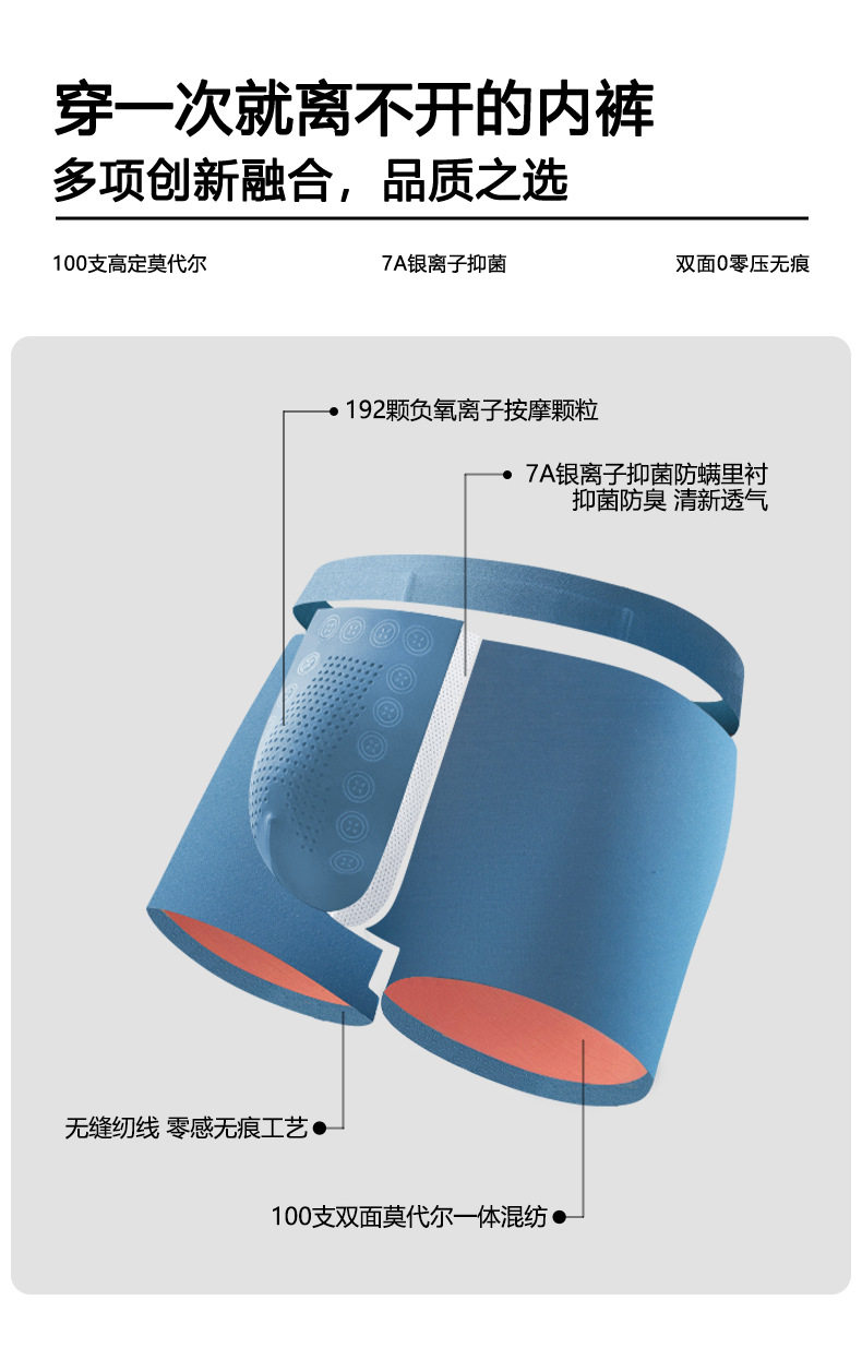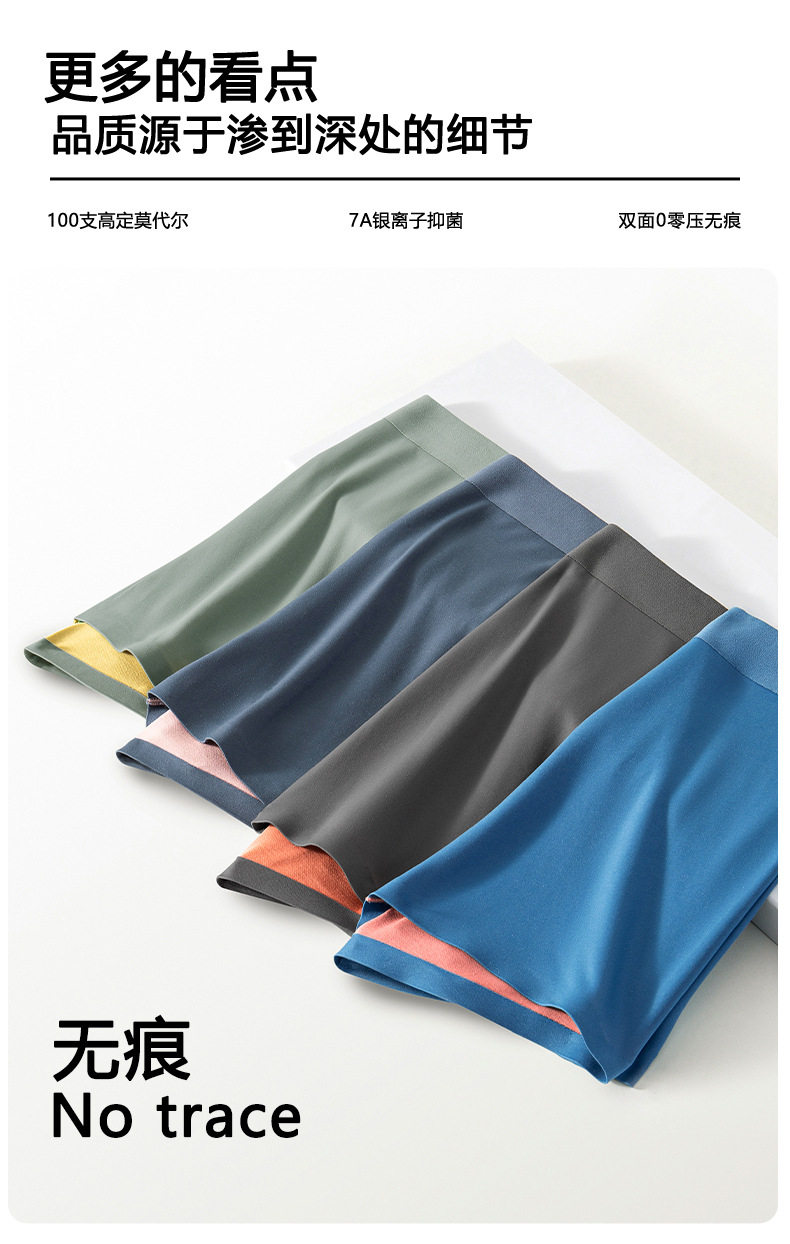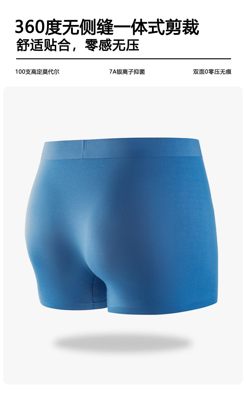 XY-1366 【1条】100支双面托玛琳男士内裤男生莫代尔四角无痕7A抗菌平角短裤夏季