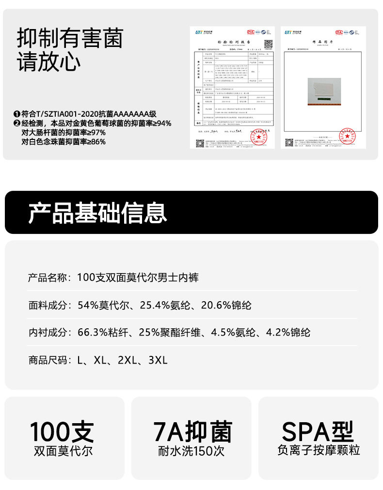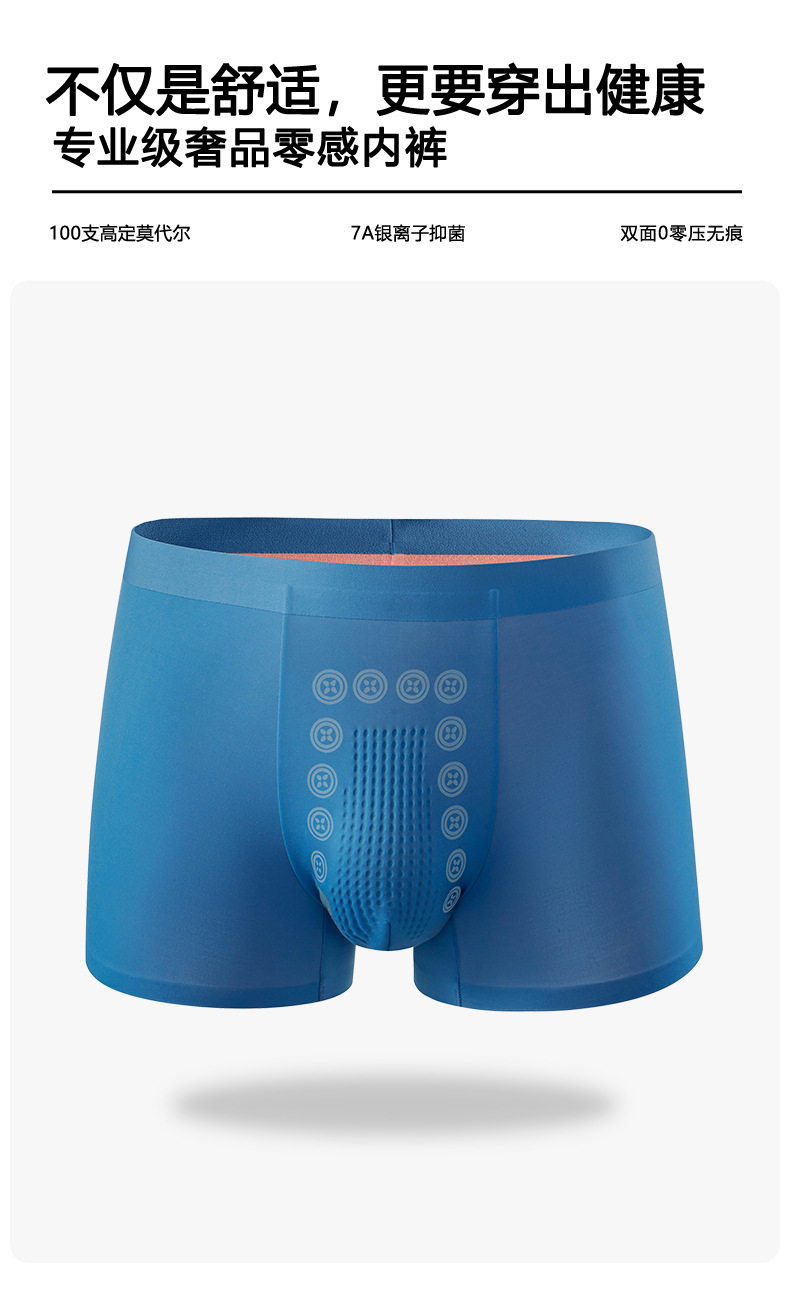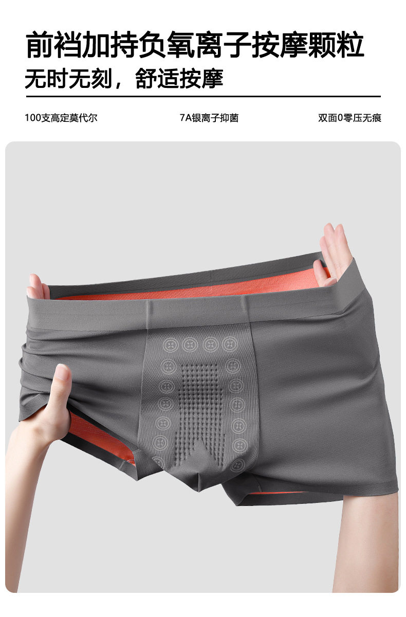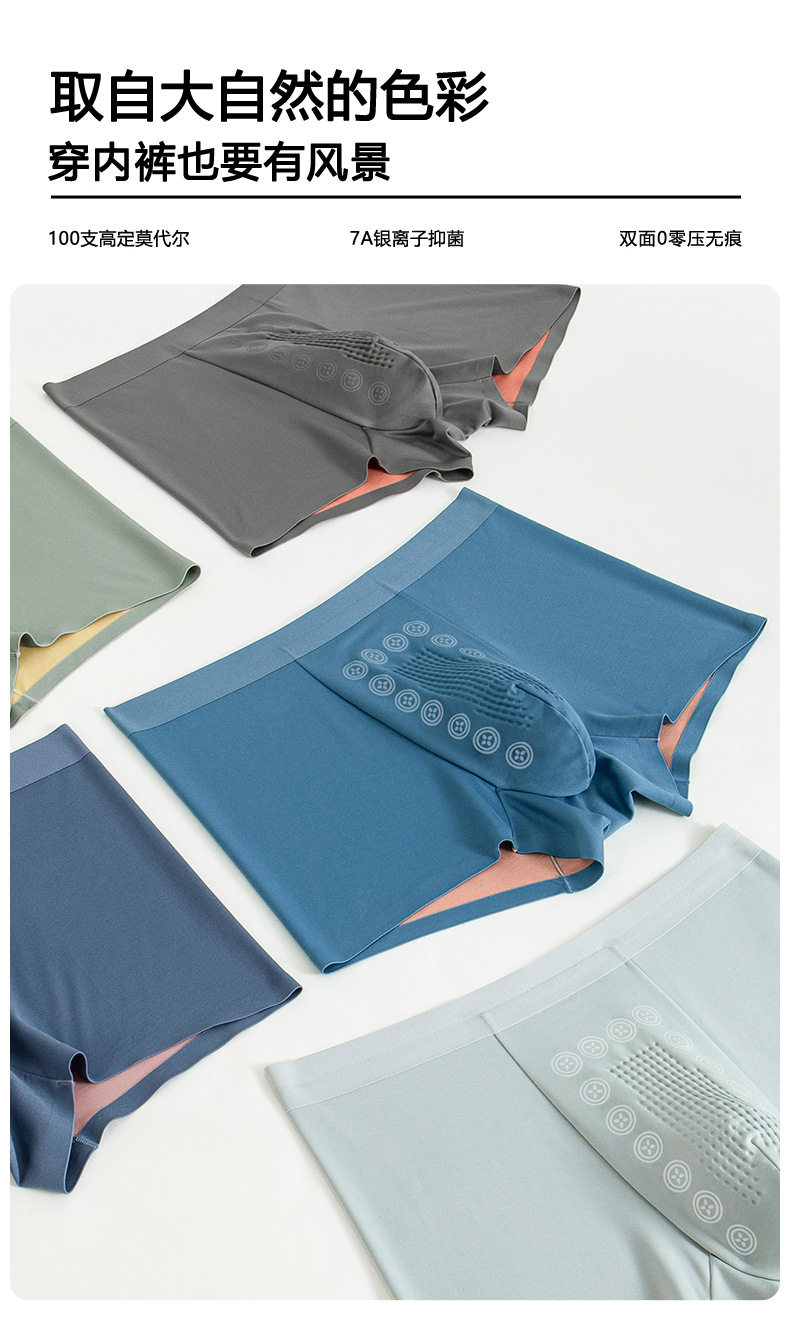XY-1366 【1条】100支双面托玛琳男士内裤男生莫代尔四角无痕7A抗菌平角短裤夏季