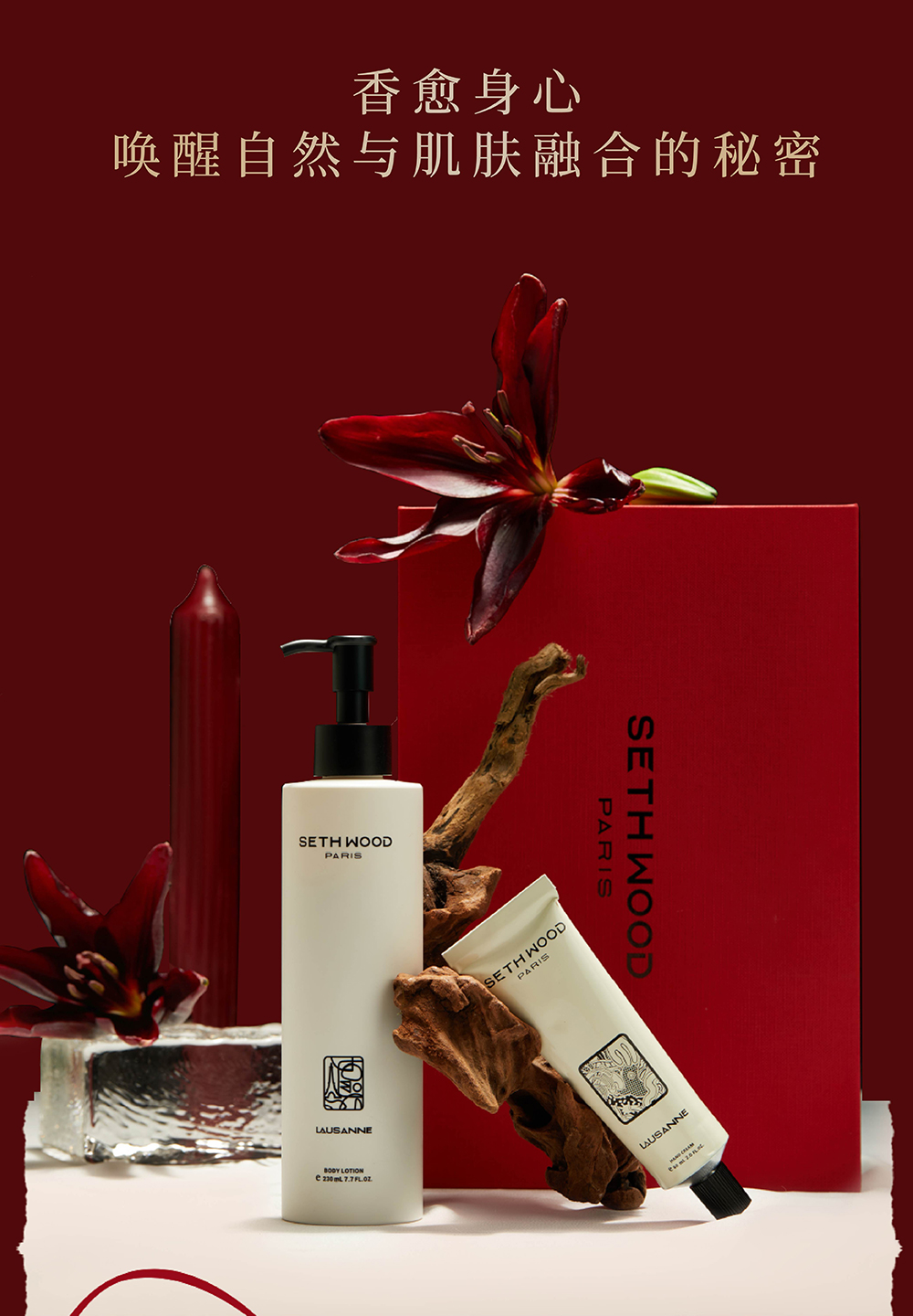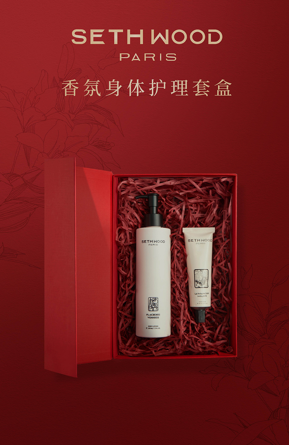 【身体乳230ml+护手霜60ml】SETH WOOD法国进口身体乳,37°C即触细腻乳霜质地,丝滑好吸收保湿修复,木质香为基底,香味持久丰富配礼盒+礼袋。