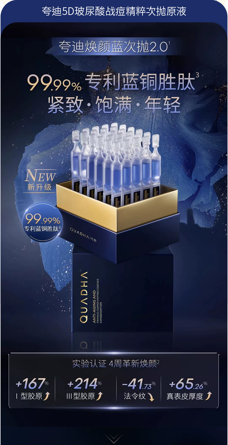 华熙生物夸迪次抛精华液 30 支战痘悬油新焕颜蓝铜胜肽紧颜肽次抛