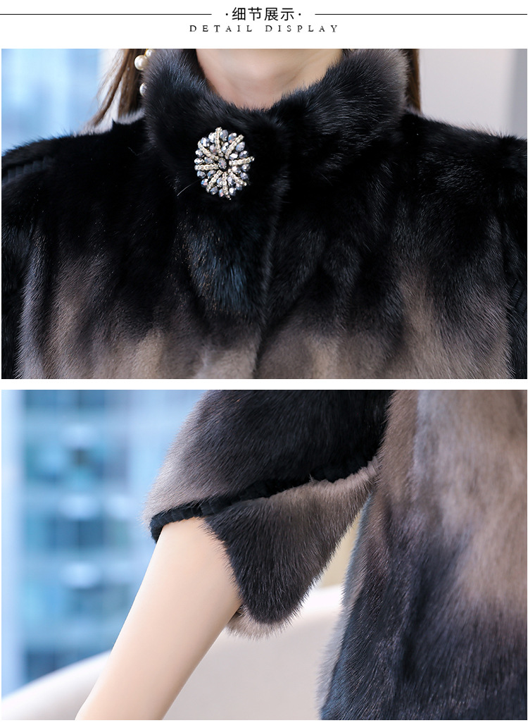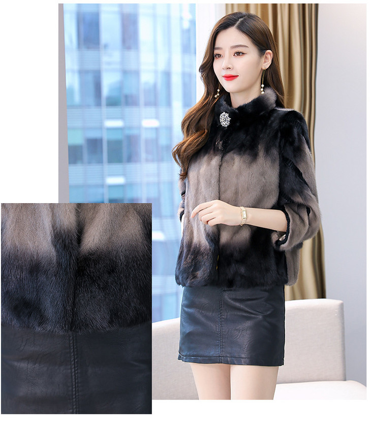 AHM-nrh2821新款时尚优雅气质修身圆领七分袖短款仿水貂毛领皮草外套