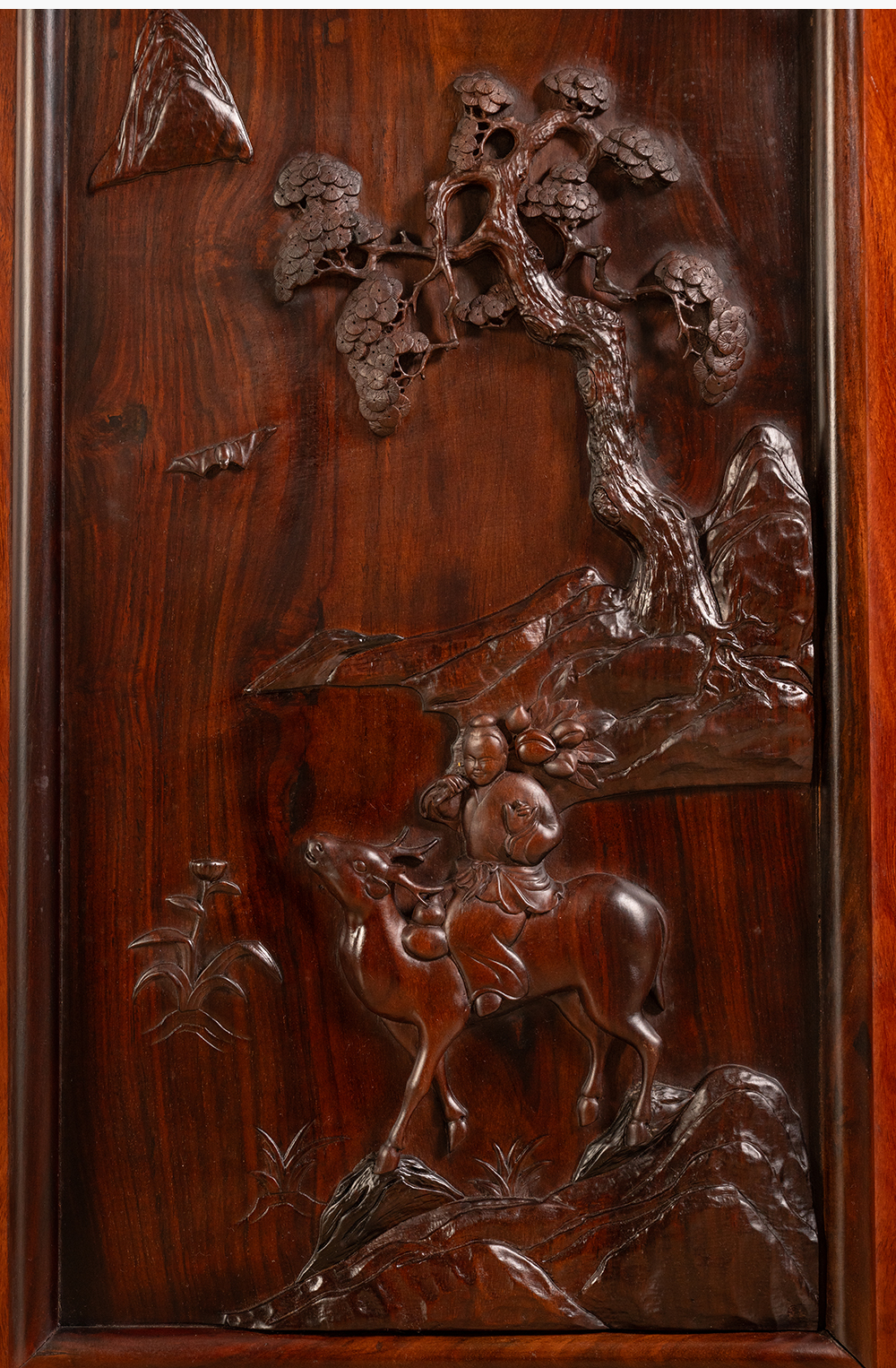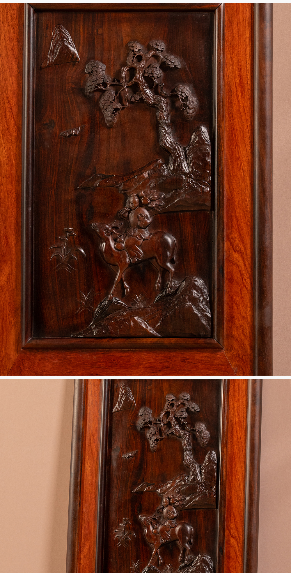 二十世纪 黄花梨卷草纹三弯腿带托泥方香几(一对)