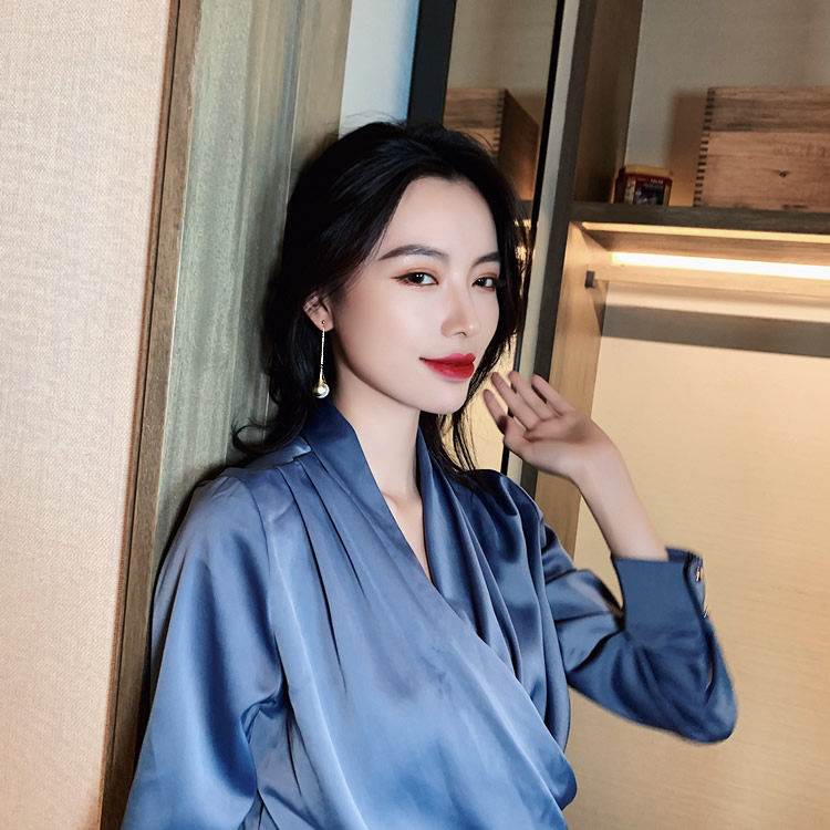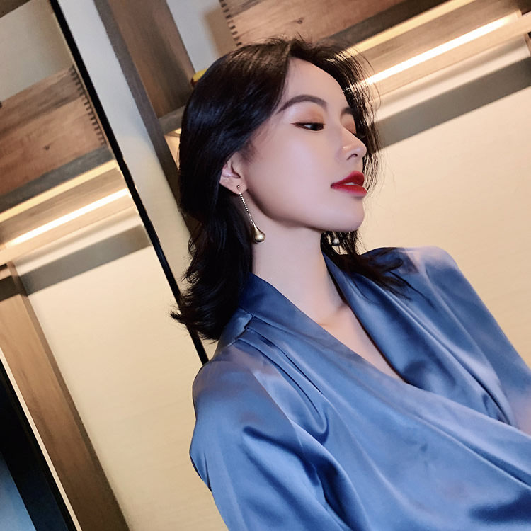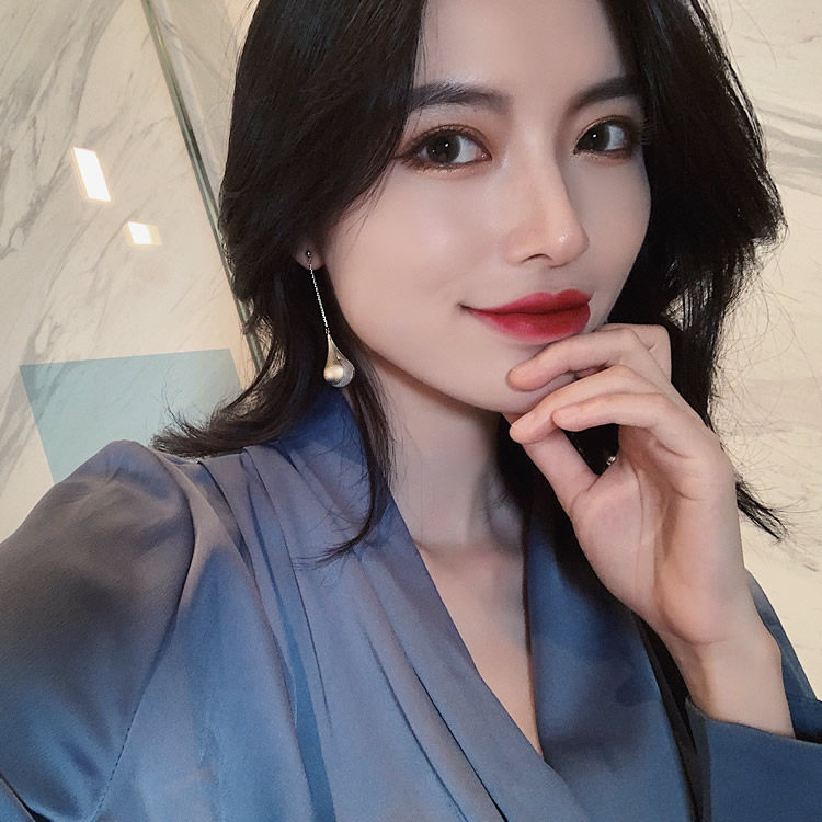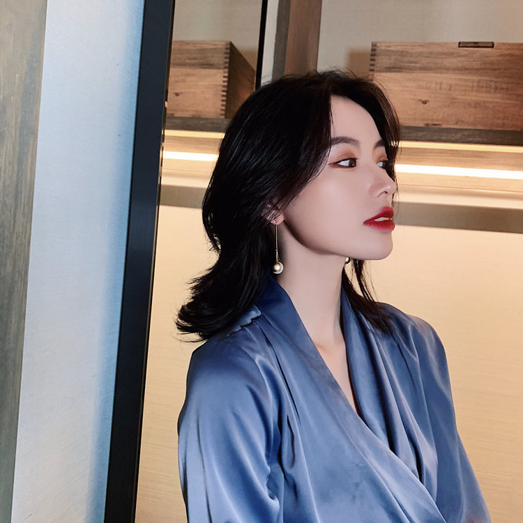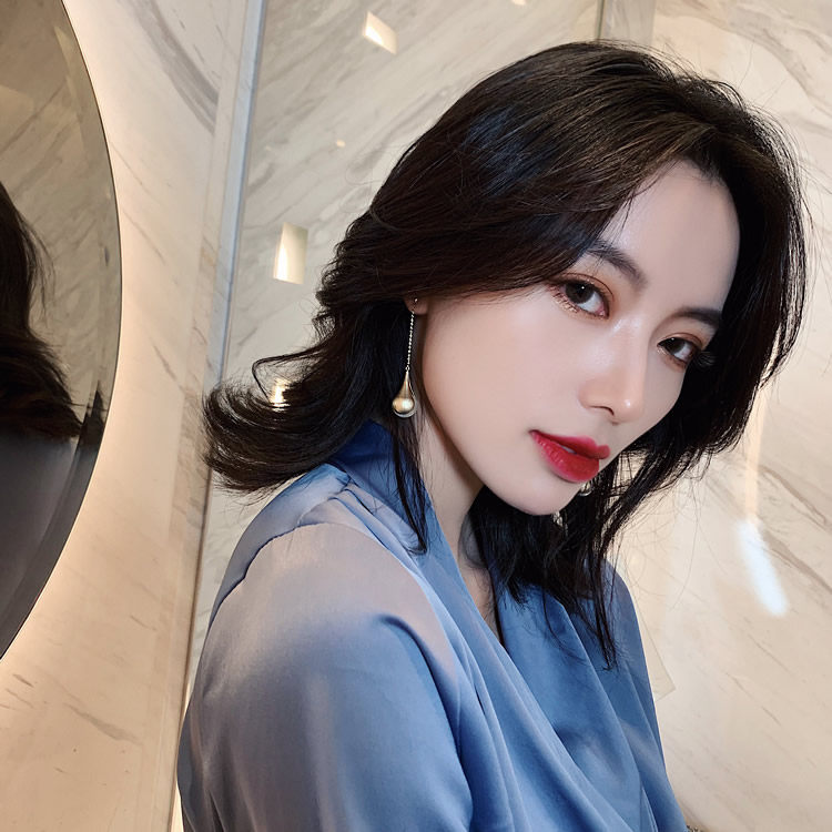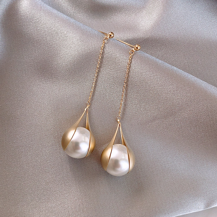 AS-B-123-S925银针法式气质长款流苏珍珠耳环
