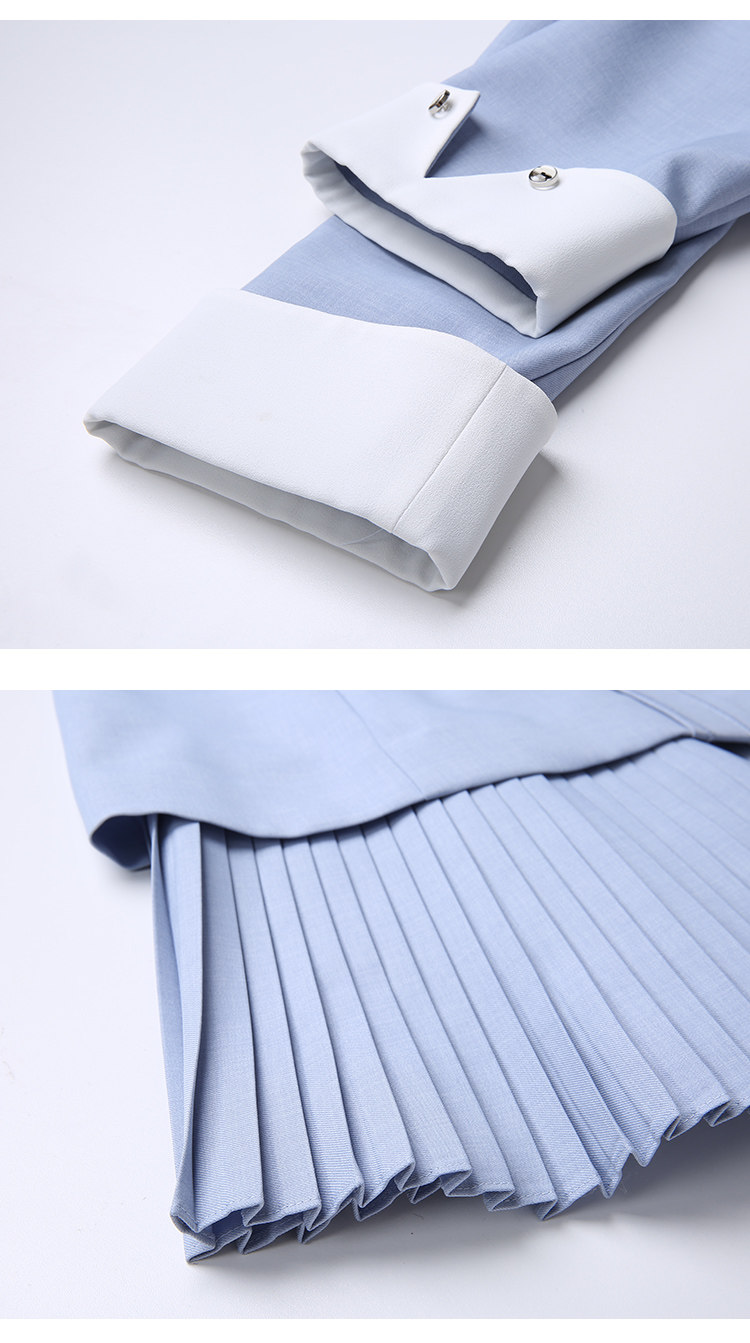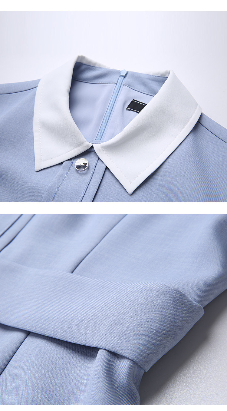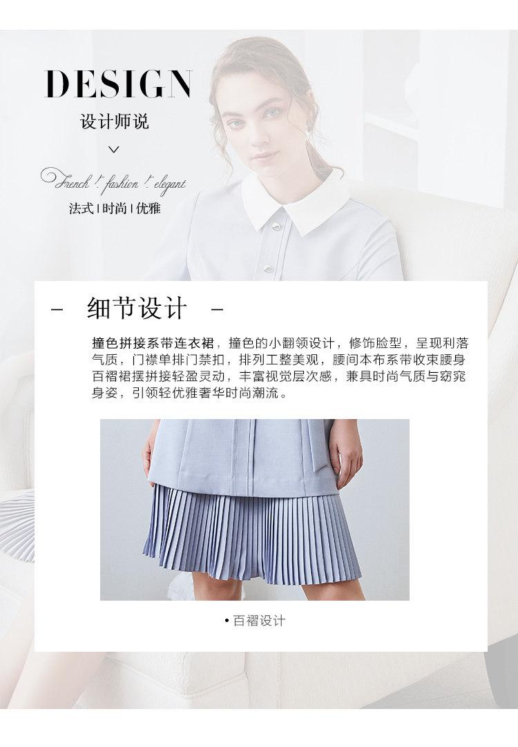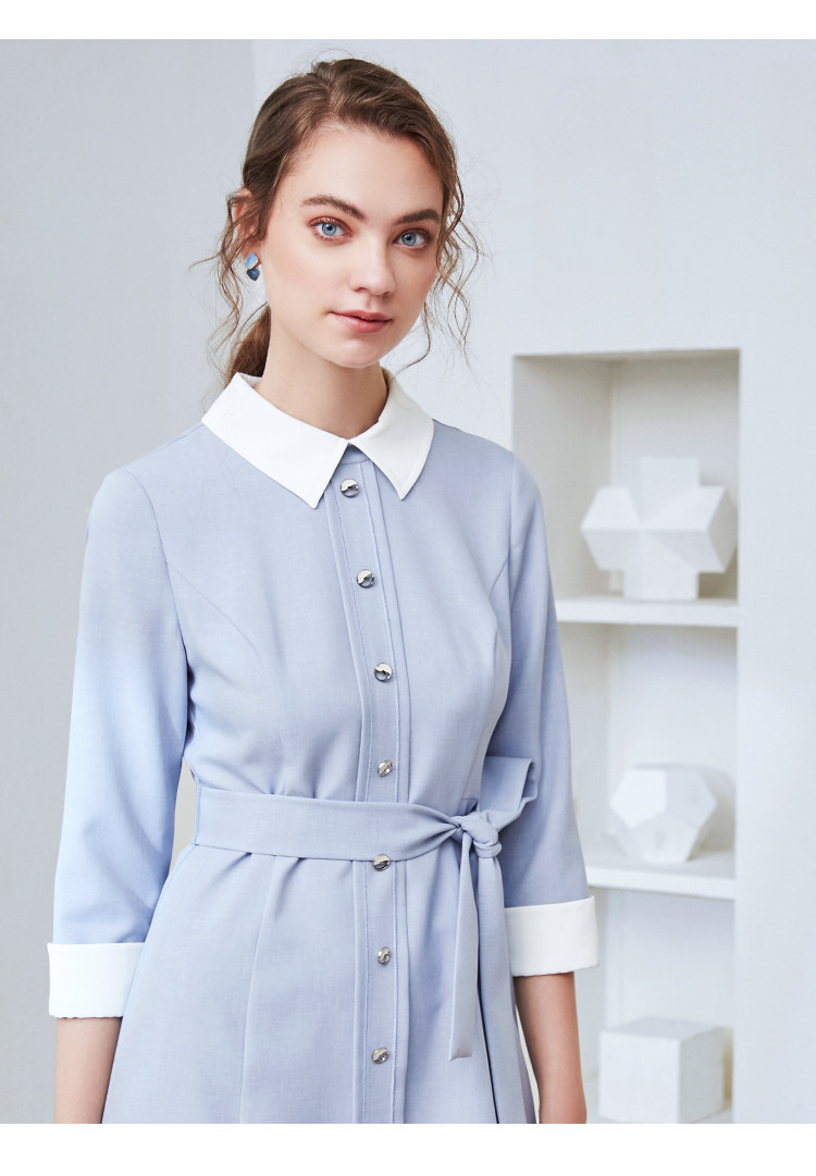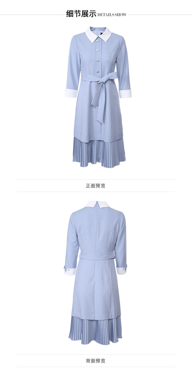EITIE爱特爱秋季新款通勤百搭简约翻领收腰A字百褶连衣裙女裙C2007548