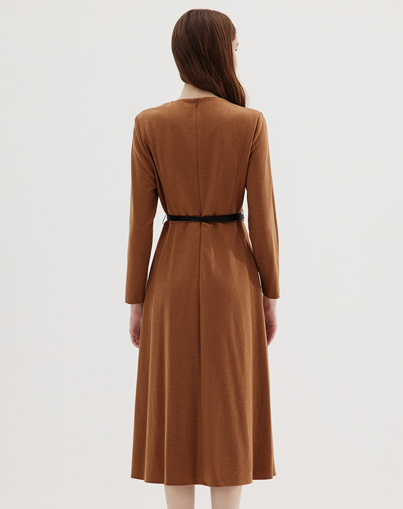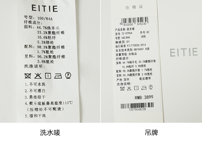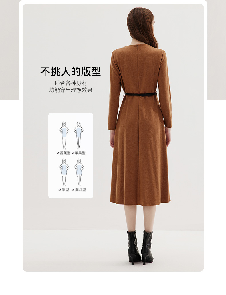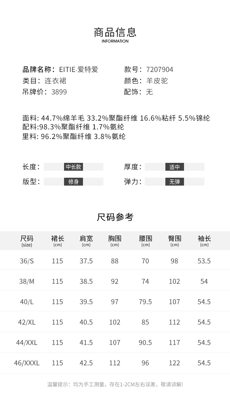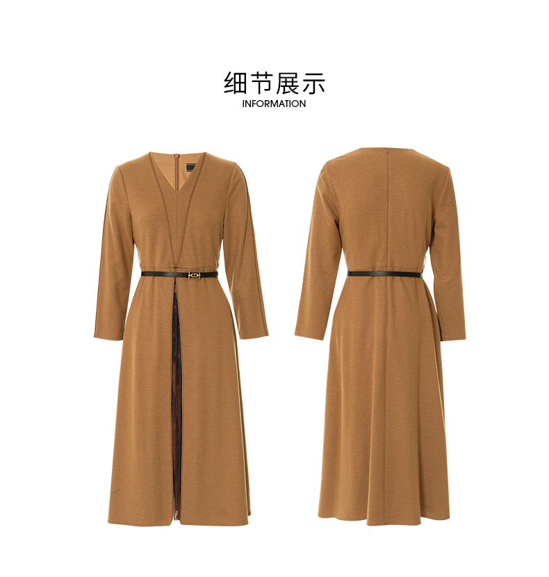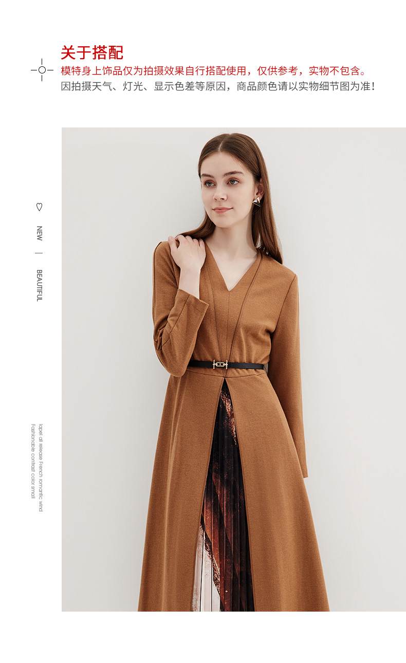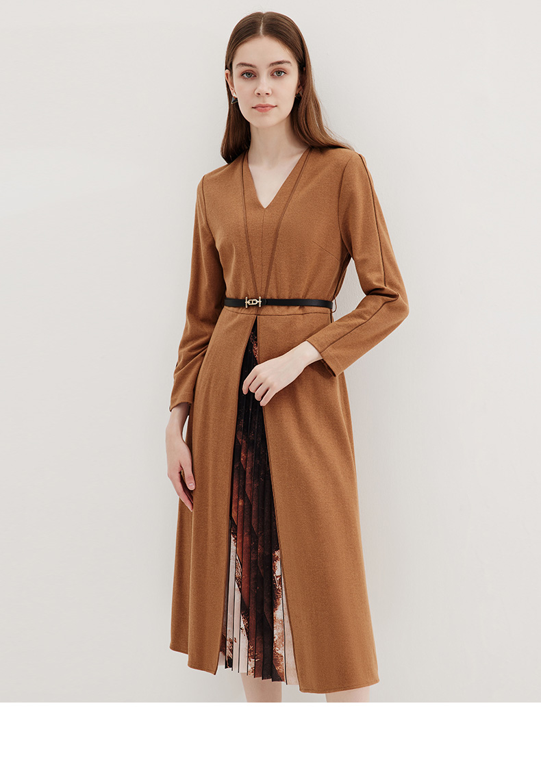 EITIE爱特爱冬季新款气质时尚V领收腰A字百褶拼接连衣裙7207904