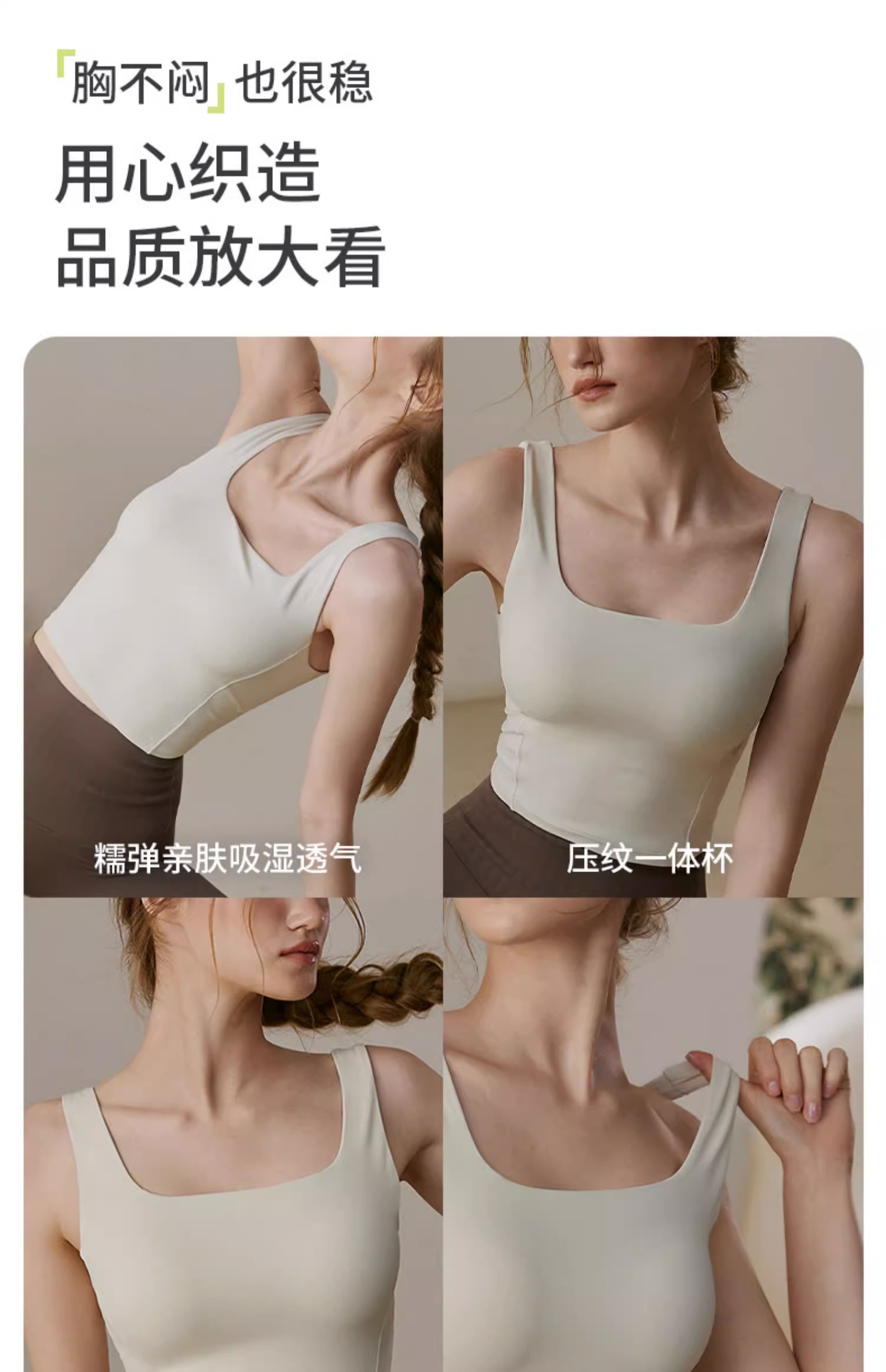 【3~5天发货】跃牌【美度空间】系列裸感运动内衣女夏季方领一体式瑜伽文胸防震跑步健身背心WX1494(一体式胸垫)