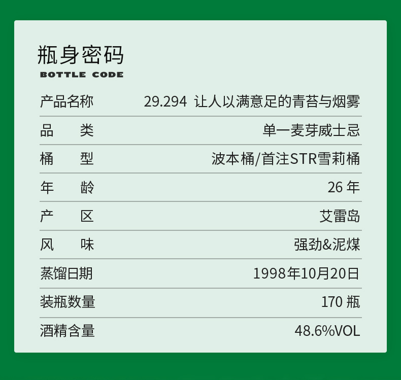 SMWS 苏格兰麦芽威士忌协会 29.294 让人以满意足的青苔与烟雾