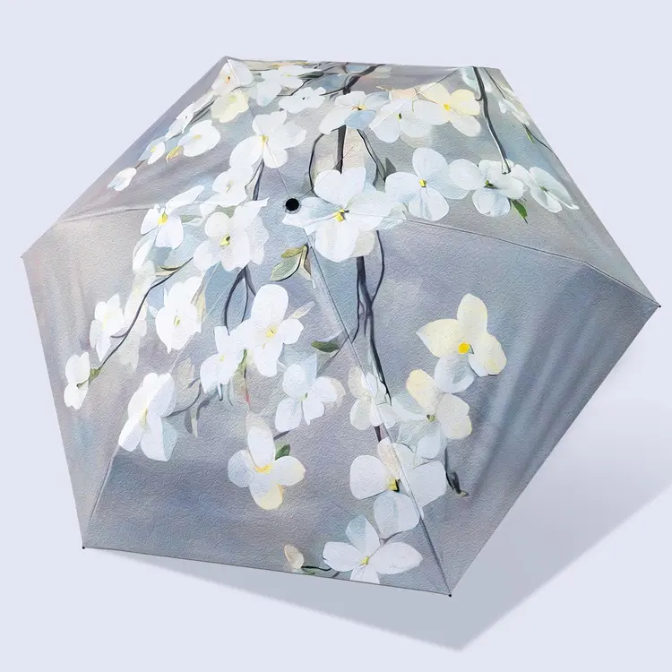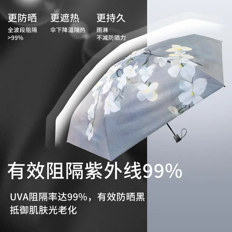 紫宝【小轻伞】花开落影五折印花晴雨两用黑胶