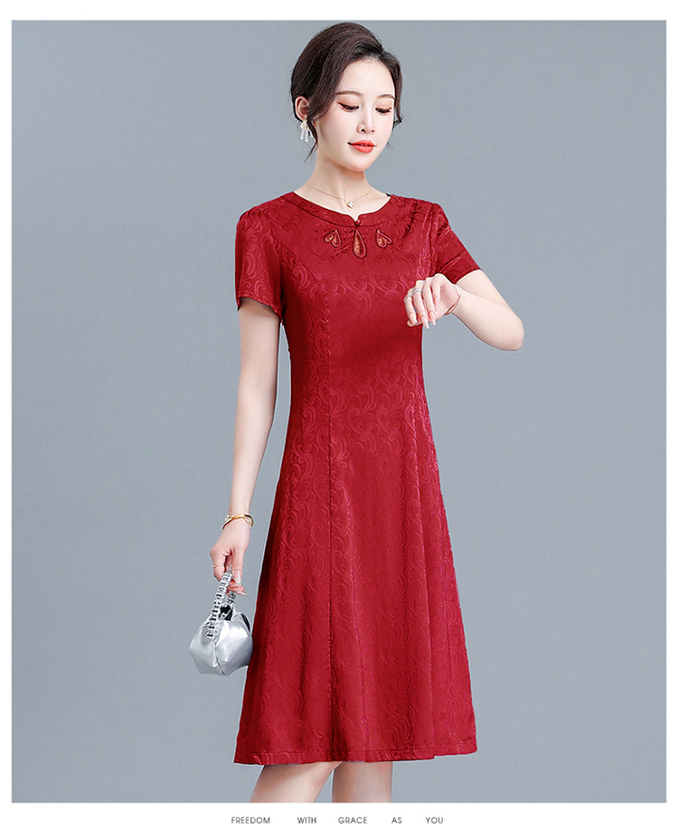 QYM 15A37-L印花修身时尚连衣裙简约气质优雅A字裙