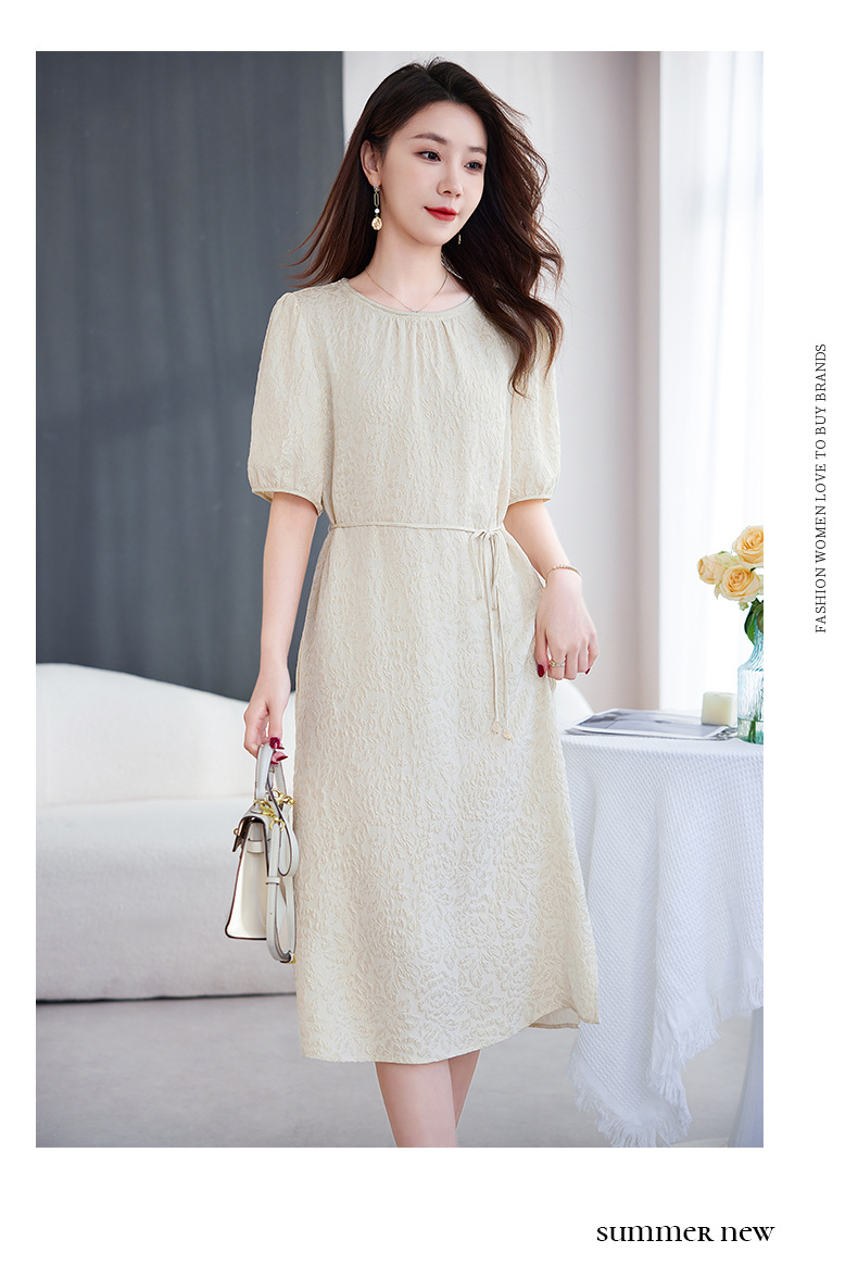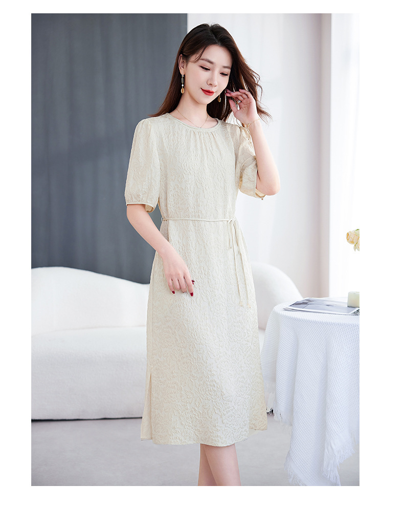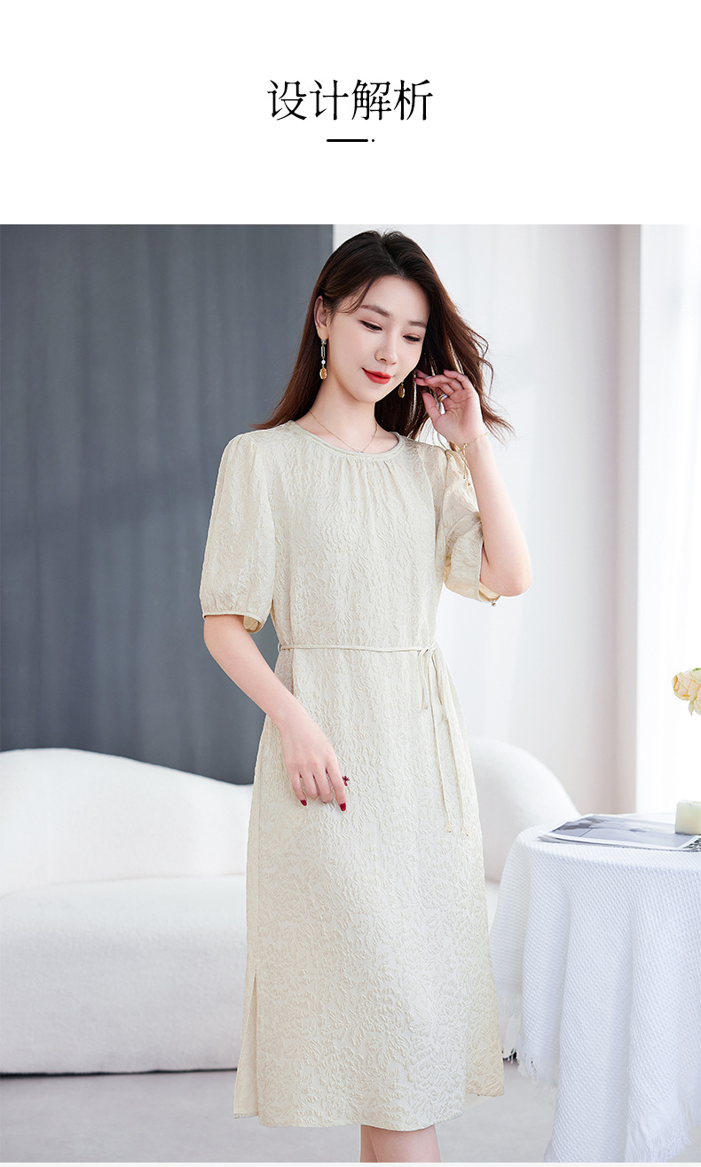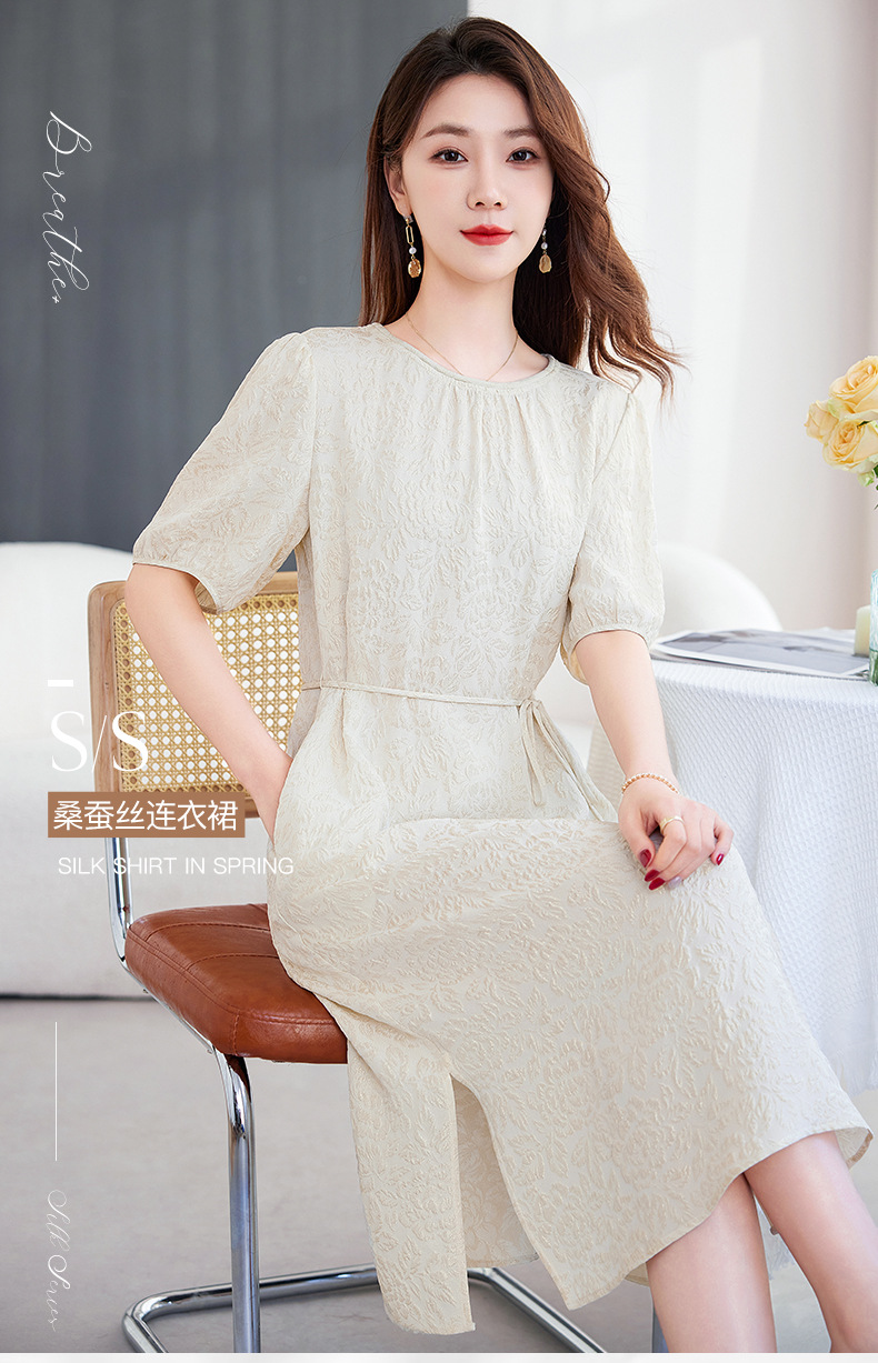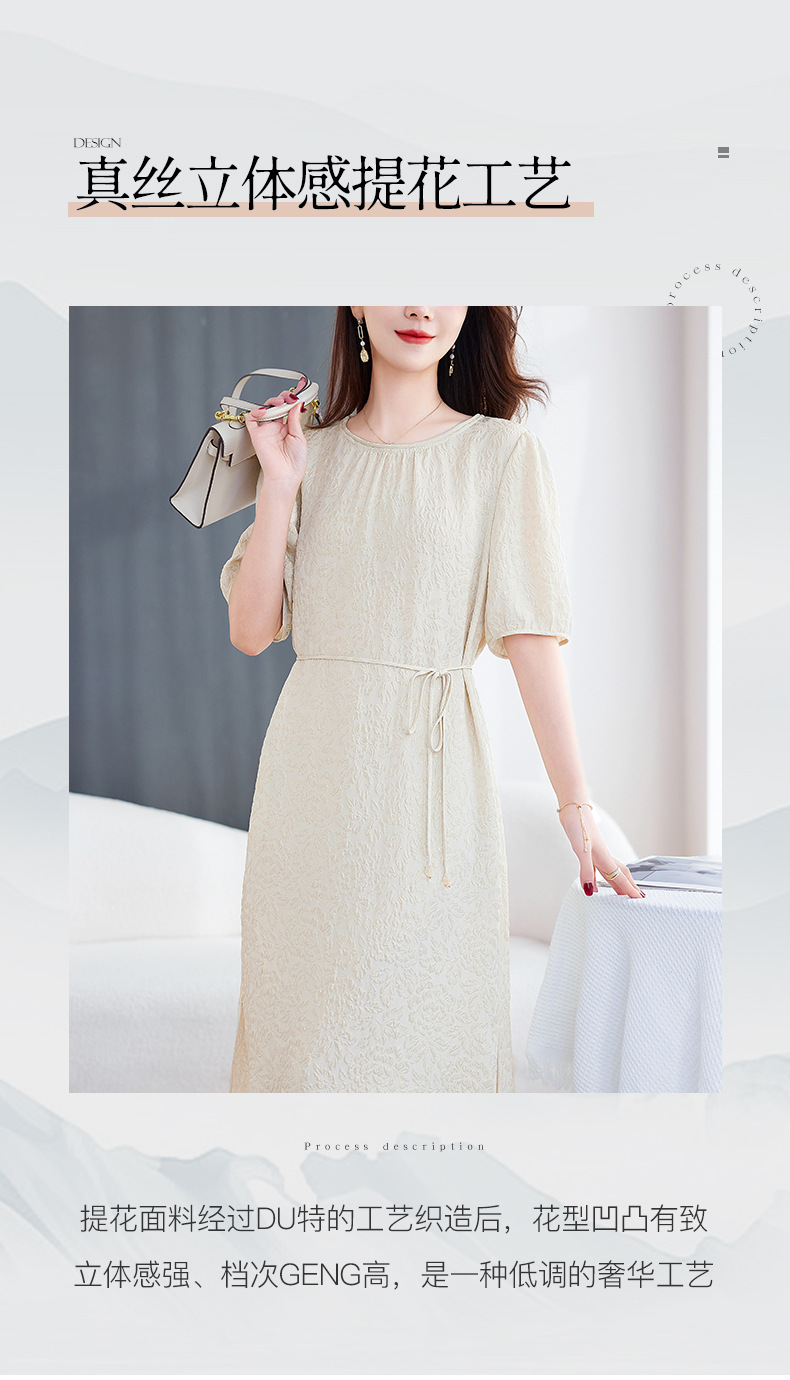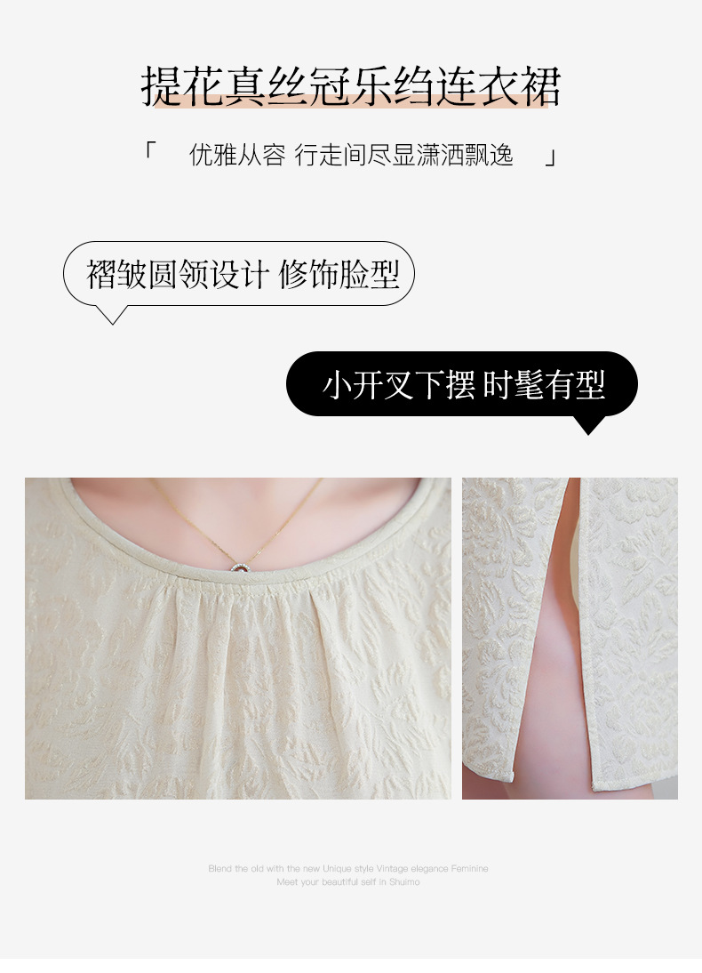 QS-82599210丝络花间丝绸桑蚕丝中长裙子宽松显瘦圆领真丝连衣裙女9210