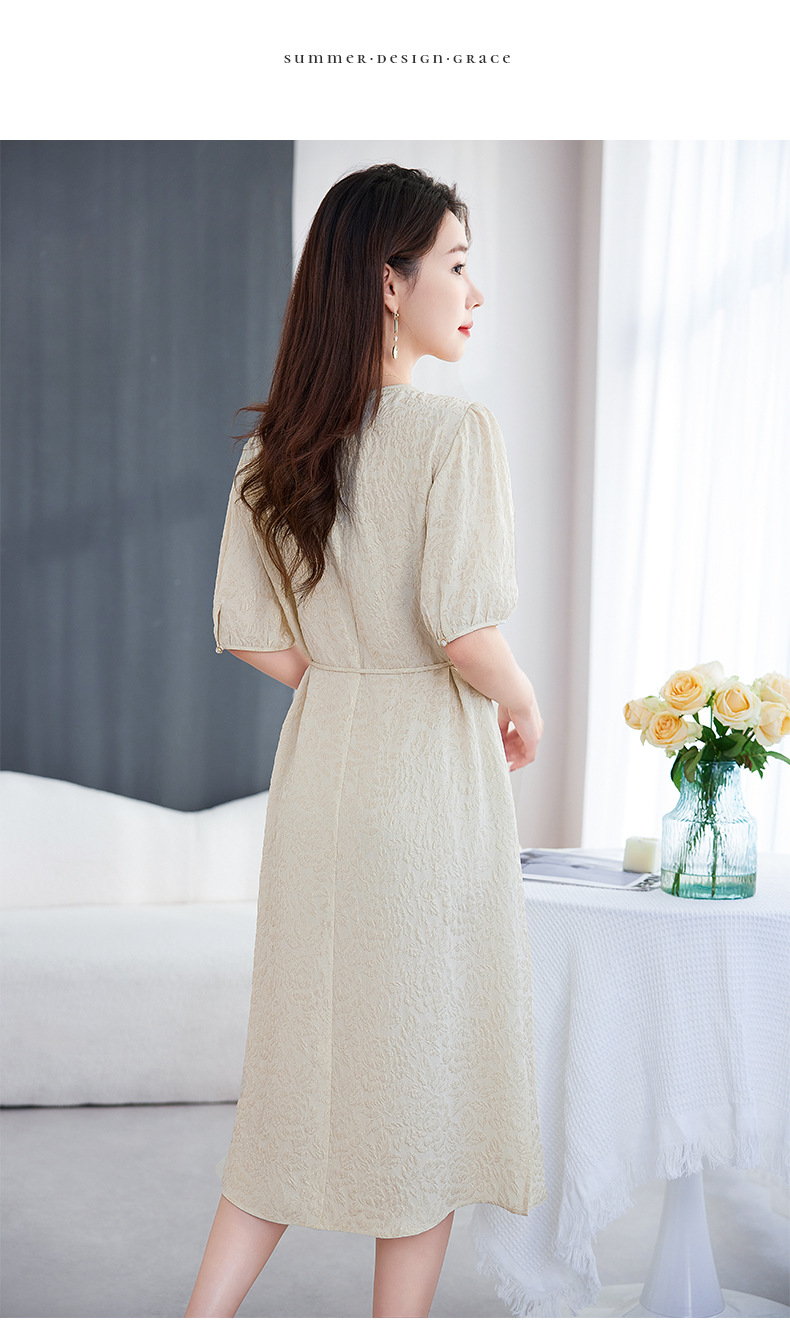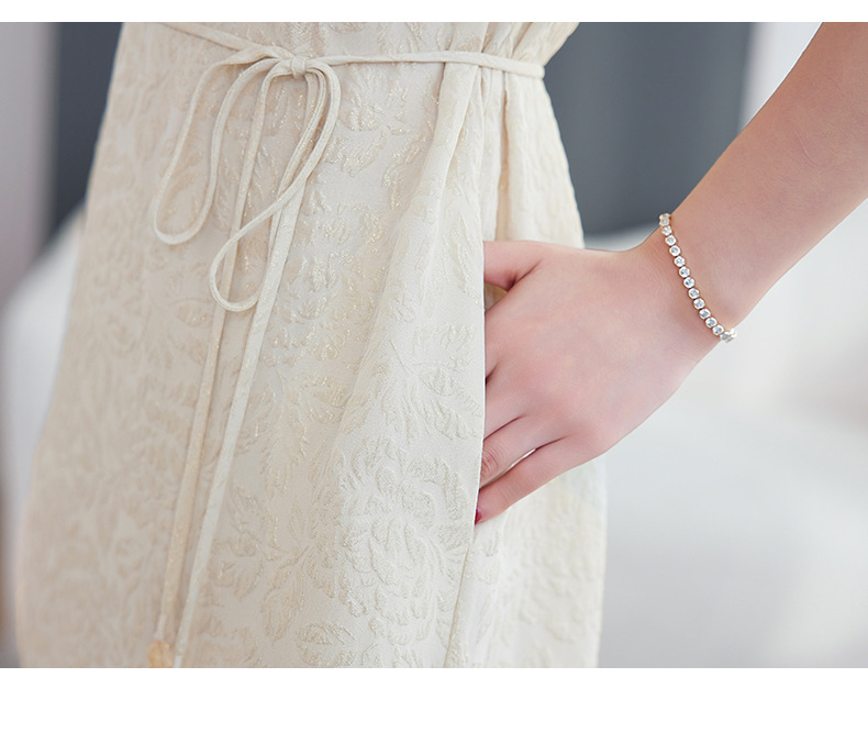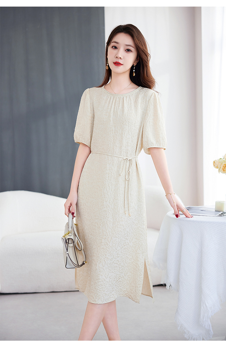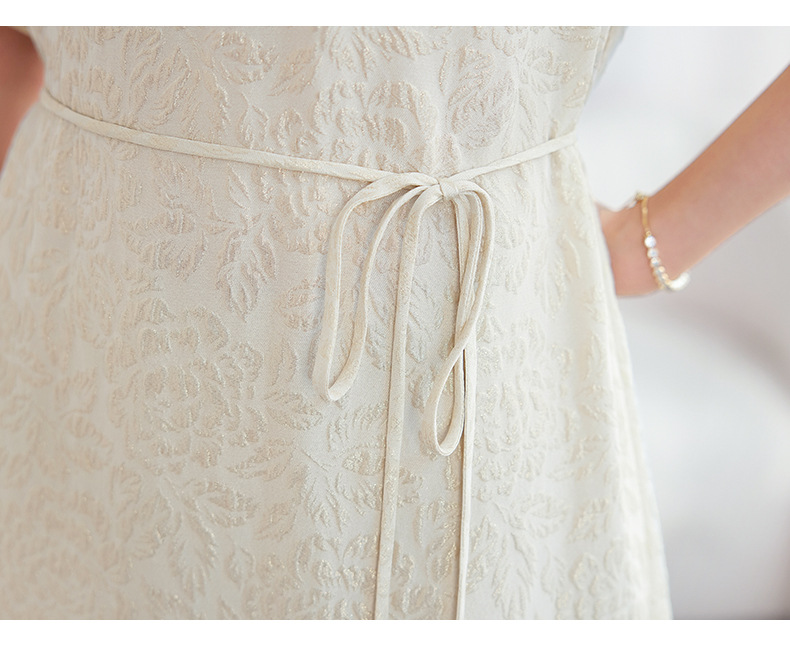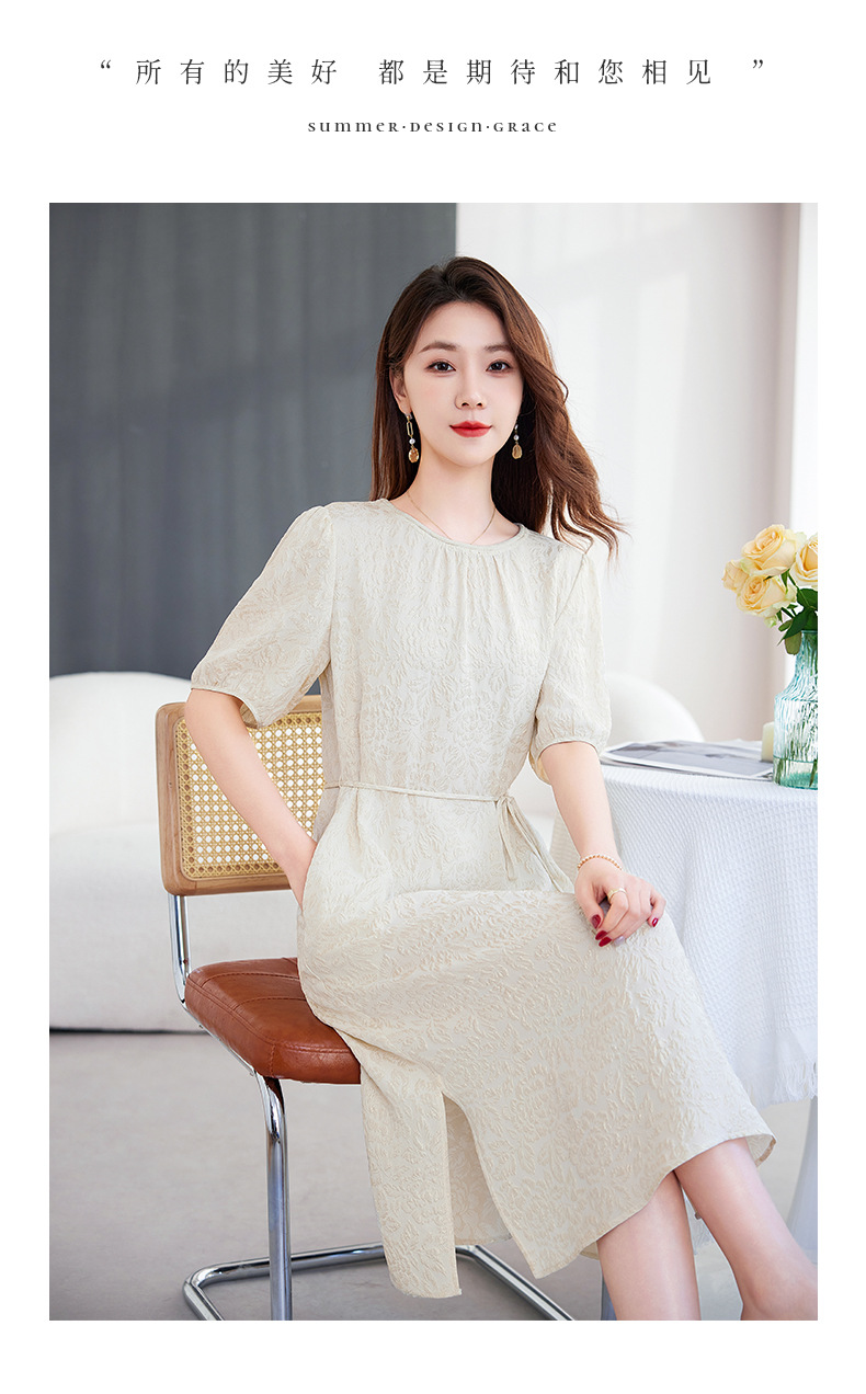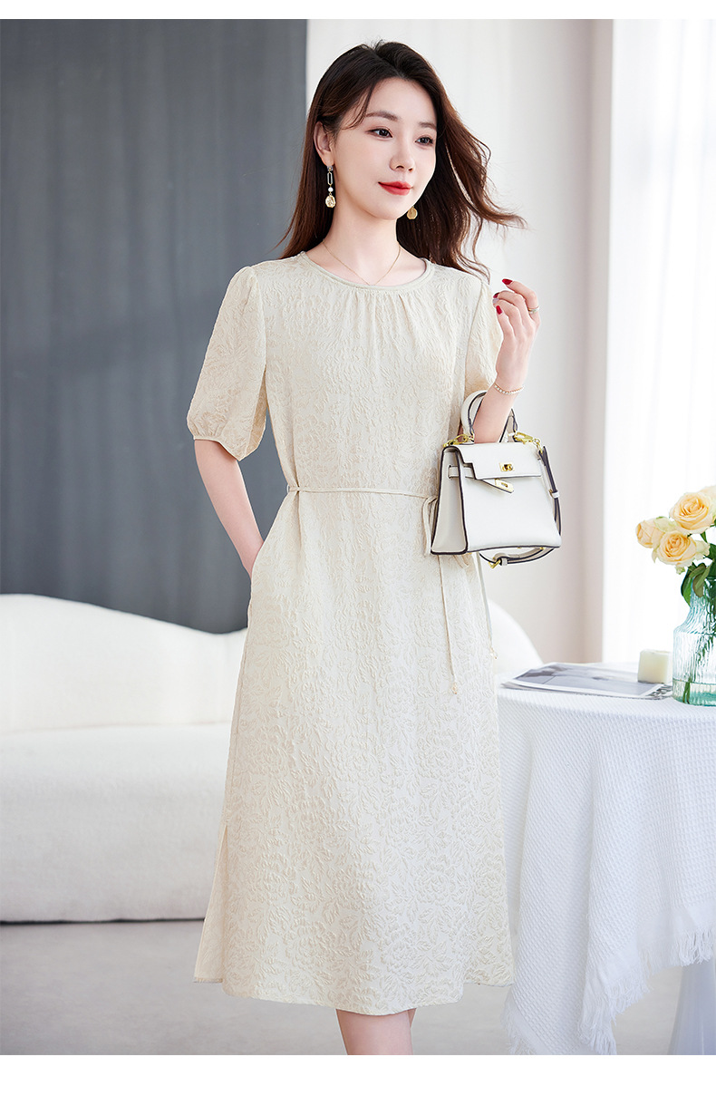 QS-82599210丝络花间丝绸桑蚕丝中长裙子宽松显瘦圆领真丝连衣裙女9210