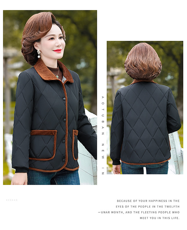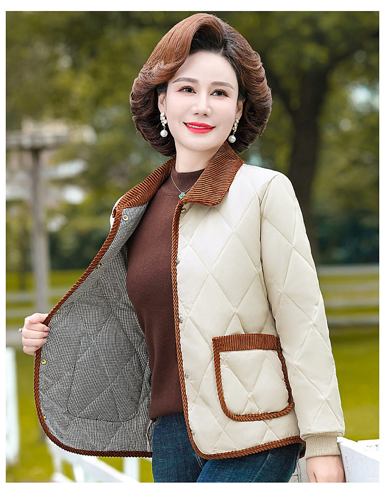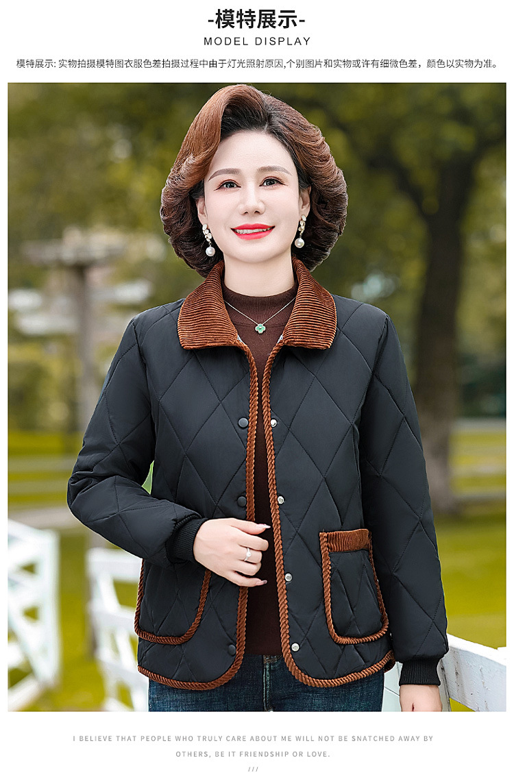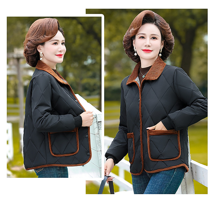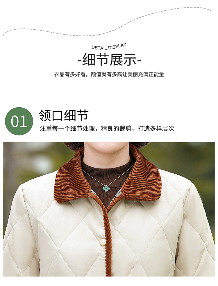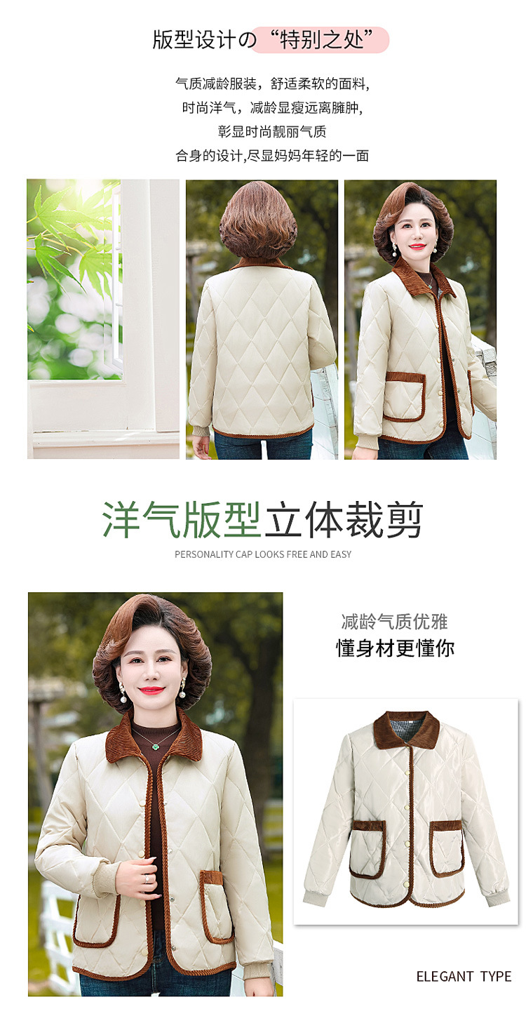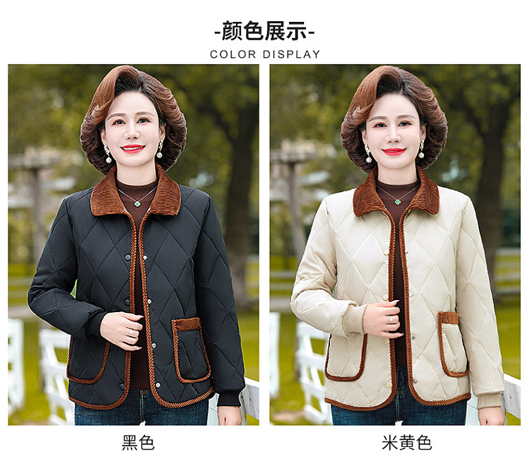 C-29款棉衣 秋冬轻薄款羽绒棉中老年大码外套时尚翻领保暖夹棉妈妈小棉衣夹克
