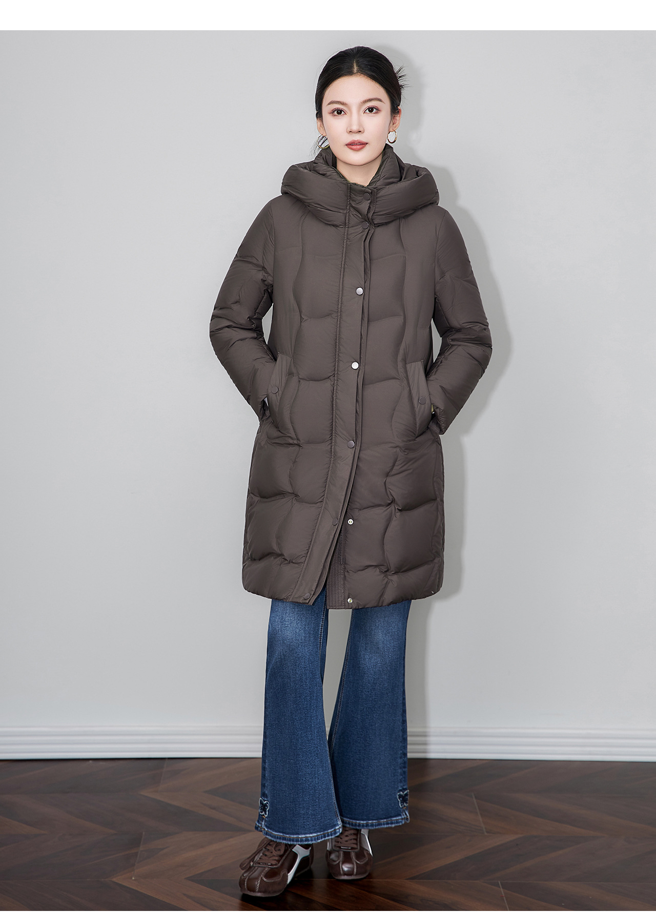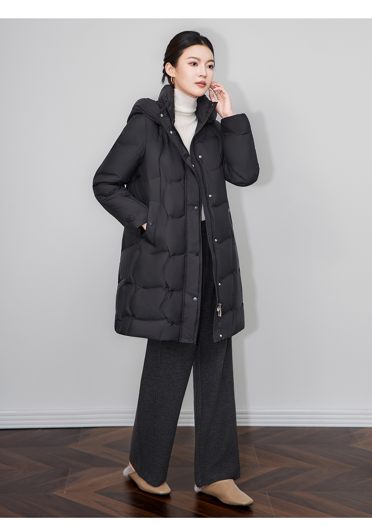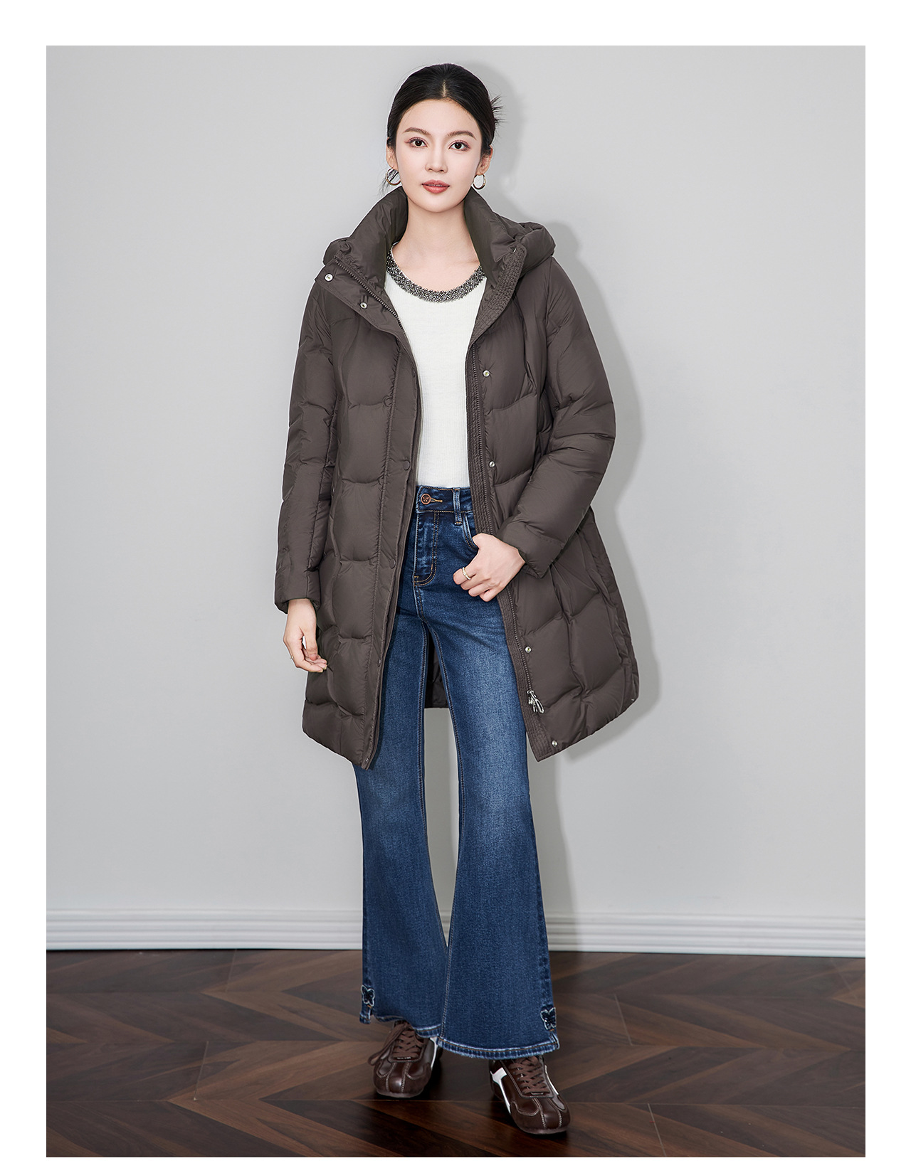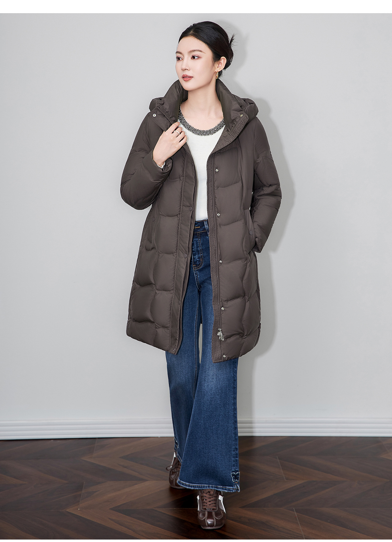 「高货wl」全新升级【铂金会员661/天猫889/差价228】(23026)洛诗琳90白鸭绒中长羽绒服2025冬季连帽立领加厚保暖外套