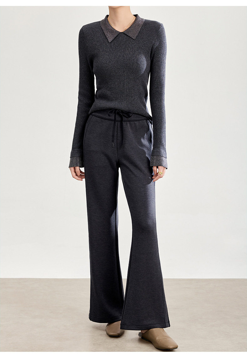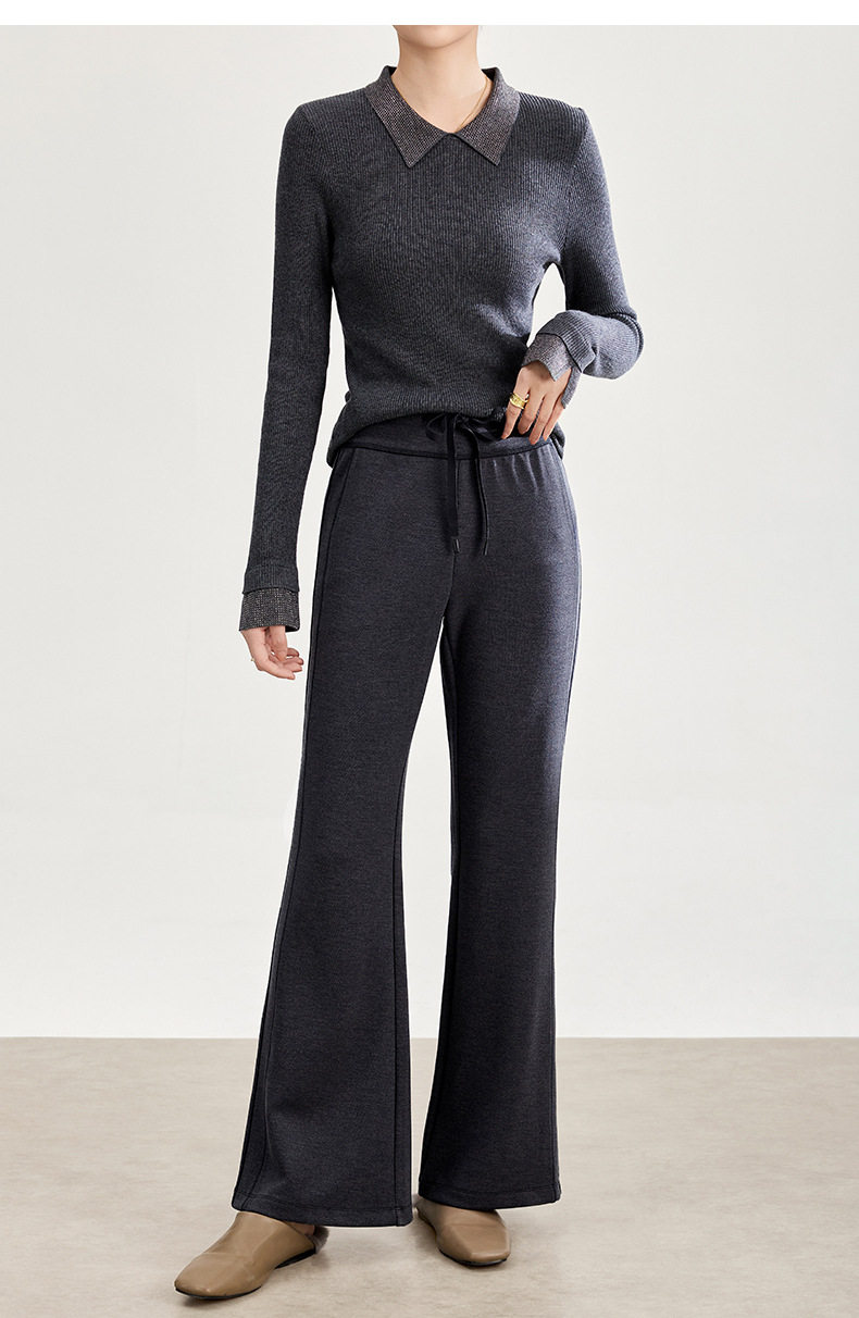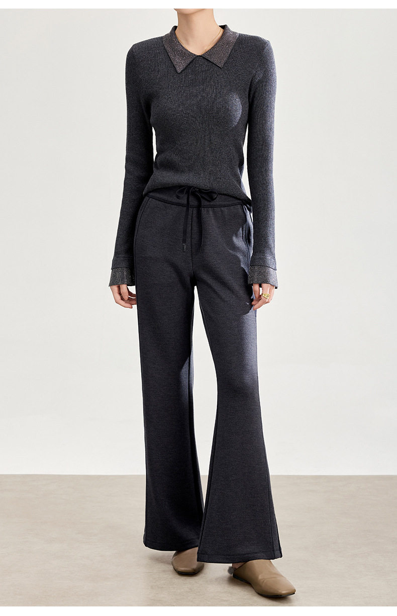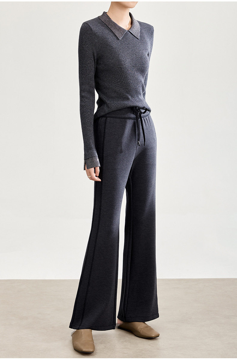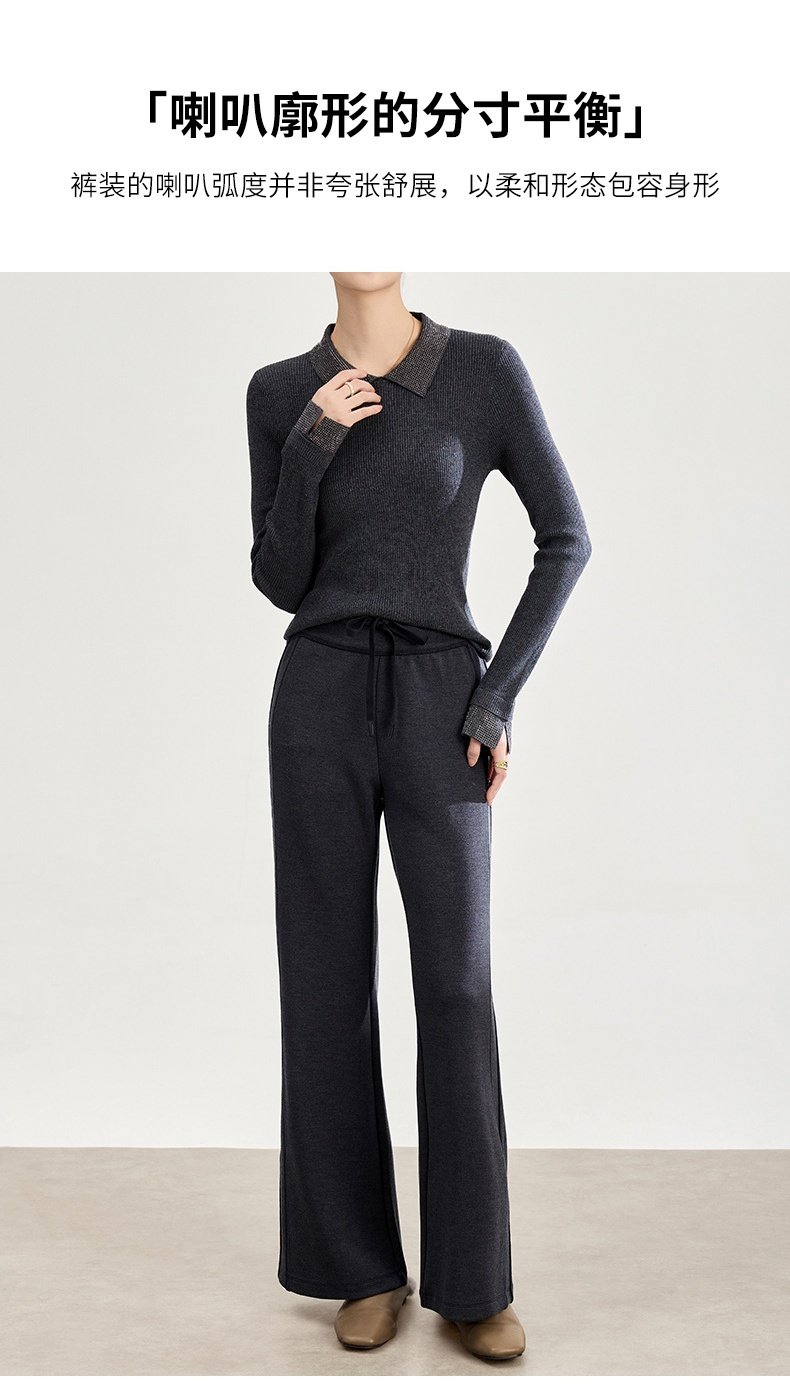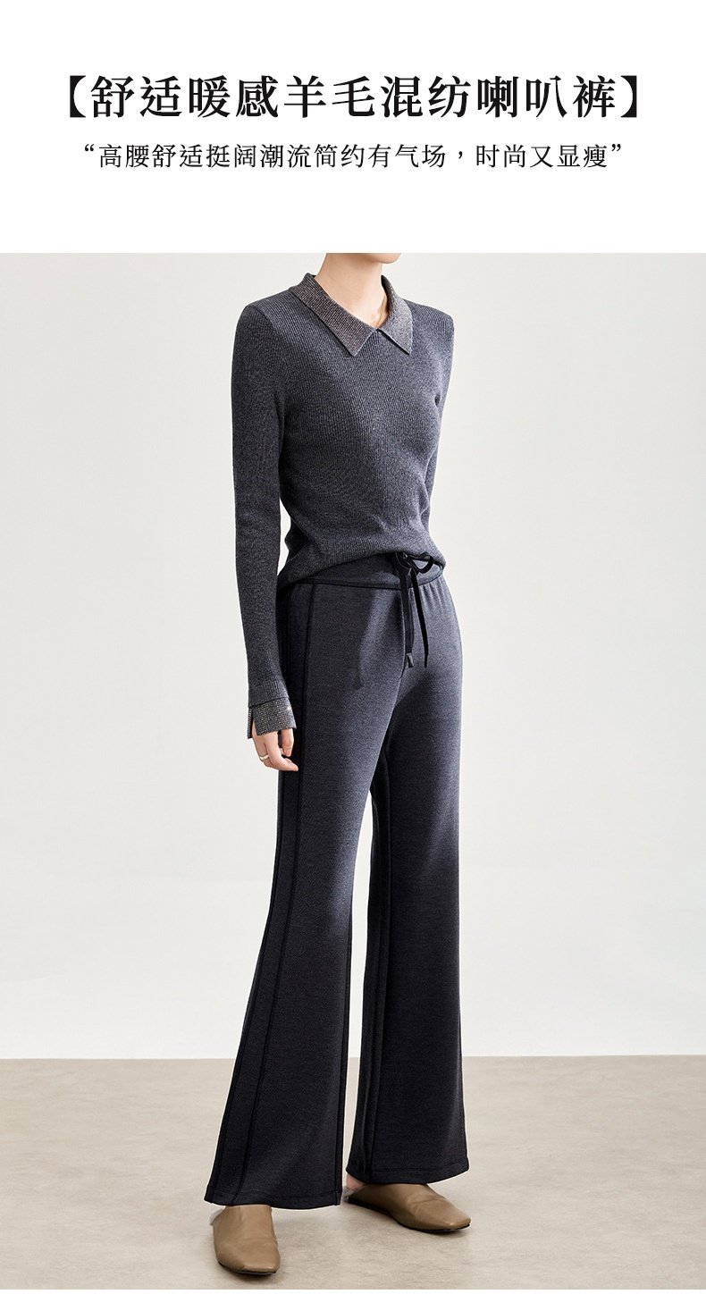 「自」全新升级【铂金会员247/天猫329/差价82】(01753)洛诗琳四面弹棉混纺长裤2025秋冬修身松紧腰休闲喇叭裤女