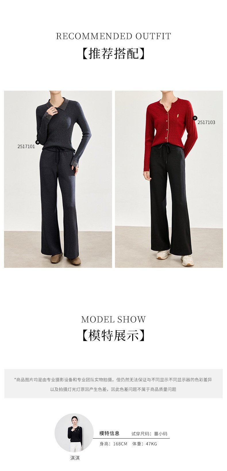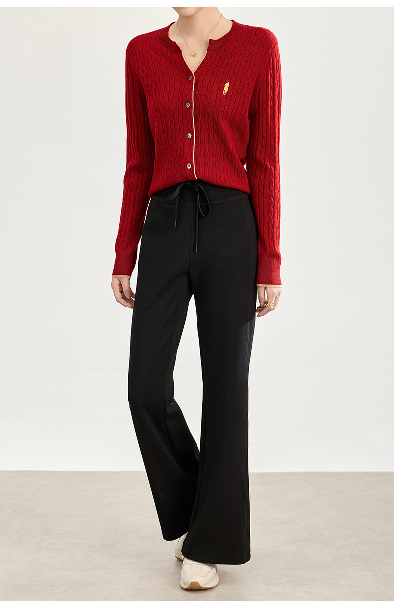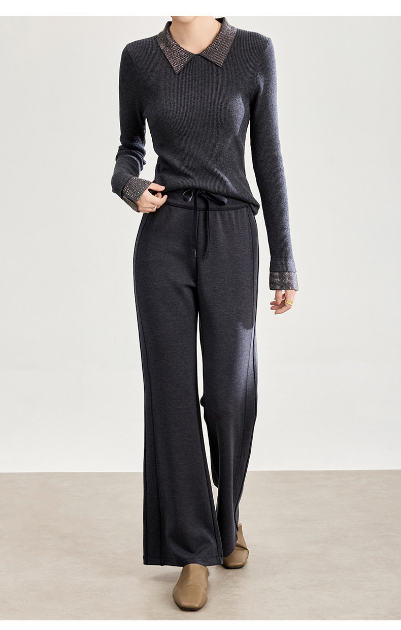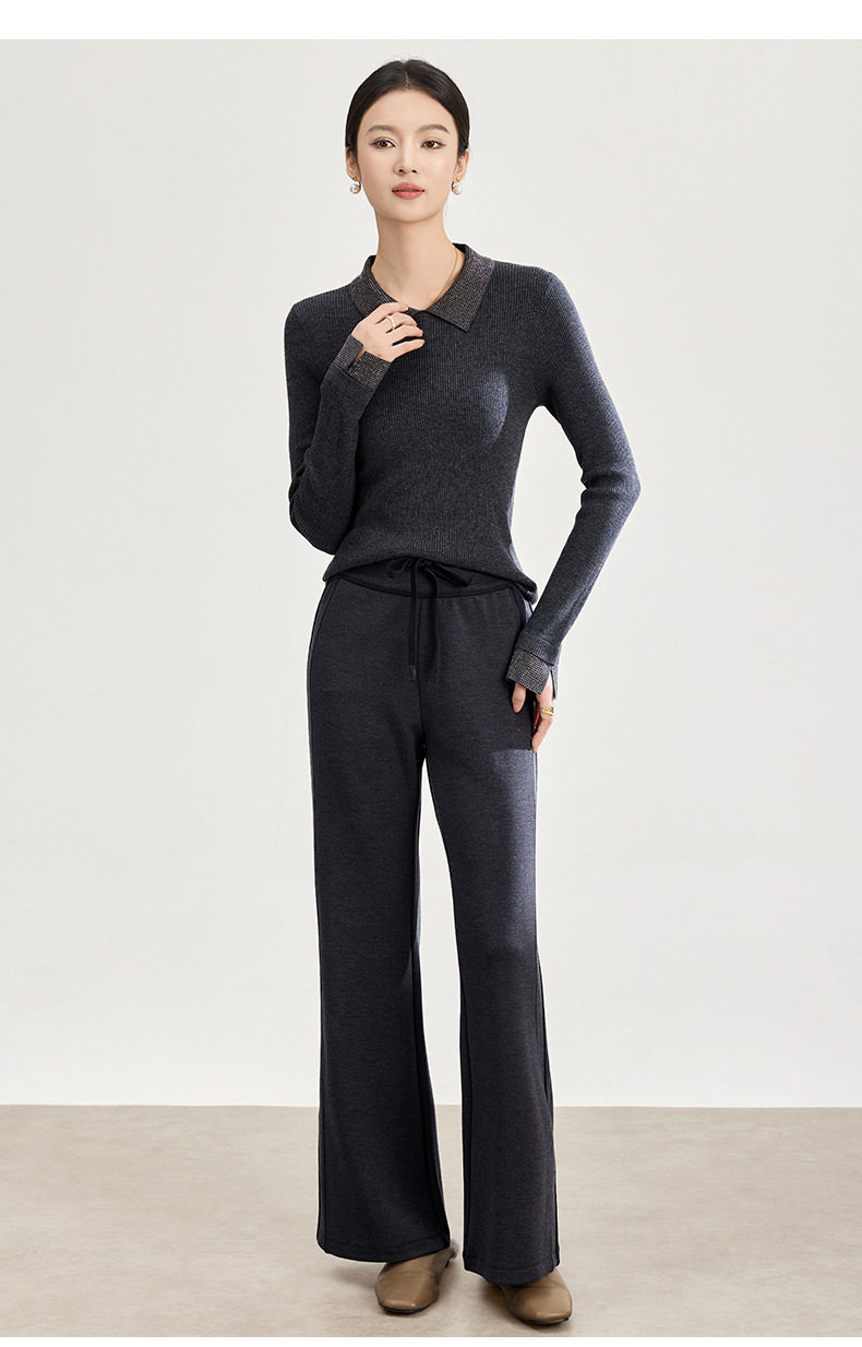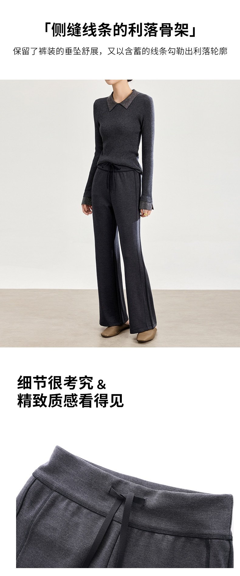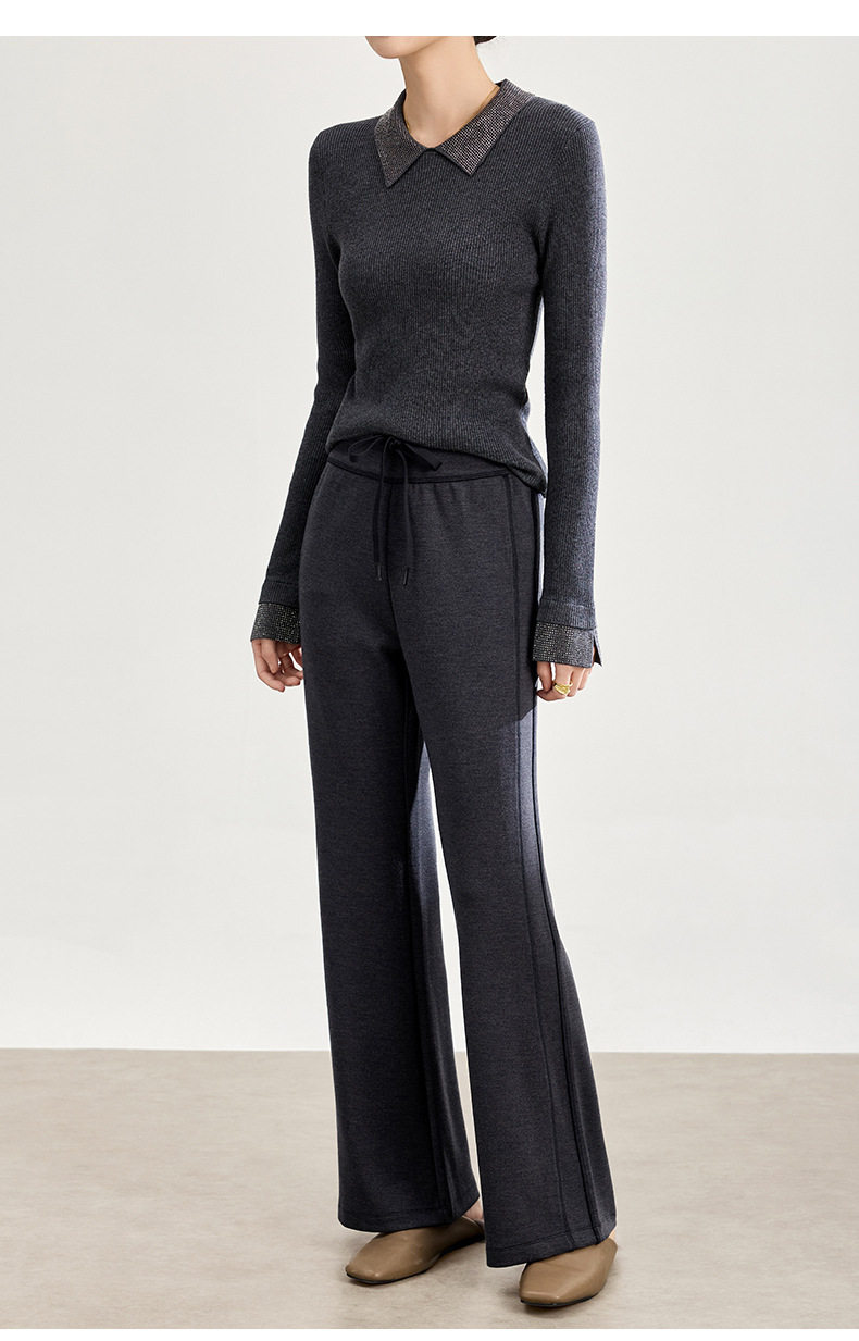 「自」全新升级【铂金会员247/天猫329/差价82】(01753)洛诗琳四面弹棉混纺长裤2025秋冬修身松紧腰休闲喇叭裤女