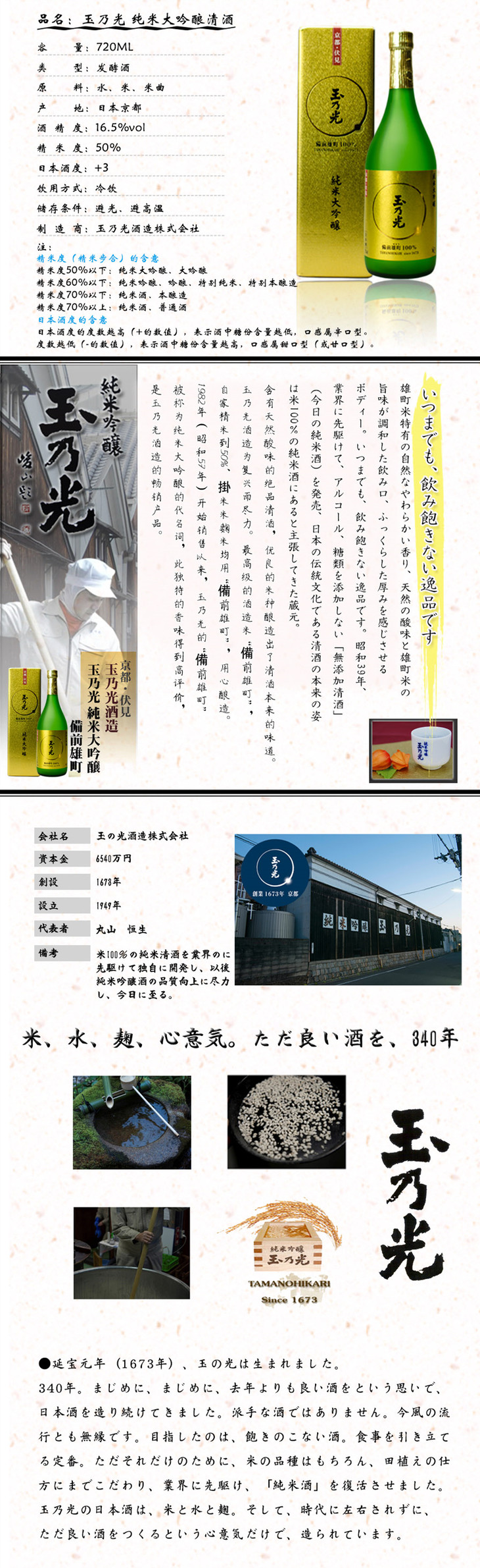【华湘 玉乃光】纯米大吟酿清酒(盒)720ML (无拎袋)