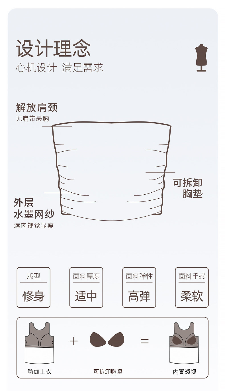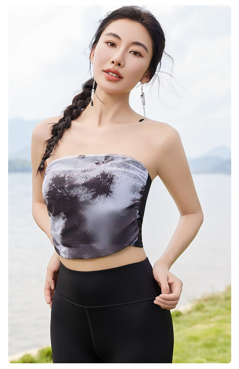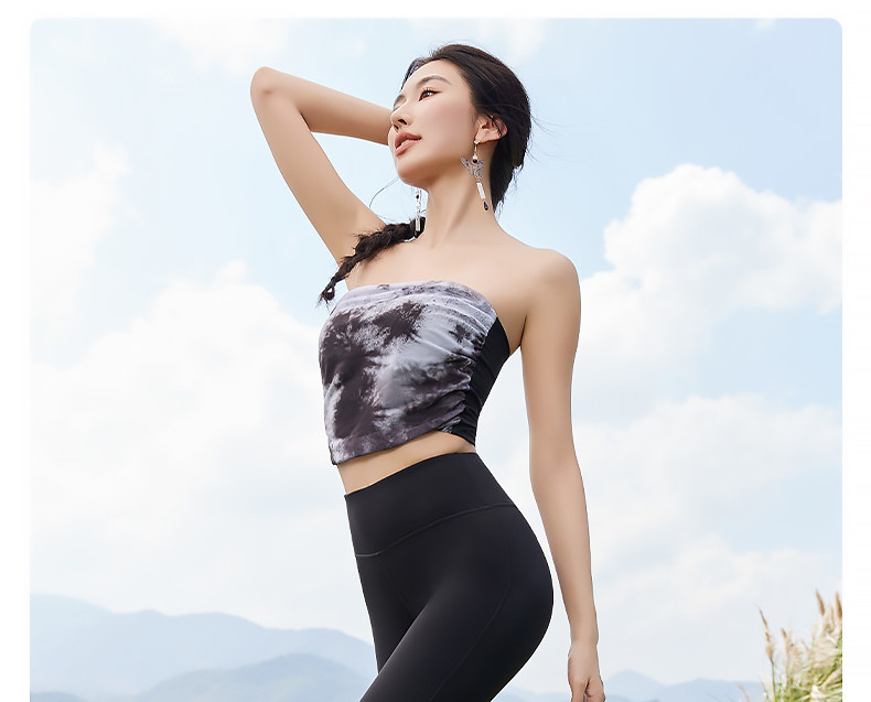 梵美人 F5509 瑜伽背心 可拆卸胸垫 网纱印花