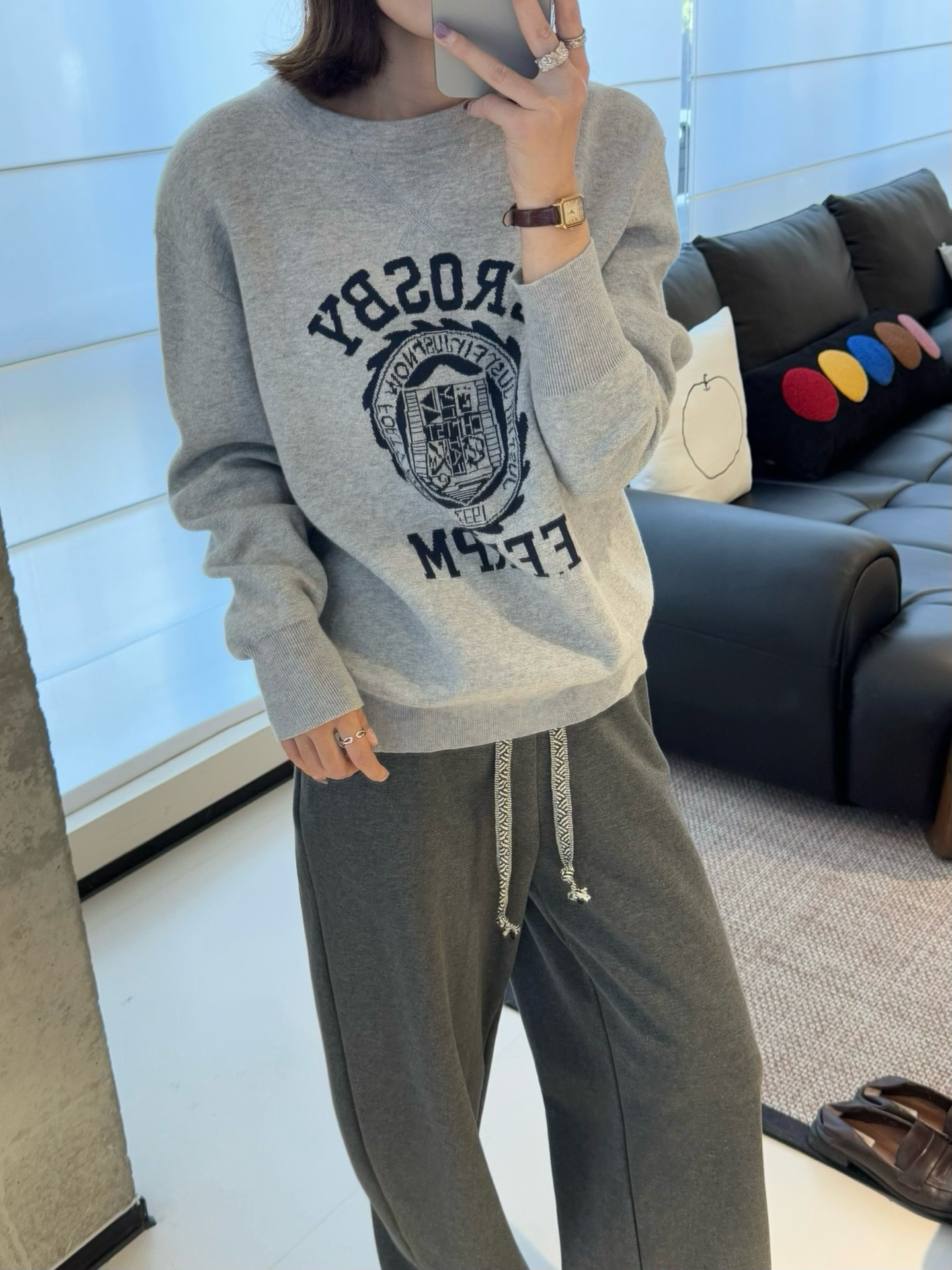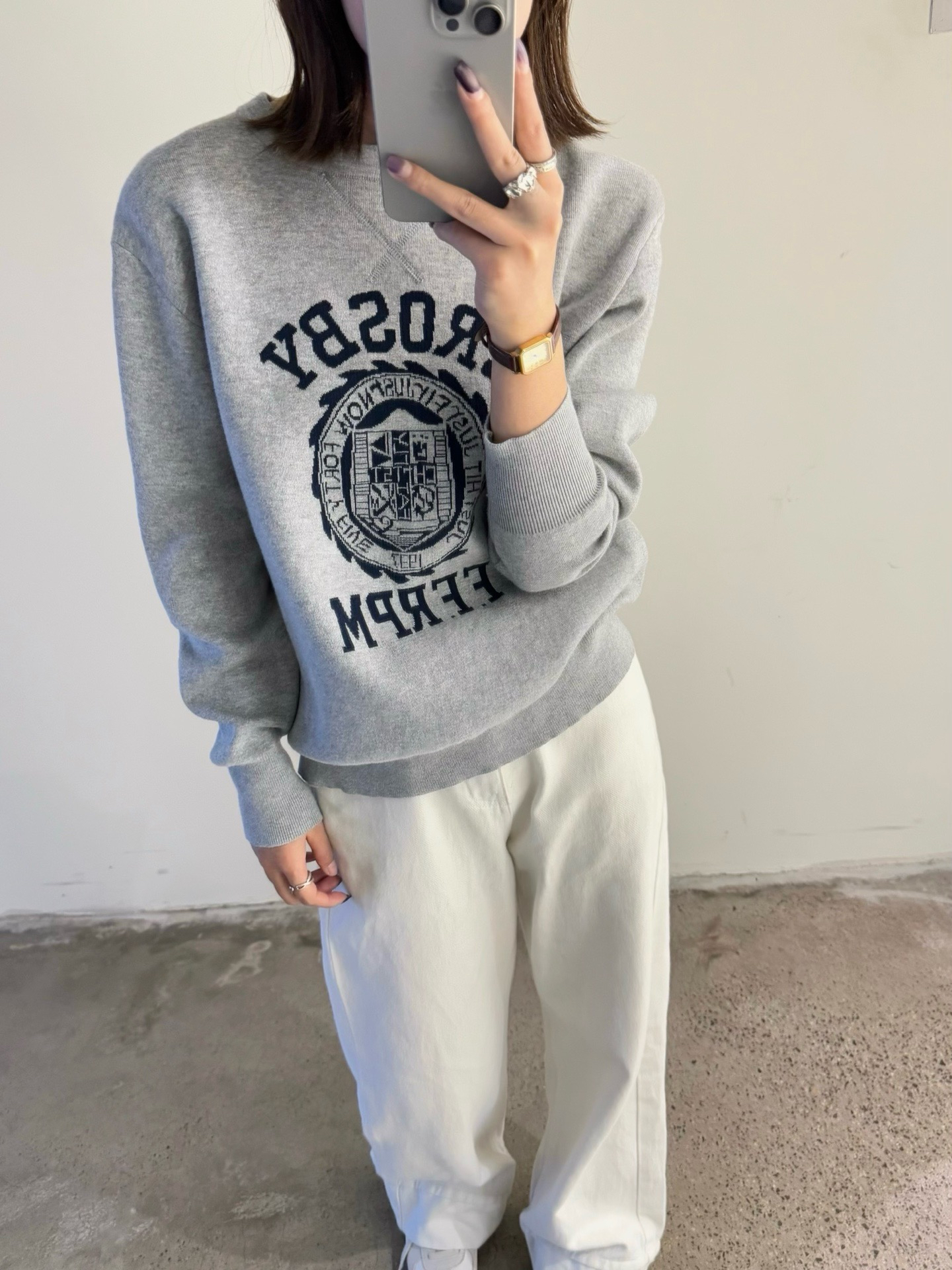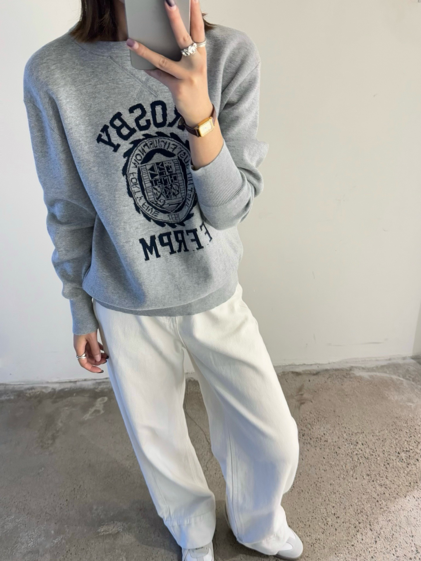 45R的这件字母提花棉质针织长袖卫衣堪称复古单品代表了!
