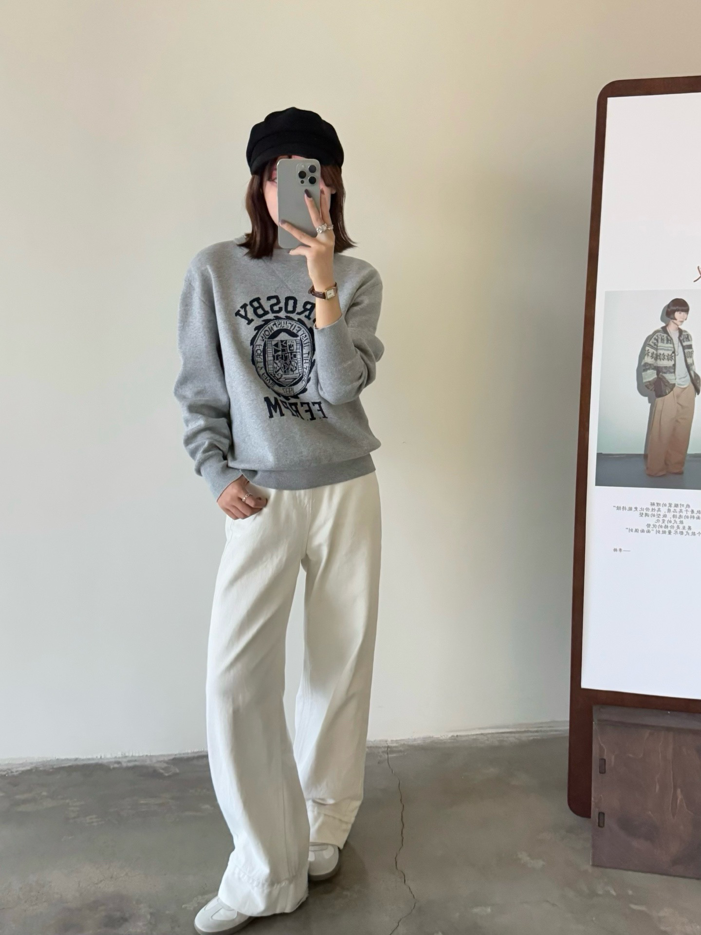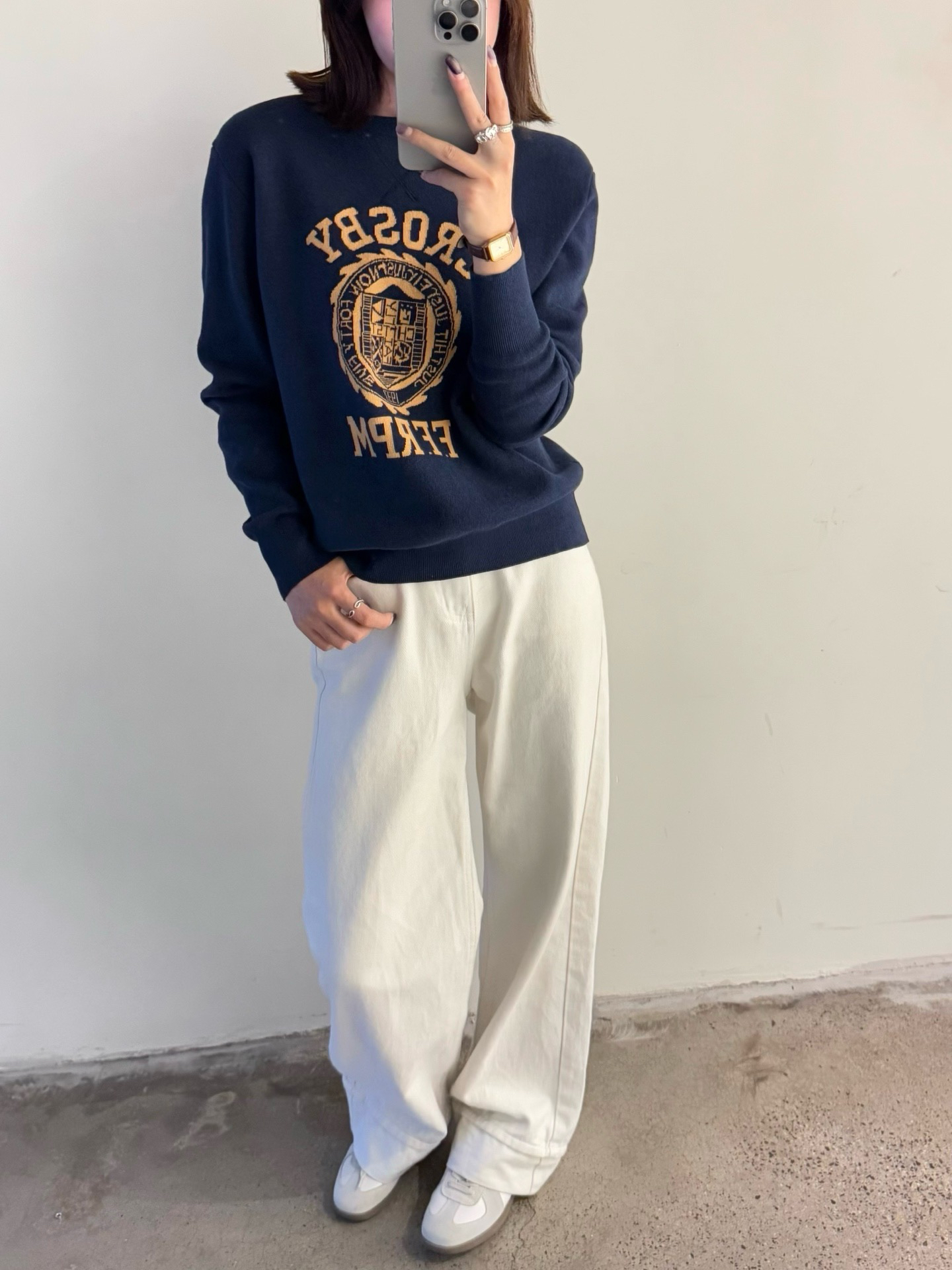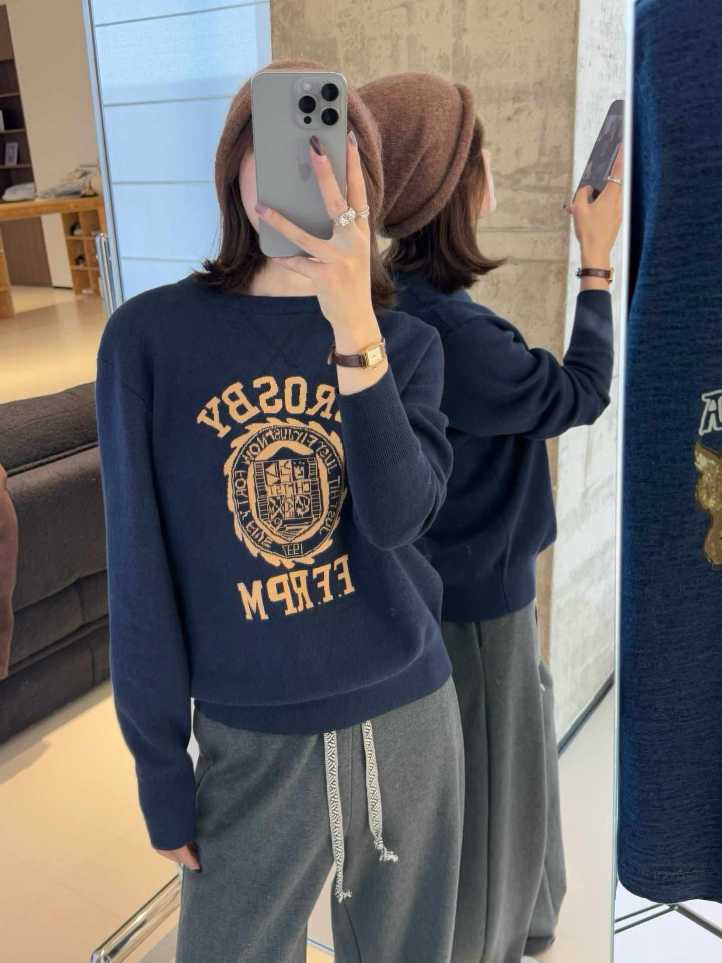 45R的这件字母提花棉质针织长袖卫衣堪称复古单品代表了!