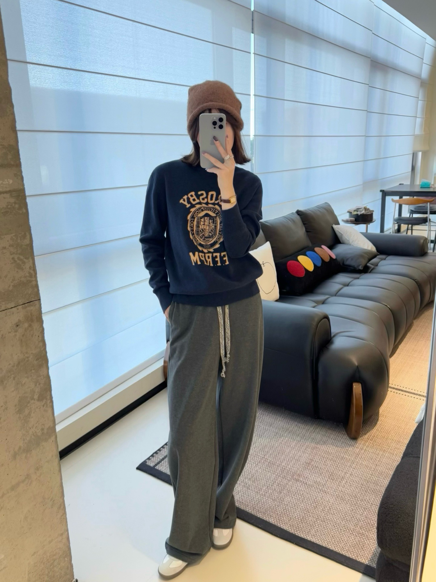 很适合高智人群的卫衣式针织衫