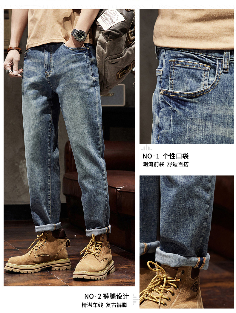 【Q】【新款DQ】大依优型大码直筒牛仔裤长裤男舒适弹力休闲简约百搭加肥加大男装潮款